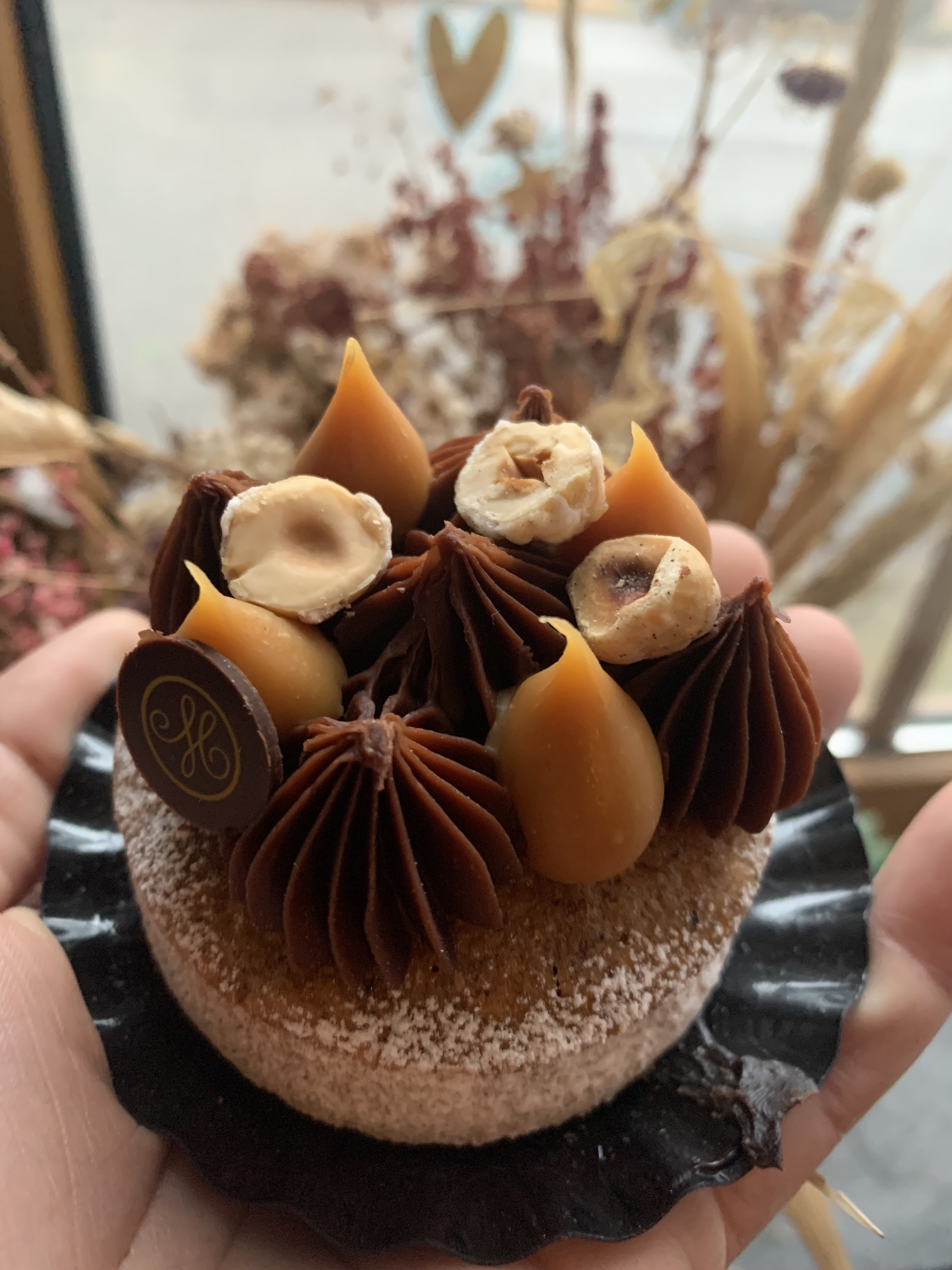Belle boutique, malheureusement je n'ai choisi qu'une seule douceur. C'était le meilleur dessert de tout mon voyage en France. Livré dans une jolie boîte avec un noeud et un sac.