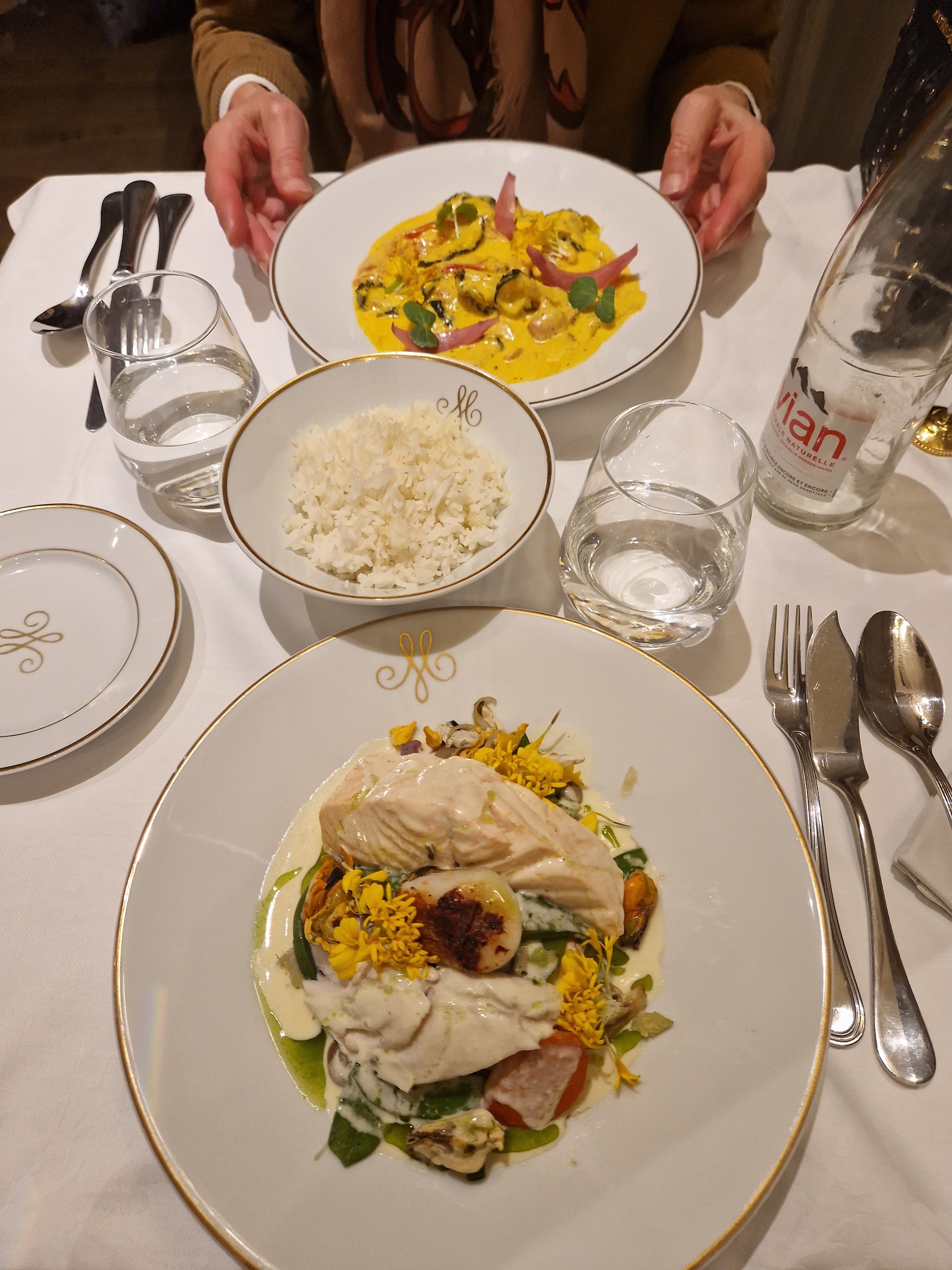 A l'occasion d'un déjeuner je me suis régalée avec la sole meunière et ses légumes de saisons dans un cadre historique à l ambiance élégante et raffinée . Service impeccable et pro , serveurs aux petits soins souriants et sympathiques ... Toujours un plaisir !!!