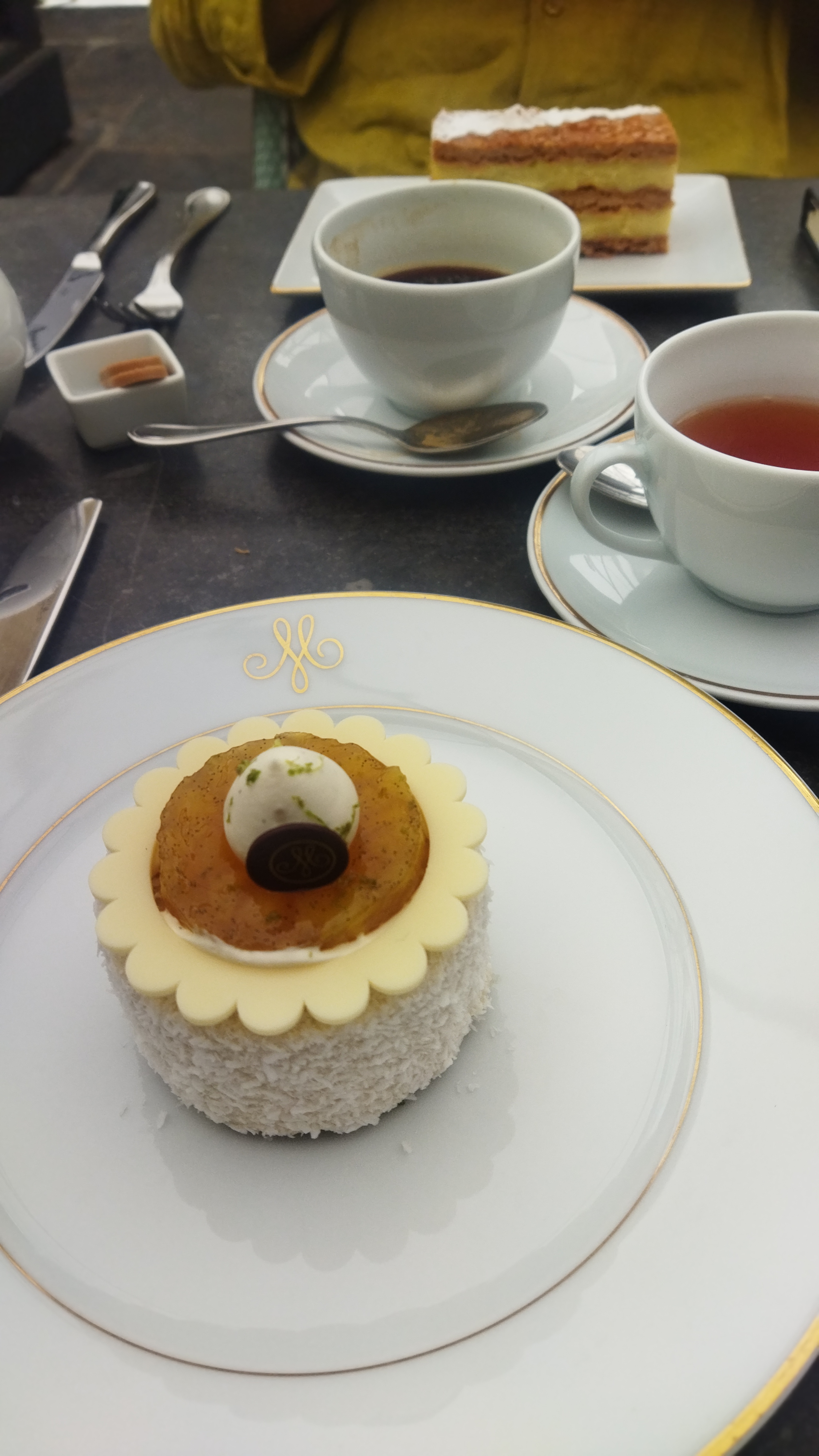 Des délices français classiques et authentiques. Nous avons visité le salon de thé et commandé plusieurs gâteaux et friandises. Le tout bien équilibré et de pure classe. C'est beau à voir et c'est très bon. Vous pourrez goûter la fraîcheur et les ingrédients de qualité. Très subtil ! Céleste délicieux. Si vous aimez la bonne nourriture et êtes prêt à payer pour la qualité, visitez-le !