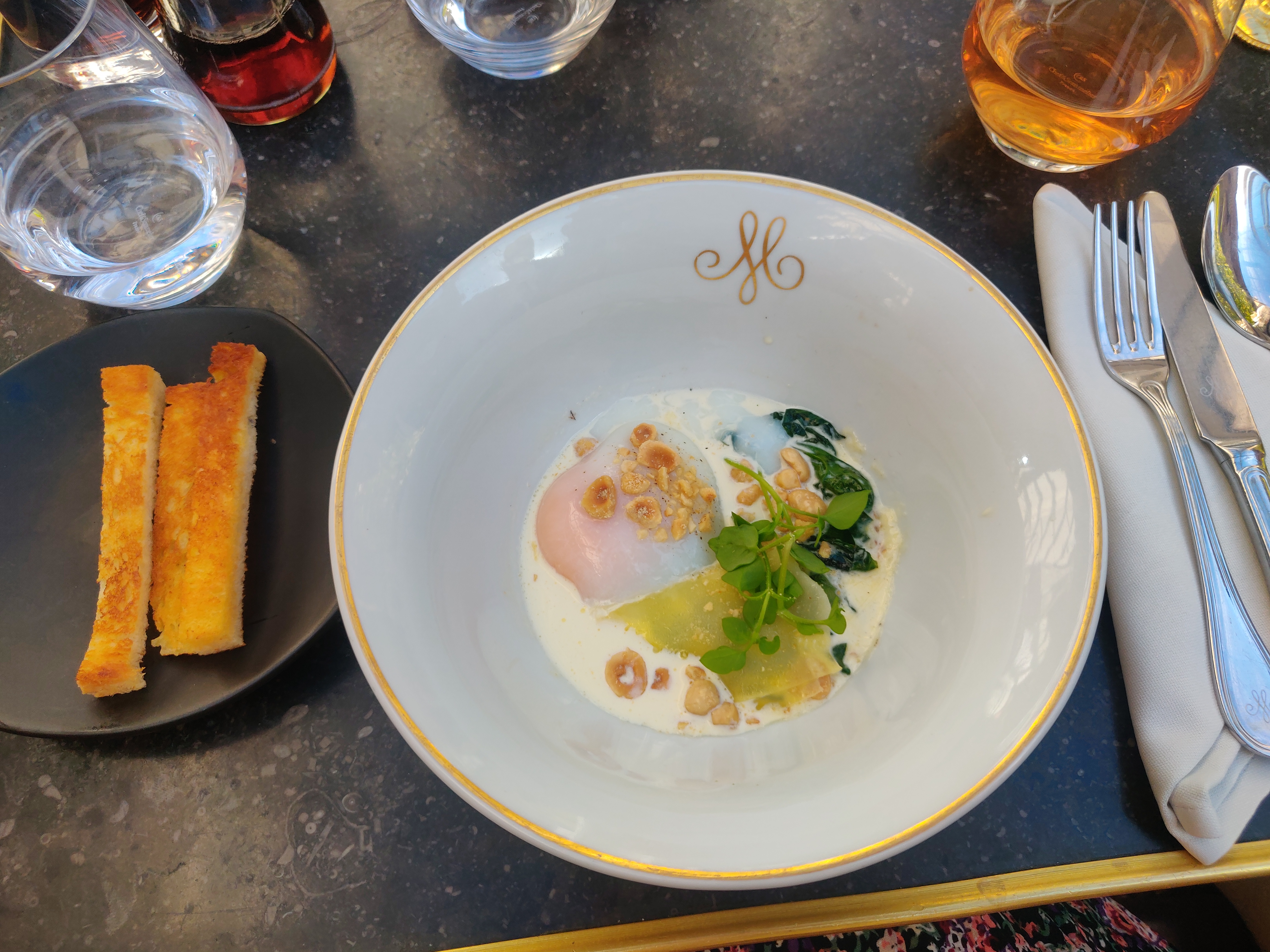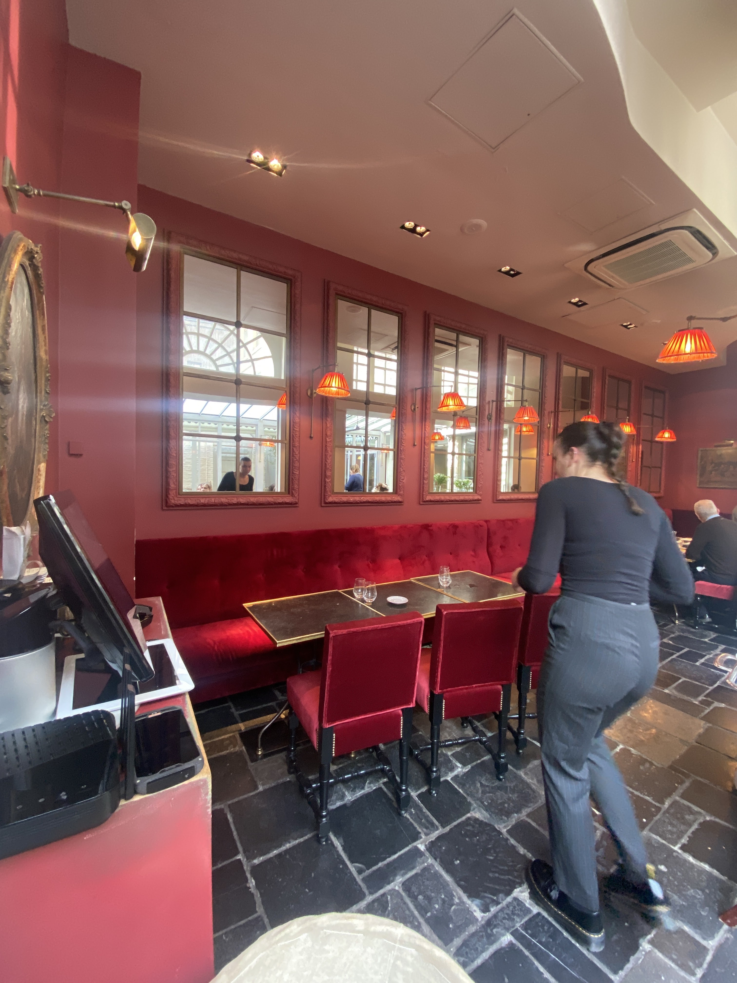 On passe pour prendre un dessert …. On passe par le restaurant… chouette !!! il n’y a plus de brunch ( on n’aime pas les brunchs ) menu retour du marché et il reste de la place . 39 euro le menu ? Très raisonnable . Le choix entre 2 entrées / 2 plats / dessert au choix de la carte. Parfait pour nous , on adore goûter et partager, carte qui change tt les 4 semaines . Prix des vins très accessibles. De plus bien contents, on adore la demoiselle qui nous sert. Nous ne connaissons pas son nom, mais tj un plaisir d’être servie par Mademoiselle. ( tj en talon/ tj élégante / présente depuis plusieurs années ). Merci, pour ce retour de repas du dimanche.