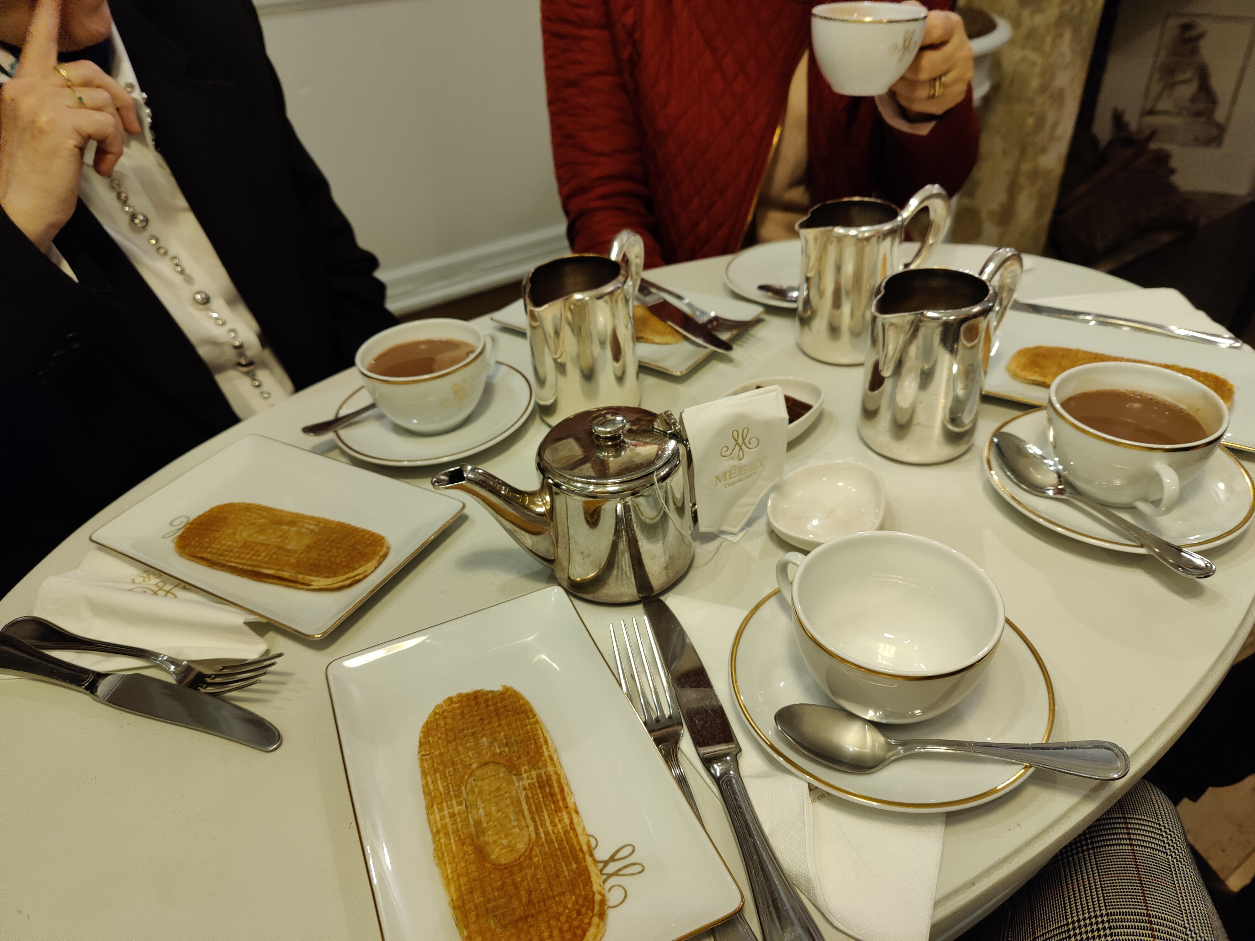 Nous avons vraiment apprécié les douceurs de Méert ! En choisissant de dîner sur place, nous avons trouvé les prix légèrement plus élevés, mais l'excellent service en valait la peine. Les thés étaient également exceptionnels et le personnel a gracieusement répondu à notre demande de déménager à l'intérieur, loin de la zone fumeurs extérieure. Dans l'ensemble, une expérience délicieuse!