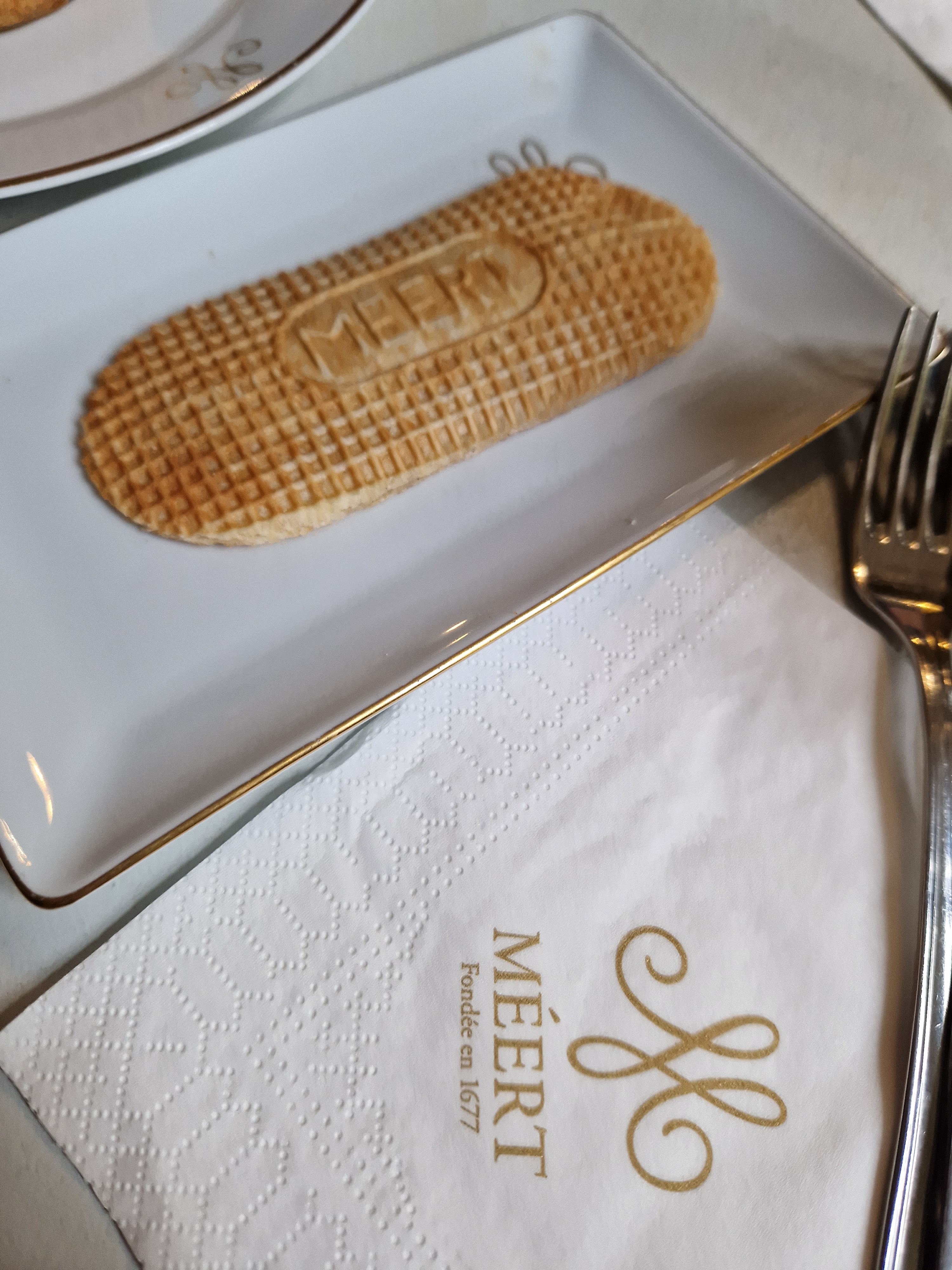 1ere visite à Lille donc une gaufre à Meert semblait un incontournable.Quelle déception ! Une mignardise ? Un amuse-bouche pour nous faire patienter ? Il n’y a rien d’exceptionnel dans cette gaufre.L’appareil est bon mais la gaufre n’est même pas tiède et bien trop petite.Un décor superbe,un service irréprochable.Nous avons gouté les thés excellents.Dommage,la notoriété prend le dessus sur la qualité.
