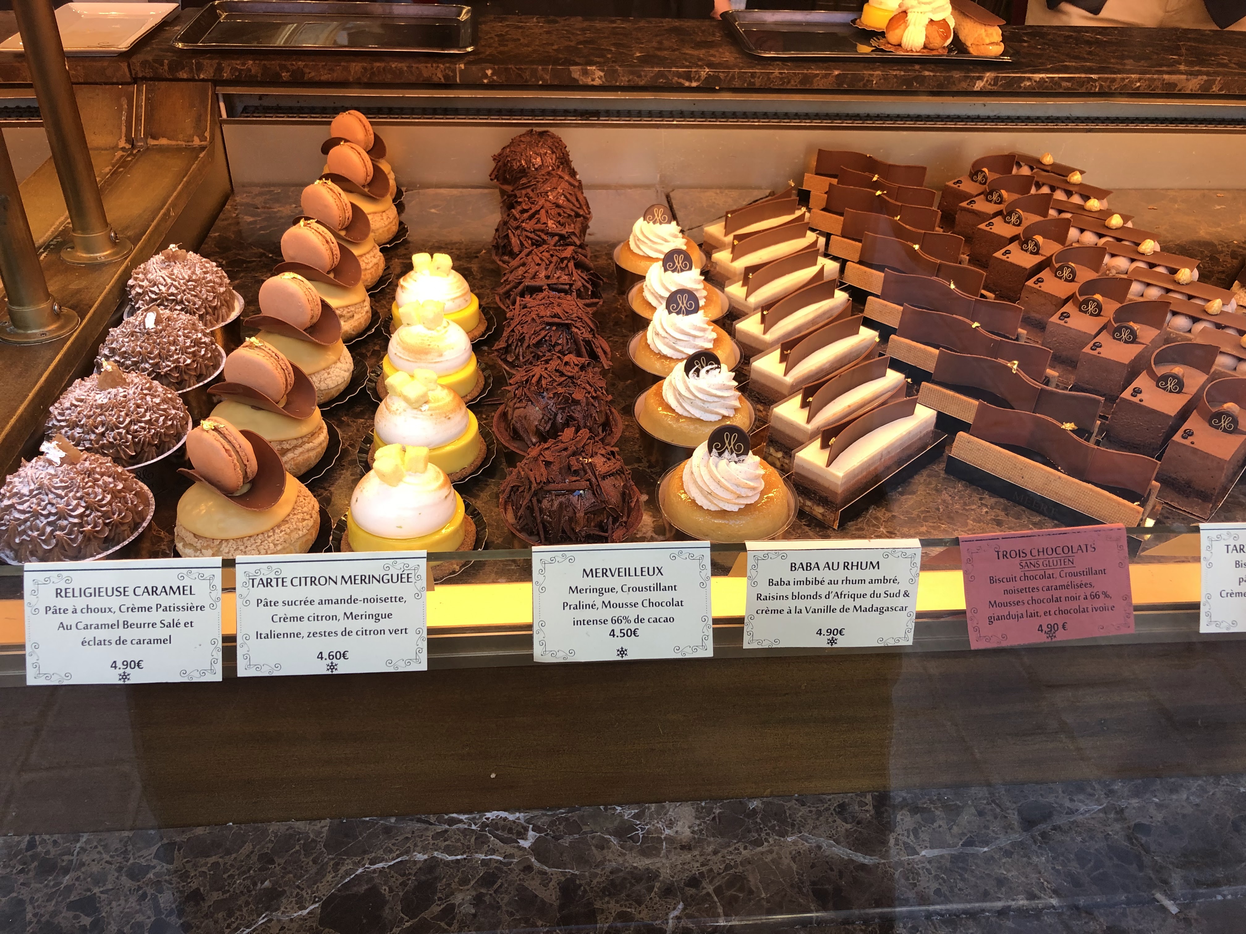 Nous avons été au salon de thé. Service exceptionnel malgré la braderie. Expérience délicieuse. Café noisette à 3,90€ chocolat Meert froid à 6,80€ et des pâtisseries saint honoré vanille à 7,20€ et impérial à 7,50€. Le prix semble un peu cher mais pour des pâtisseries exceptionnelles cela méritent un petit sacrifice 😉 Dans l'impérial il y avait des des vrais morceaux de noisette 😋 Sous le saint honoré de la pâte feuilletée trop bonne. Bref un régal pour les papilles.