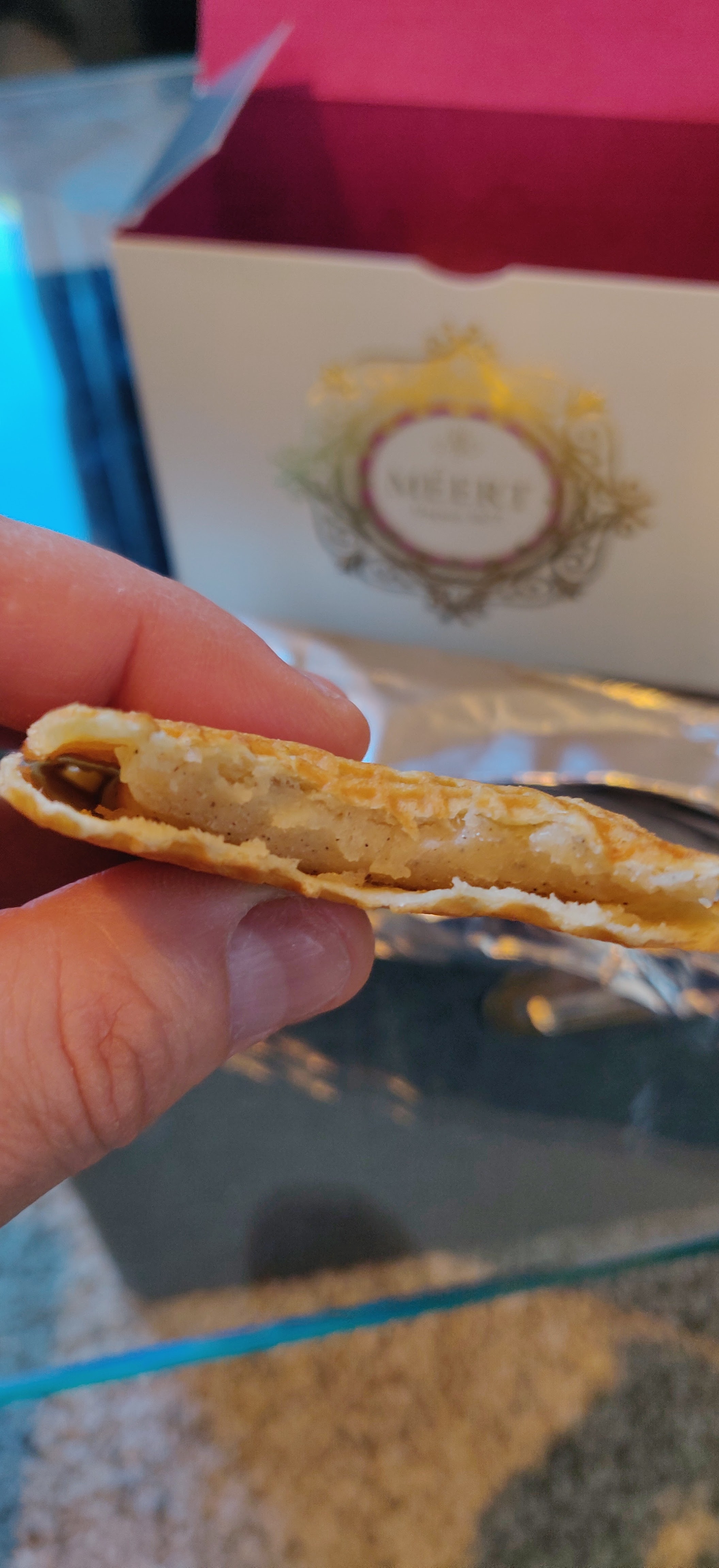 Quelle immense déception. Les si fameuses gaufres n’ont rien de spécial. Méga trop cher, plus doux que ce à quoi je m'attendais et vous ne pouvez pas combiner différentes saveurs dans une boîte. Il faut donc acheter 6 gaufres de la même saveur. À quel point est-ce déjanté ? Si vous voulez goûter toutes les saveurs, vous devez les acheter individuellement, mais vous n'aurez pas de boîte 🙈🙈🙈 sérieusement, je n'ai jamais rien entendu de plus stupide, il n'y a aucune logique là-dedans. S'il vous plaît, économisez de l'argent, il y a tellement de bonnes pâtisseries à Lille 🧁🥮