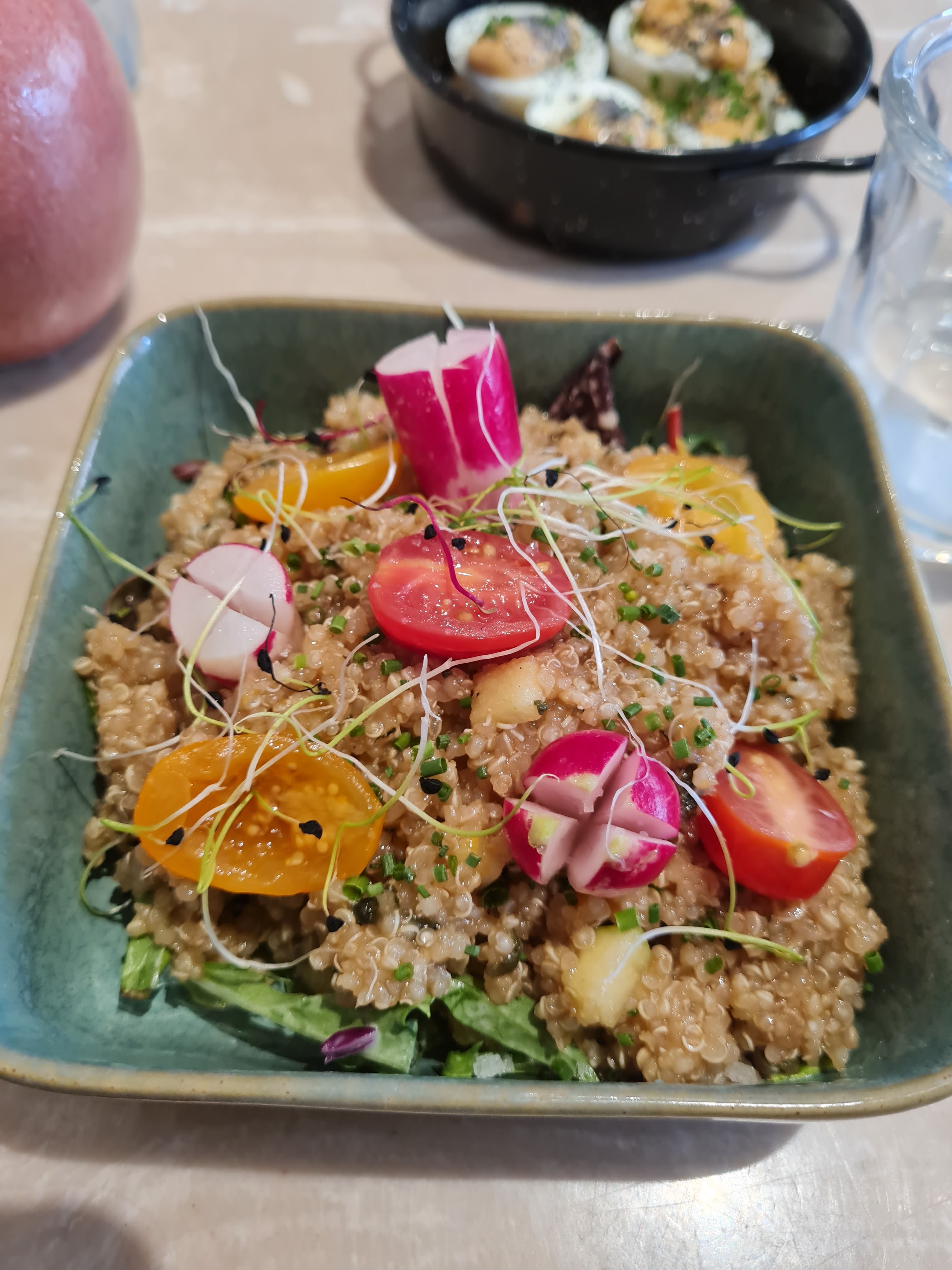 Lieu agréable sur une place plutôt animée, j'ai goûté plusieurs entrées/plats végétariens très bons. Le service est professionnel et souriant ! Bref j'y retournerais volontiers !