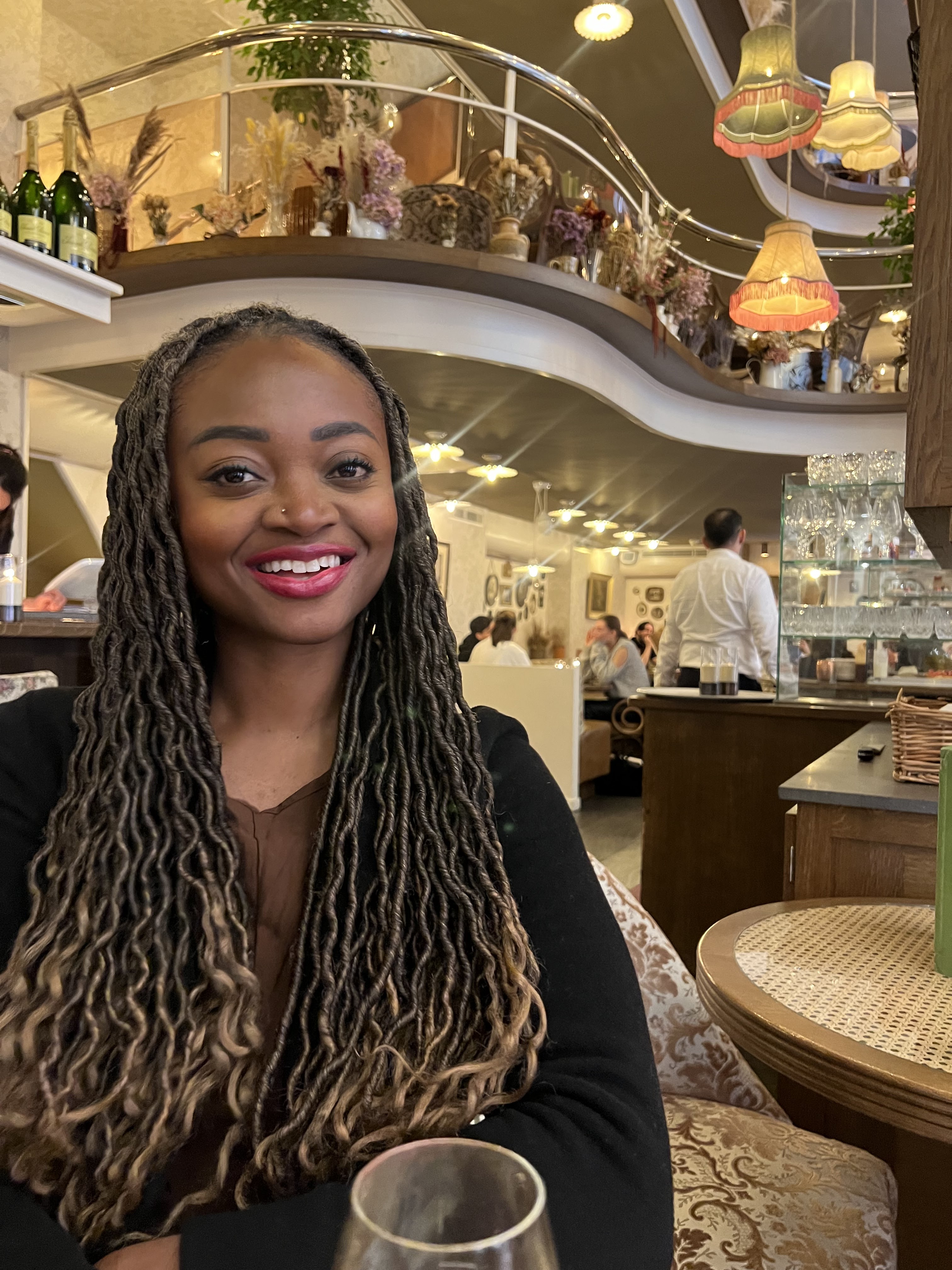 Ma sœur et moi sommes entrés après un après-midi de shopping aux Galeries Lafayette sans réservation. Immédiatement, nous avons reçu un accueil très chaleureux et enthousiaste de la part de deux messieurs qui nous ont rapidement assis pour prendre un verre. Il y en a un qui parle couramment anglais mais d'autres ont fait des efforts. Il nous a informé que le restaurant venait de changer de propriétaire il y a seulement 8 mois. L'ambiance est très relaxante et nous avons été impressionnés par la qualité de l'expérience d'être si proche d'un centre touristique. Nous avons reçu des chips avec notre vin et ils ont été très prévenants envers notre petit bébé. Entouré de lampes abat-jour et de tons or rose, il a apporté une élégance particulière à notre après-midi. Merci. Nous n'avons pas mangé mais la nourriture avait l'air excellente et les clients semblaient satisfaits😊👍🏾