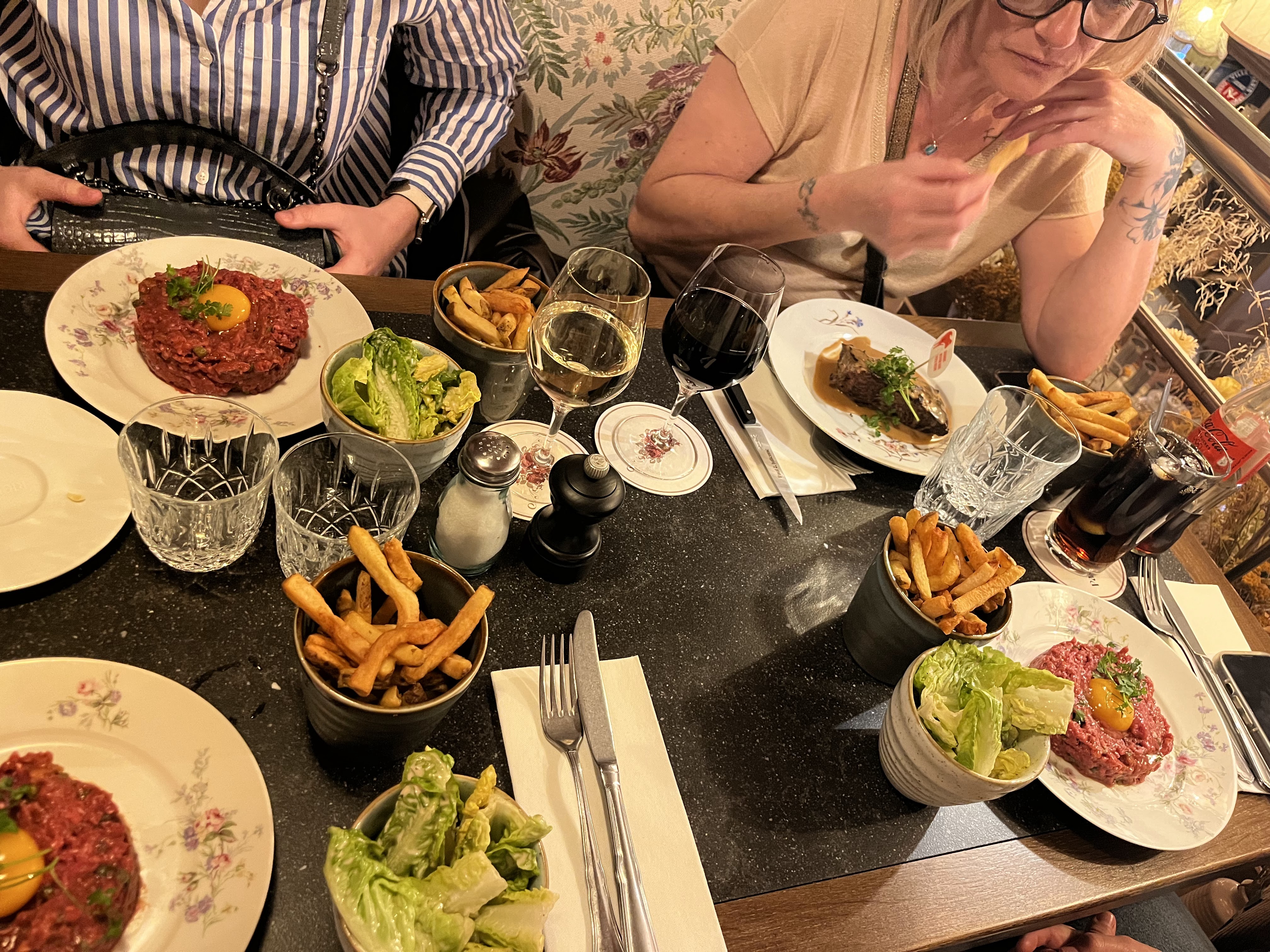Restaurant français confortable avec un service rapide. Malheureusement, mon assiette s'est cassée au moment où le serveur me l'a remise sur mes genoux. La deuxième portion de tartare de bœuf était savoureuse.