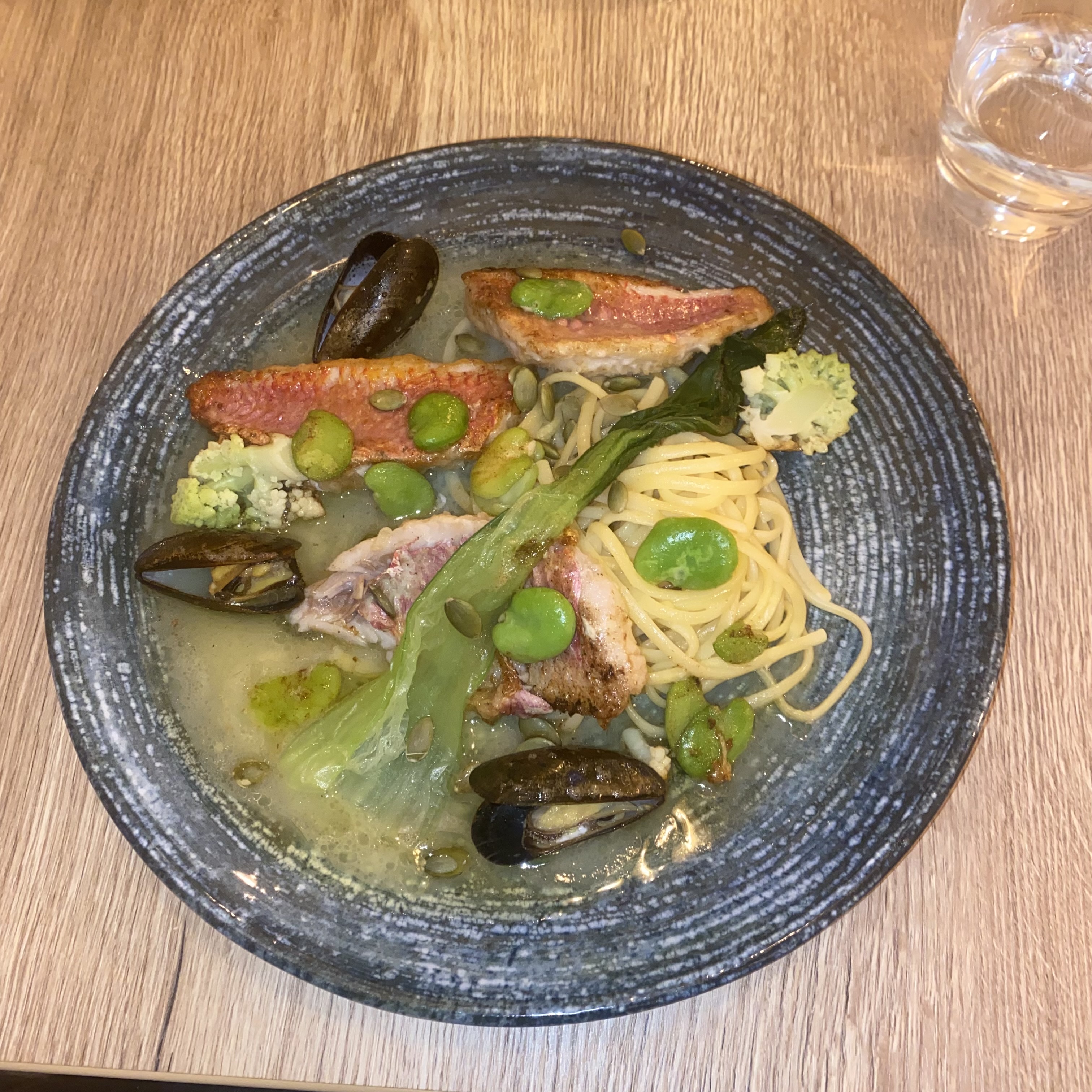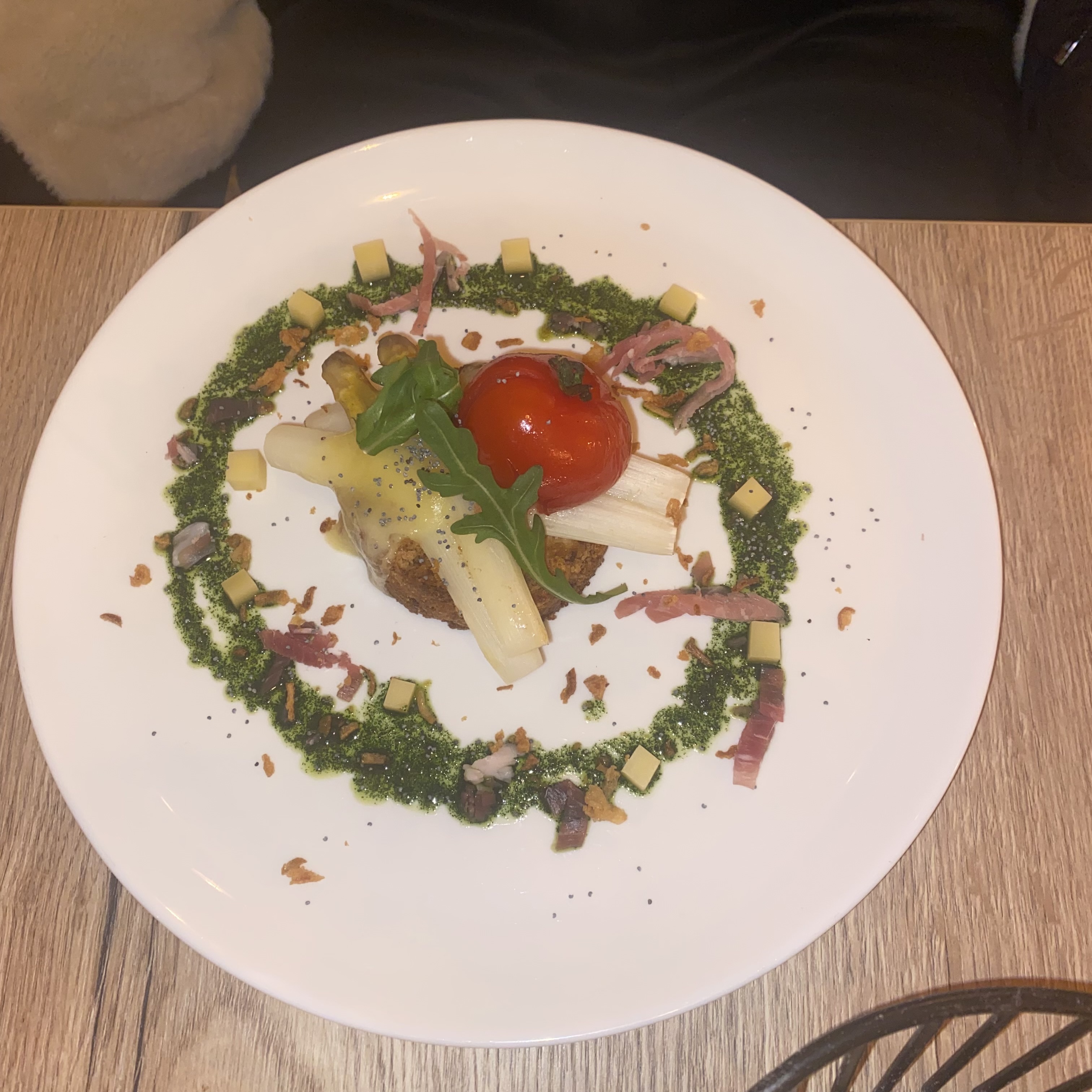 Goût raffiné! Service original, la sauce et l'assaisonnement sont au top ! J'ai l'impression que le chef est fan de pain et de farine, toujours un élément croustillant dans l'assiette 😋 (le sablé aux asperges était un peu trop épais à mon goût, mais j'ai adoré les petits croûtons aux noix de Saint-Jacques). Service attentionné et sympathique. Je recommande ce restaurant ! La terrase est dans la rue piétonne, mais il y avait souvent des motos qui passaient et des voitures de police, etc., donc ce n'était pas calme et nous étions inquiets pour nos sacs à main. Mieux vaut s'asseoir à l'intérieur ou à proximité du restaurant. Les portions sont généreuses et valent le prix.