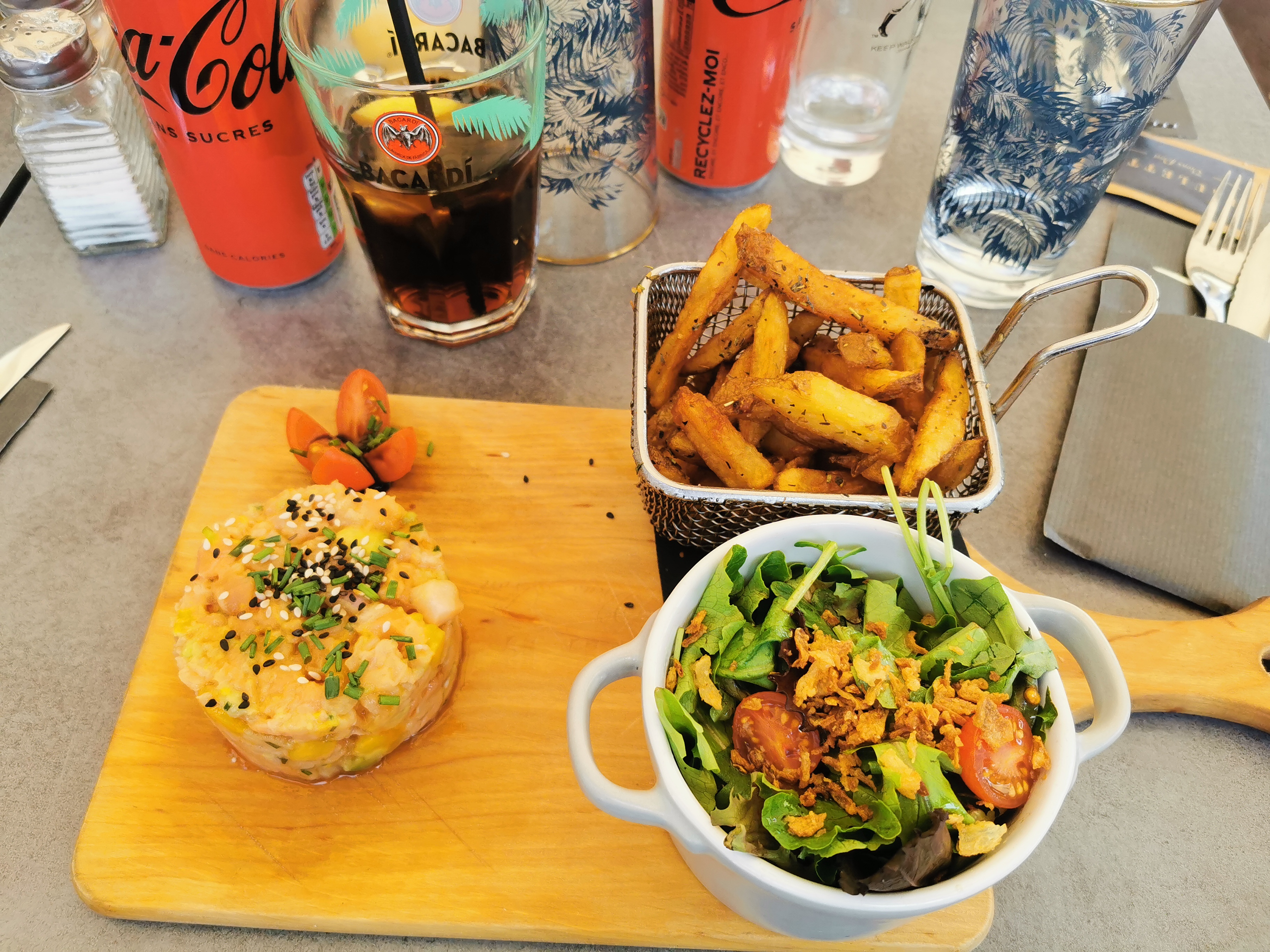 La cuisine est bonne. Mon plat était très coloré et goutu. Le dessert était très frais. En boisson juste une limonade qui était rafraîchissante et peu sucrée.