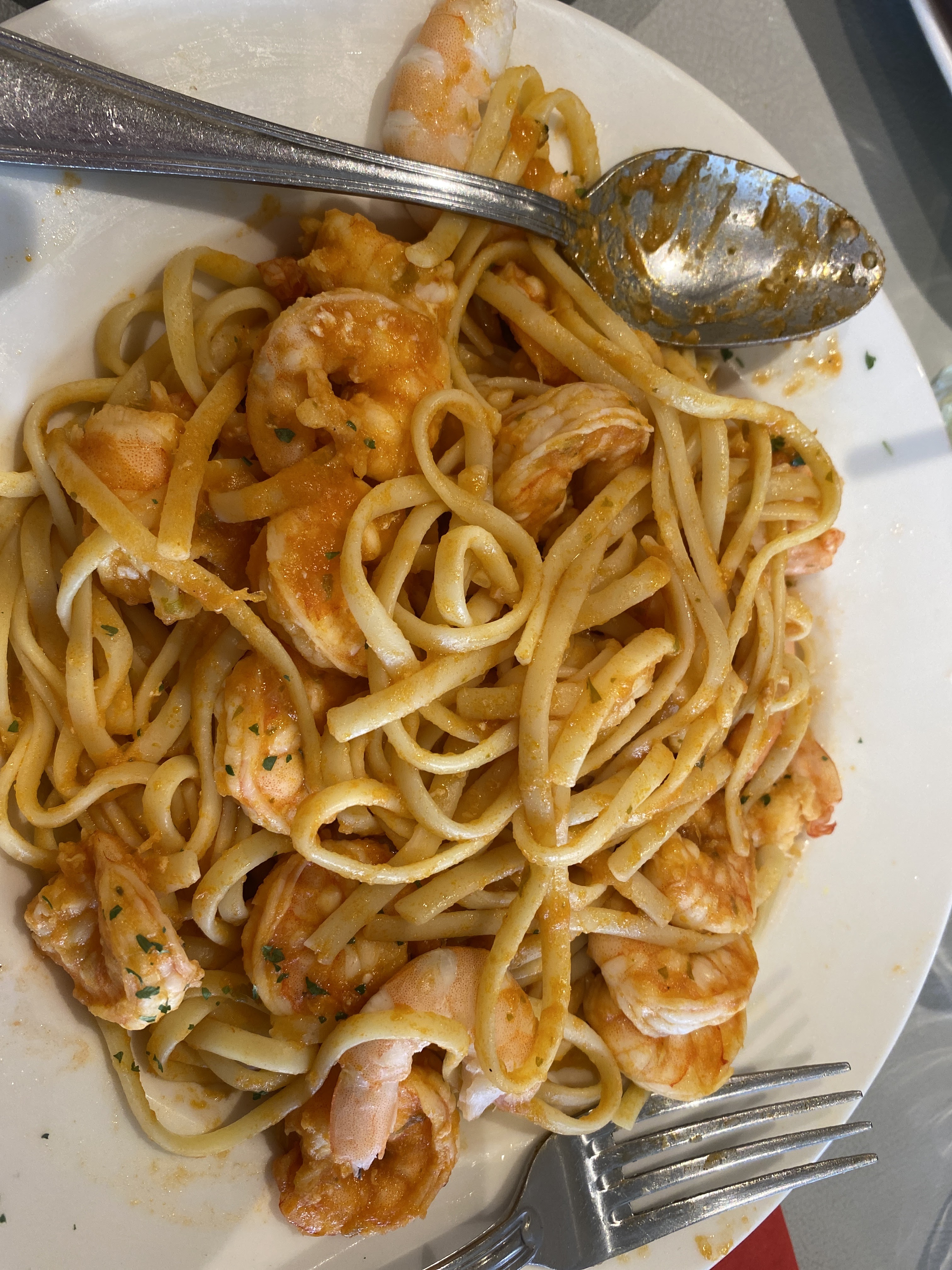 Non mais franchement c’est une blague et elle n’est pas très bonne. Salle soit froide près des fenêtres soit sous la clim. La serveuse gentille qui ne connaît pas tous les plats. La musique est trop forte. La carte avec des plats globalement chers. Ex pâtes aux crevettes (3 crevettes gambas sur la photo à 26€) Nous étions quatre avec 4 plats différents. L’entrecôte pas tendre, la morue grasse, un burger pas top et un plat comme un croque poisson qui baigne dans une sauce comme une bisque tout ça accompagné de frites « maison » enfin il parait… Une cuisine grasse, généreuse dirons certains mais trop, pas de saveur sans grand intérêt. Apéritif franchement pas top. Bref nous nous sommes dispensés d’un dessert qui s’annonçait à la hauteur du repas c’est à dire mauvais. Nous ne reviendrons pas c’est certain 27€/ pers pour 1 plat et 1 boisson c’est cher! Mauvais rapport qualité prix