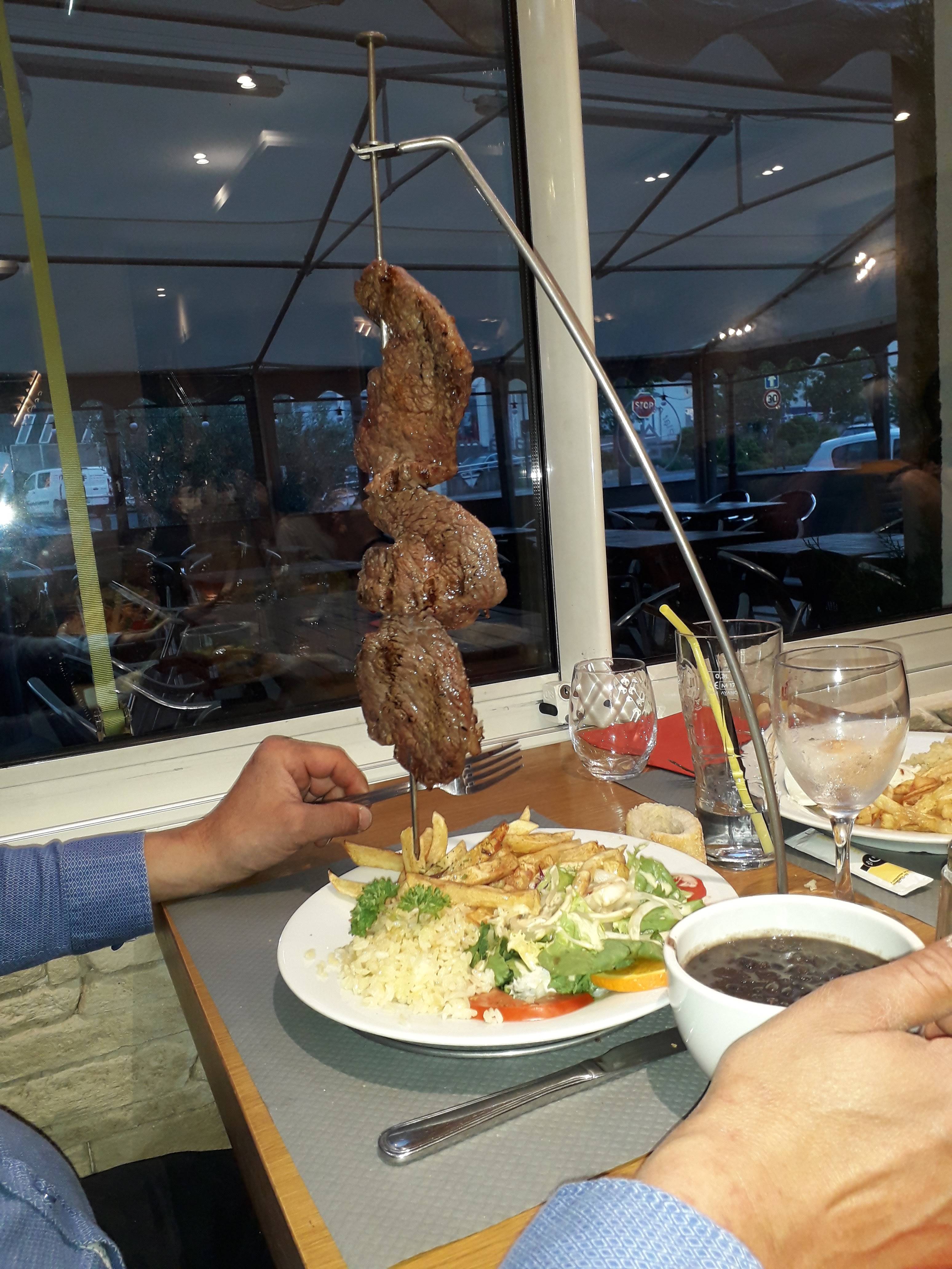 Restaurant qui change d'enseigne tous les 2 ans, curieusement c'est toujours le type brochette, moderne et propre. Bemol les prix , mais vous en avez pour votre argent et ne sortez pas de table la faim au ventre. Le personnel est courtois.