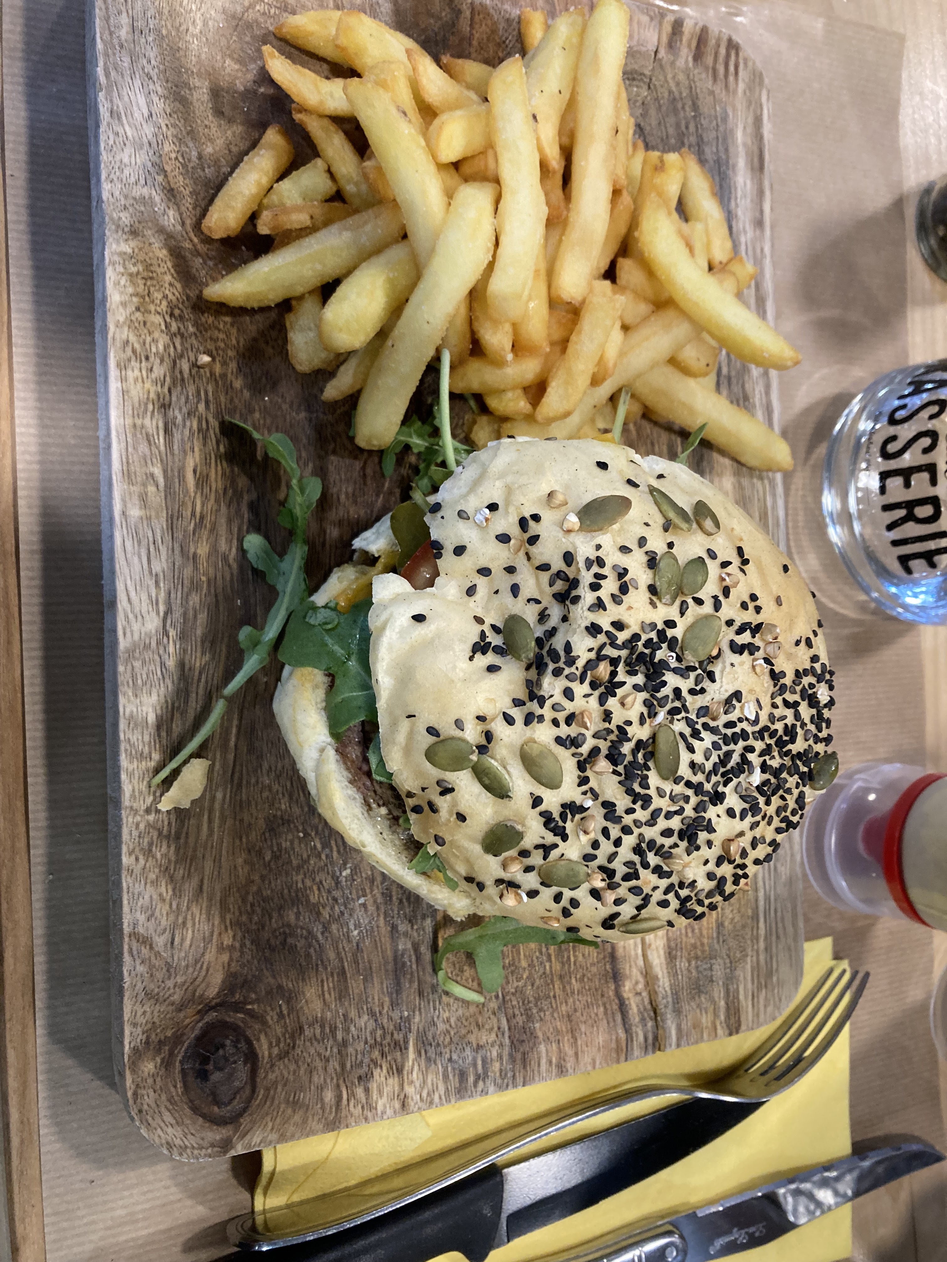Super! Sur la route du retour de vacances, nous nous arrêtons en famille (2adultes et 3garcons en bas âges). Accueil très souriant. Menu enfant parfait avec très bon rapport qualité prix (le steak haché n'est pas surgelé il est de qualité). Et pour nous le Burger et la salade sont très copieux et très bon. nous terminons par un dessert et un café gourmand tout me semble fait maison et frais, c'est très bon tout du long. l'intérieur du restaurant et la terrasse sont jolis👍 très bon rapport qualité-prix 👍