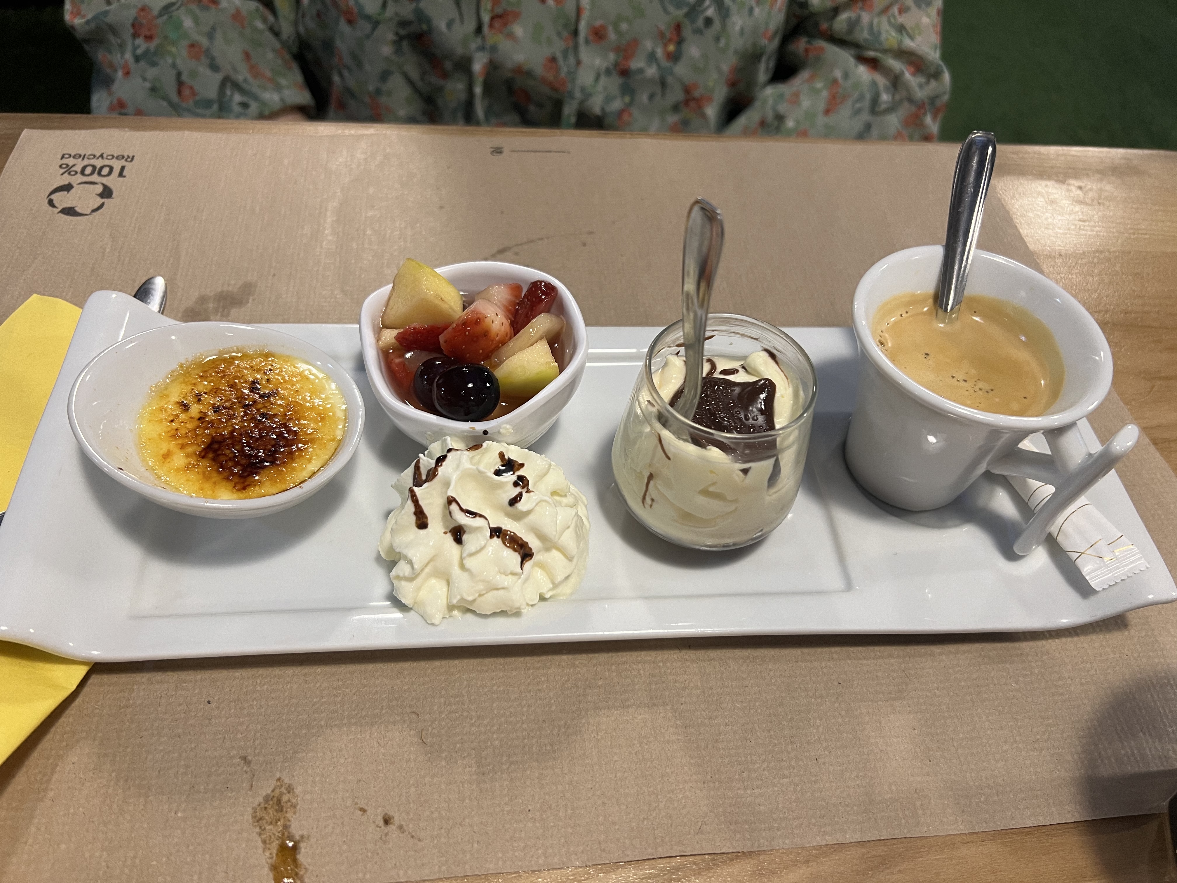 Dîner à 3. Très bien reçu, terrasse agréable malgré la chaleur. Les plats sont copieux. Les desserts maison. Je recommande.