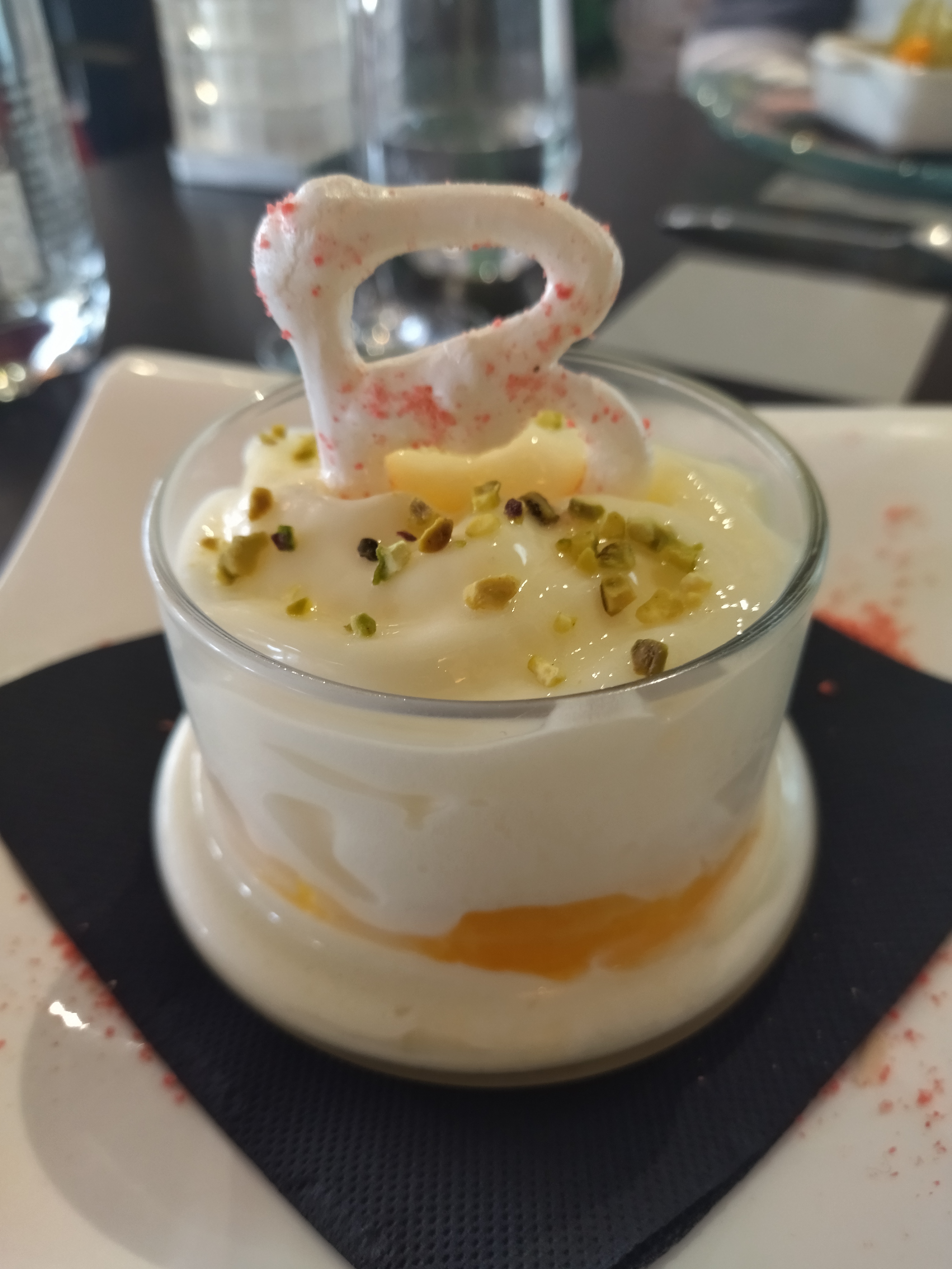 Repas du 1er de l'an 2023, salle complète,belle décoration,belle présentation des assiettes et par personnel charmant.Satisfaite du premier repas pris avec des amis dans cet établissement.A essayer..