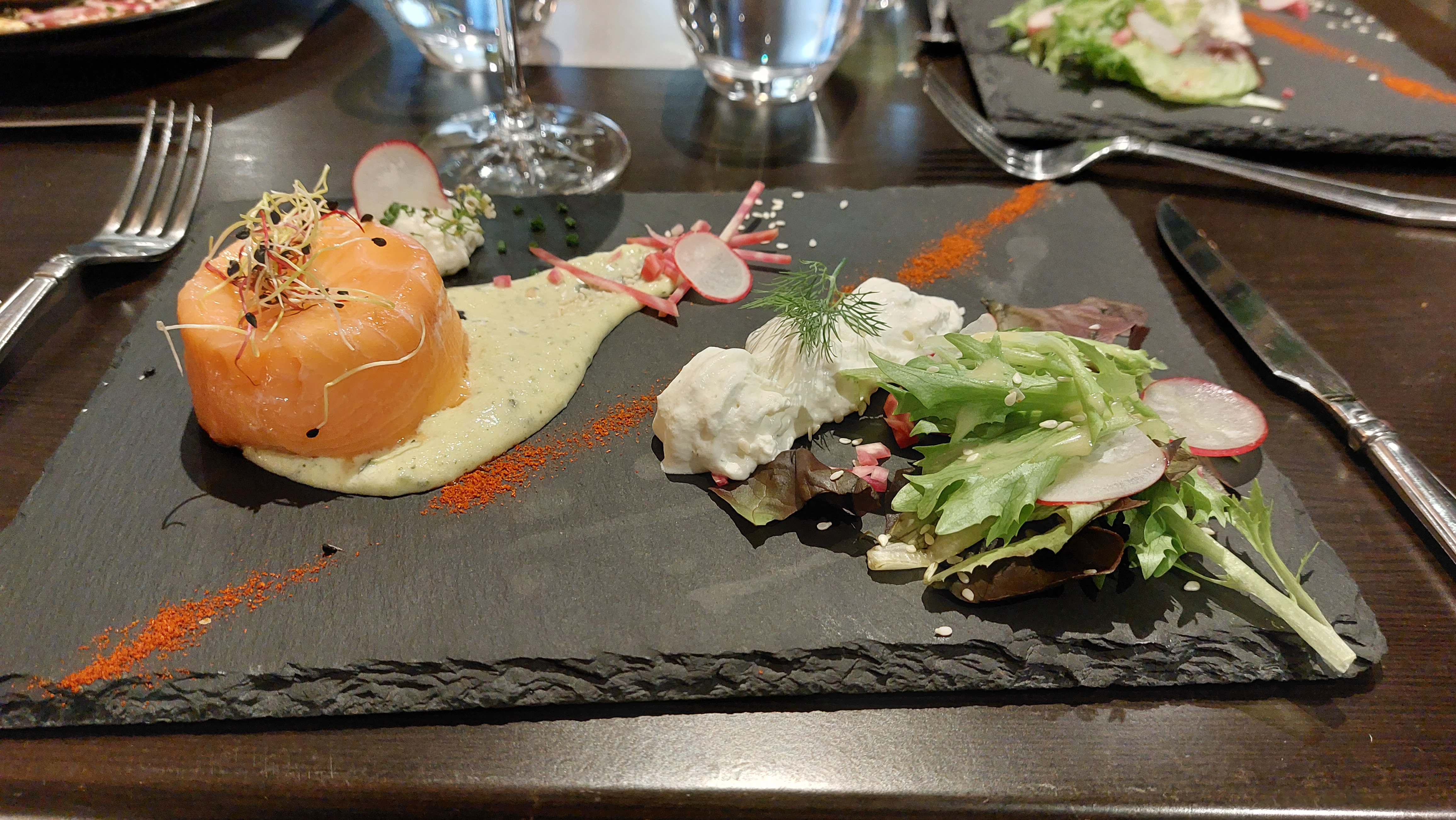 Très bon repas. Cependant l'entrée saumon pas assez assaisonné a mon goût. Risotto excellent mais aiguillettes de chapon sèches et un peu dures ça mériterait une petite sauce avec. Mi cuit chocolat coulant comme j'aime. Merci pour ce moment