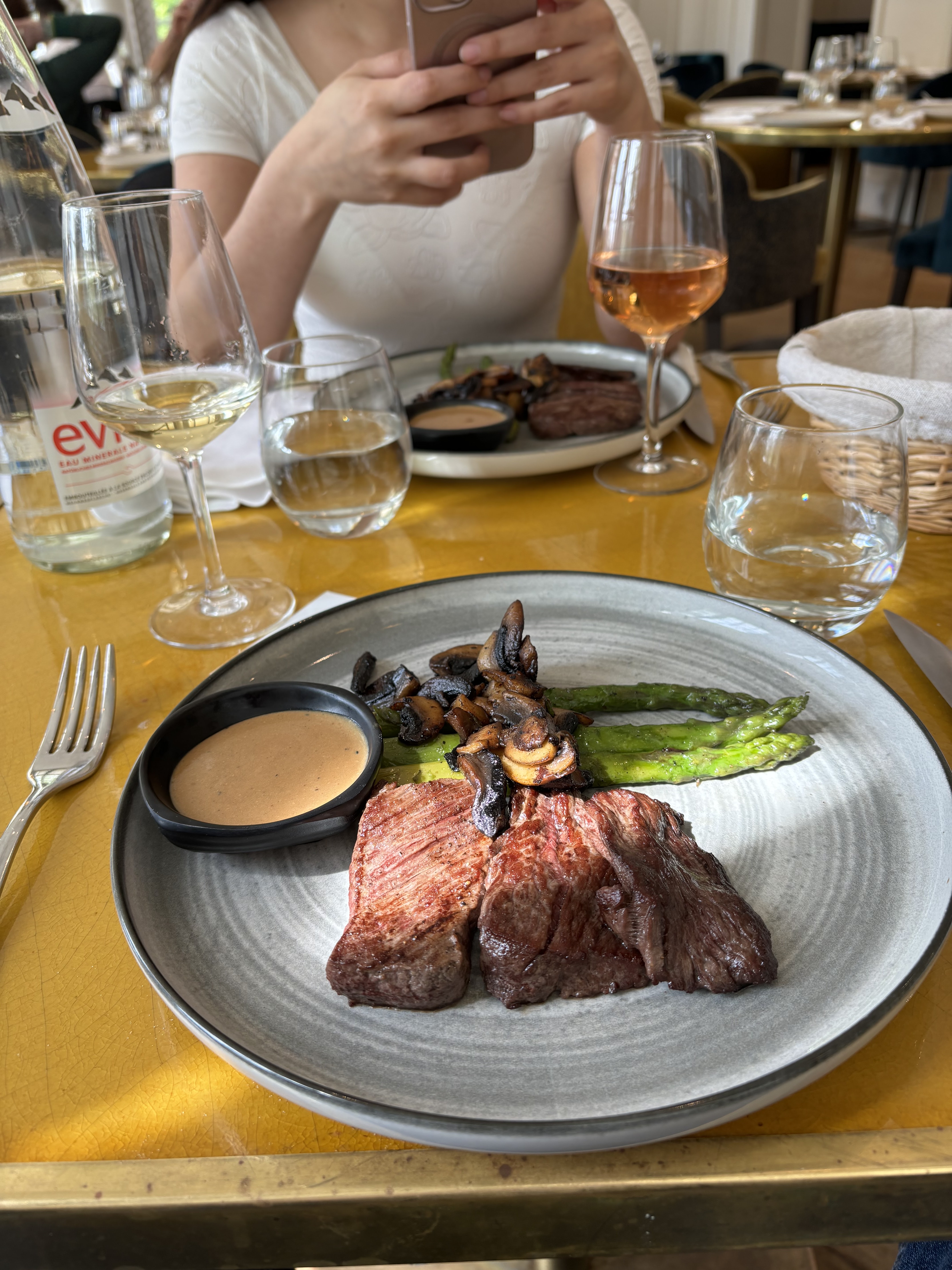 Bonjour, Nous y sommes allés semaine dernière. 180 Euros pour deux, le tarif est un peu élevé....On commande des coupes d un Champagnes sur la carte, on nous sert un autre......La viande était très dure, les couteaux bien aiguisés ont sauvé la mise.....Les déserts....un plateau de pâtisserie ! A ce tarif ( de grands restaurants dans Paris ) on a au minimum des déserts fait maison......