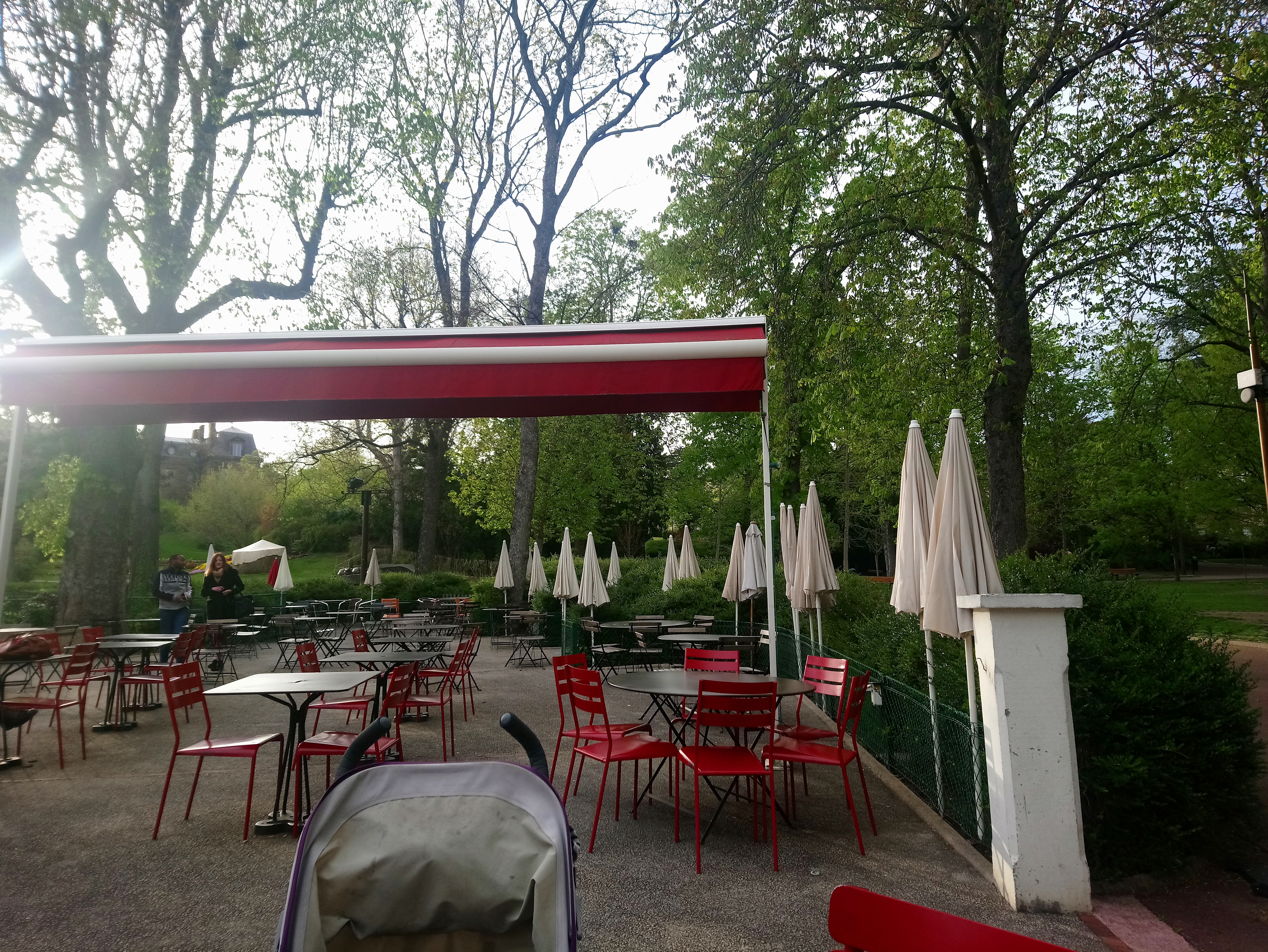 Pour boire 1 sirop à l'eau durant notre visite du parc. Paisible comme un voisinage arbreux