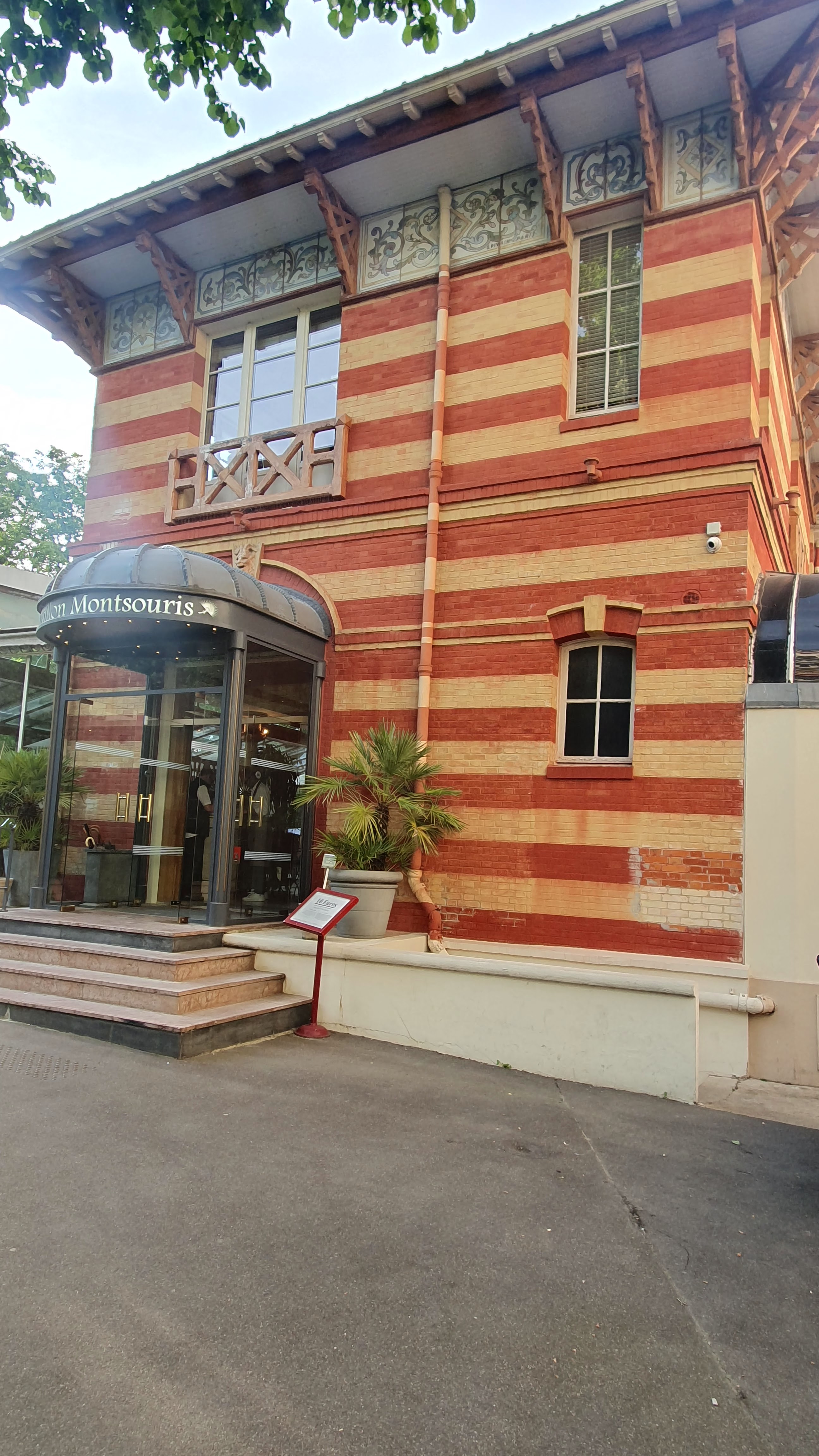 Situation exceptionnelle dans le parc Montsouris, avec terrasse exterieur, quand le temps le permet Batiment classe qui vaut le coup d'oeil Interieur style colonial 19e siecle, j'ai bien aime, mes invites un peu moins pour quelques details un peu defraichis, sans doute car nous avions ete temise au fin fonds de la salle sans profiter de la verriere, laissons leur le temps de remonter la pente apres le confinement Service, un peu lege pour un restaurant de cette game, des problemes d'embauche egalement apres le confinement? En ce qui concerne les plats, les avis de notre table sont mitiges, entrees correctes, le bar est moyen, par contre mes riz de veau croustillants etaient delicieux Entree plat dessert pour 51€, je vous laisse juge Detail plus, le voiturier, 10€ quand meme