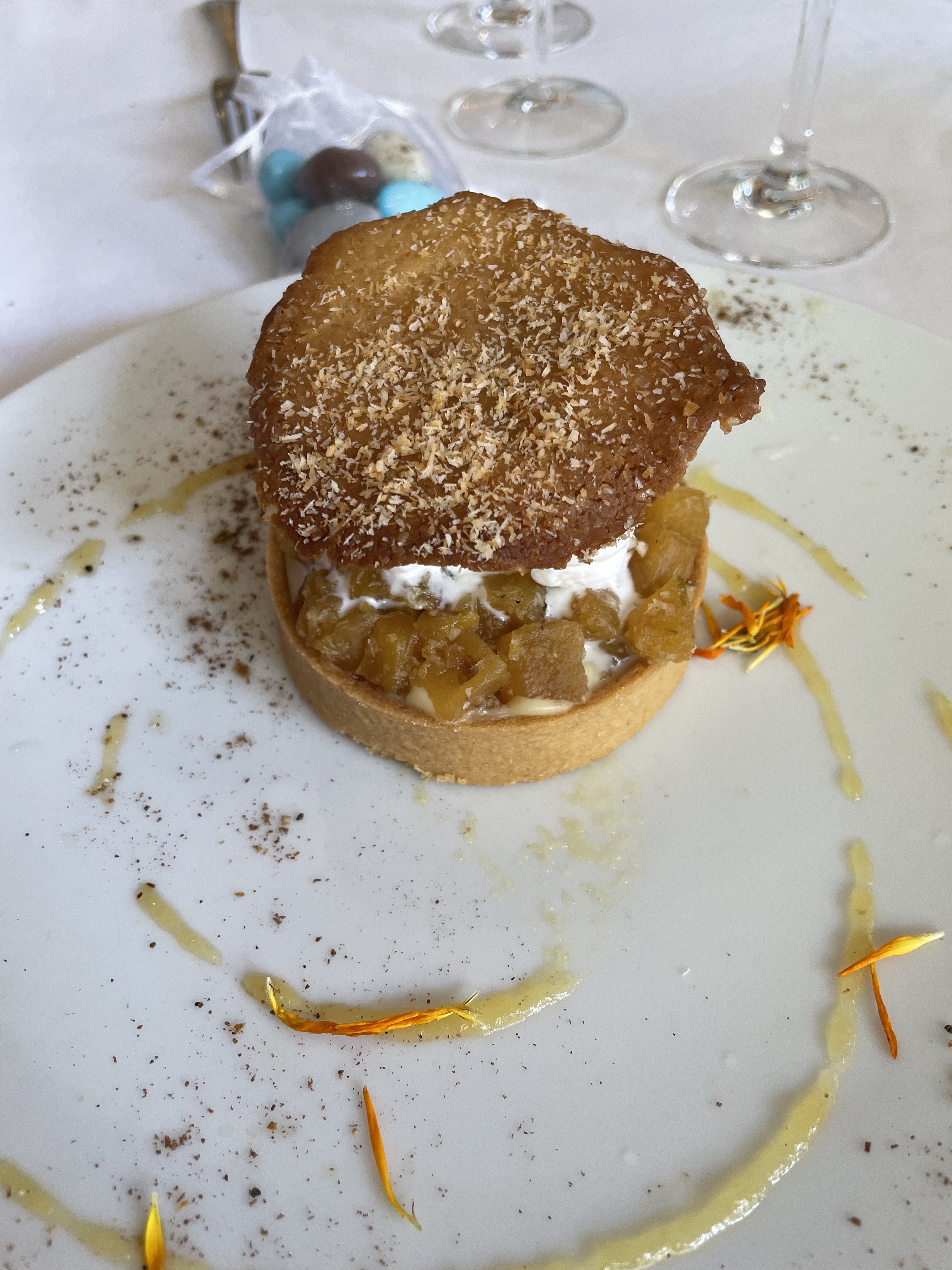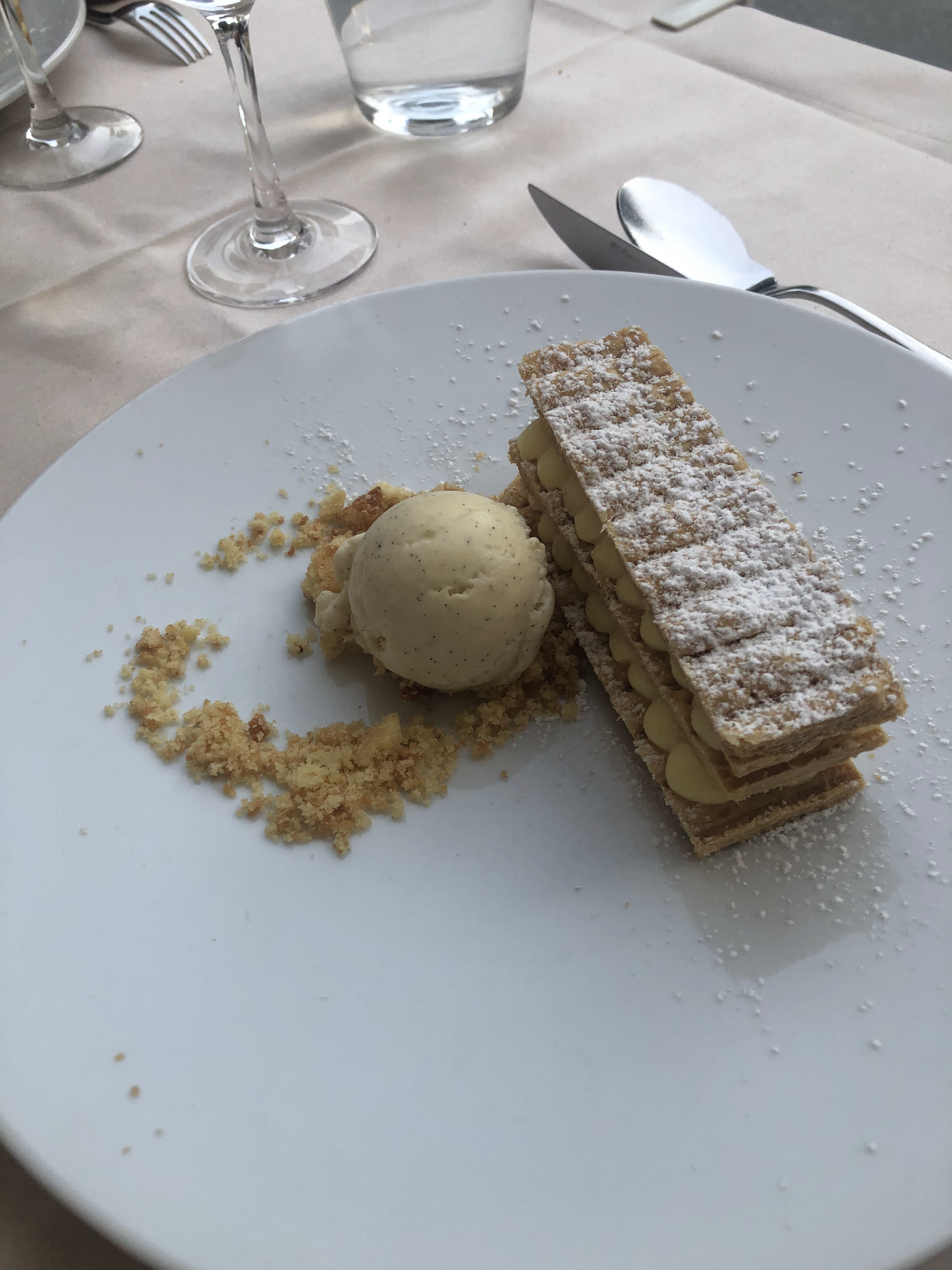 Bien évidemment le cadre est magnifique surtout avec le soleil et le peu de monde. Le service était très bien quoique un peu oppressant pour ramasser les plats alors que le restaurant était très loin d'être complet. La nourriture était très bonne. Par contre gros point noir : la quantité dans l'assiette. Je n'avais pas pris d'entrée et je suis resté sur ma faim. Ce n'est pas acceptable vue le prix. Le chef vous annonce un gratin de macaroni sachant qu'il y a un supplément de 12€ pour ce plat et vous vous retrouvez avec 10 macaronis et pas un de plus coller les un à côté des autres.