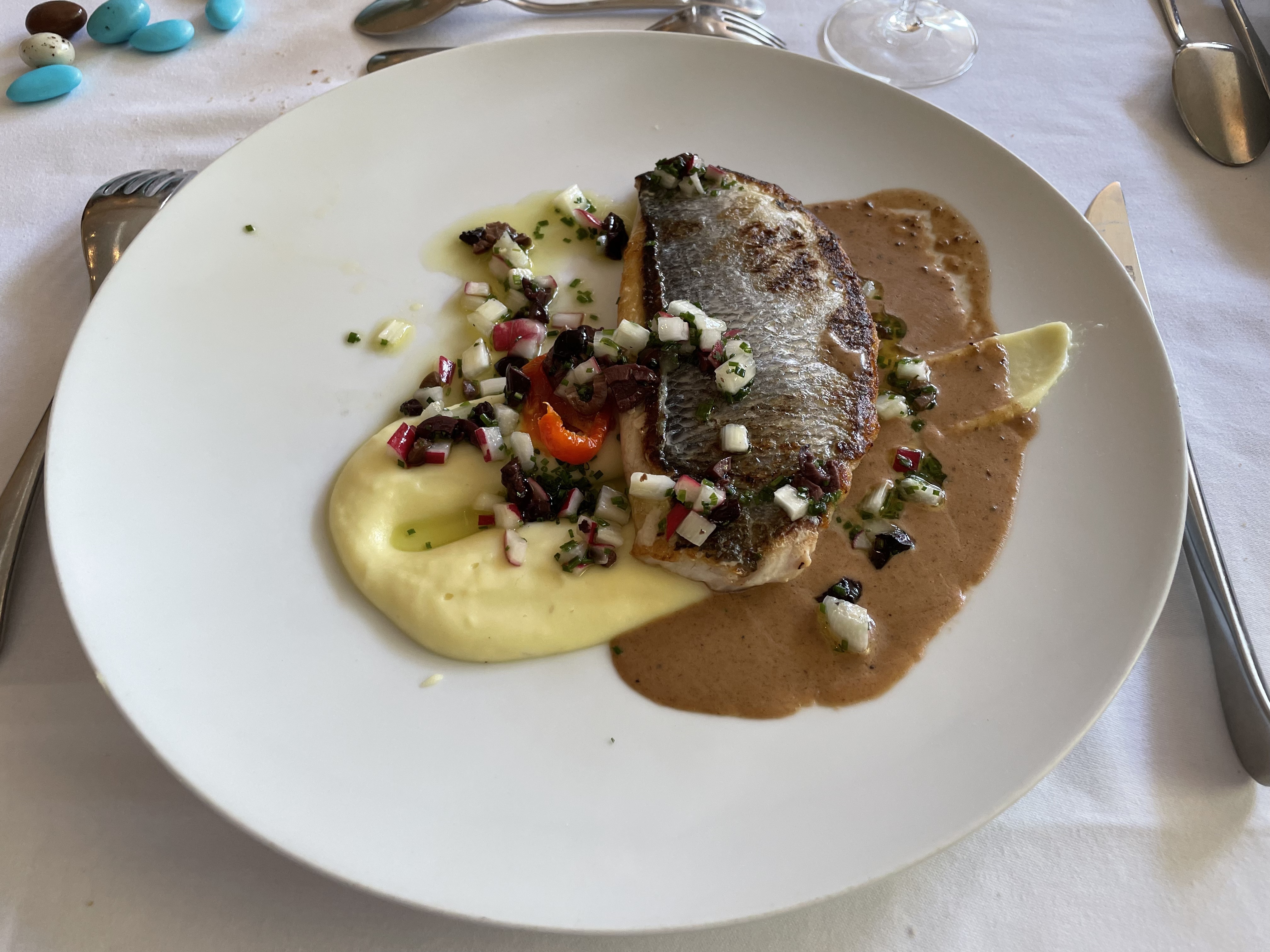 Cadre superbe !! repas extraordinaire Les portions pour une femme permette à prendre un dessert . Le champagne extra Le vin rouge un bonheur