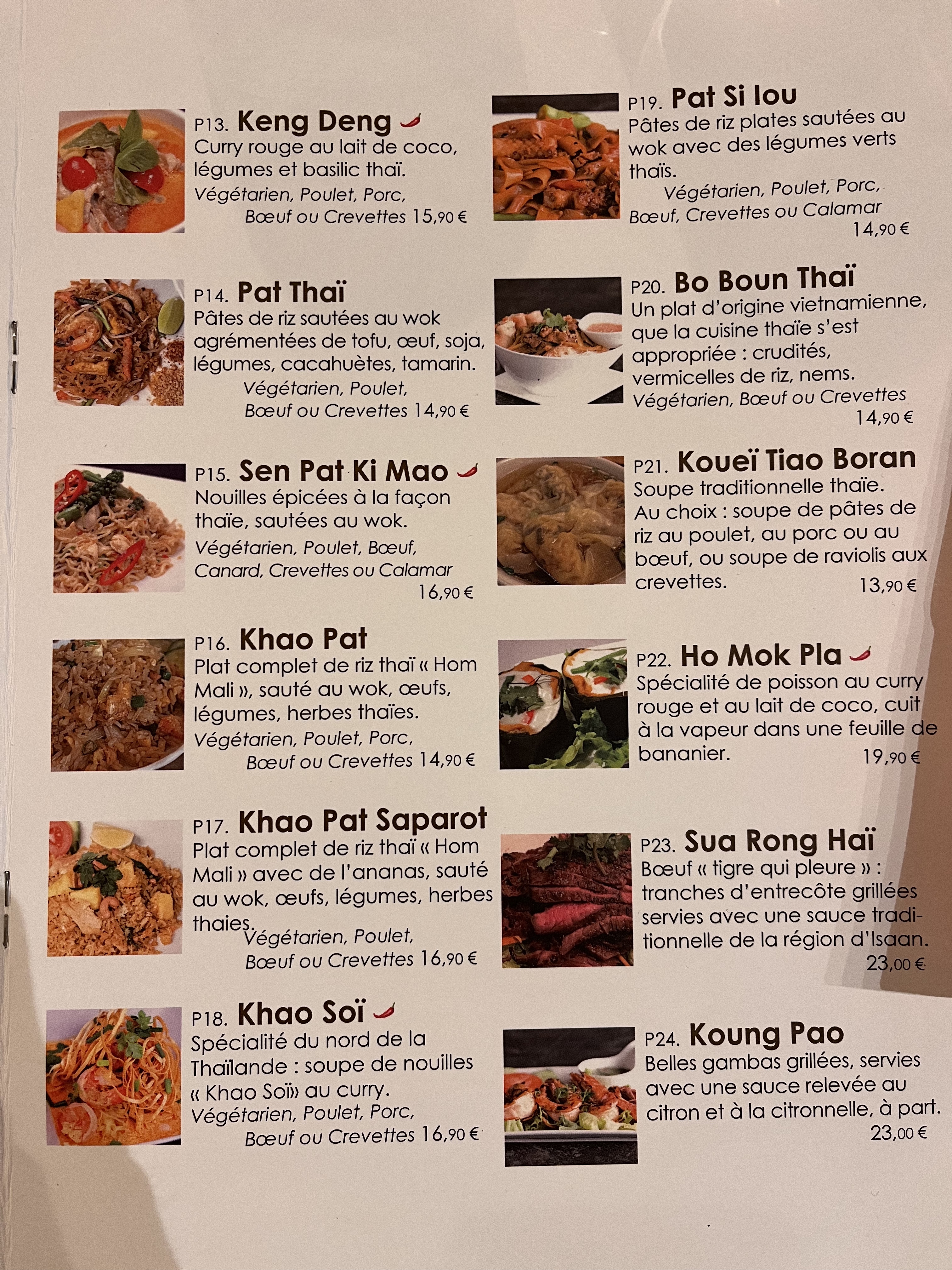 Bonne cuisine. Au début, on hésitait, car il n'y avait que des plats classiques de tous les resto thaï. Mais on a essayé 4, ils sont tous Wow. Donc si tu veux connaître la cuisine thaï aurait dû être, ce restaurant peut donner des bons indices. L'équipe est sympa, poli, souriant et efficace. Le restaurant est assez grand pour Paris : environ 100 couverts (?), et plutot spacieux avec haute plafond. Il est aussi très propre, bien aéré (ne sent pas fort de la cuisine) et bien chauffé. Quand il y a beaucoup de clients, il est pas bruyant ni stressant. Donc un bon endroit de dîner entre un group d'amis ou collègues. Et le prix n'est pas cher pour Paris.