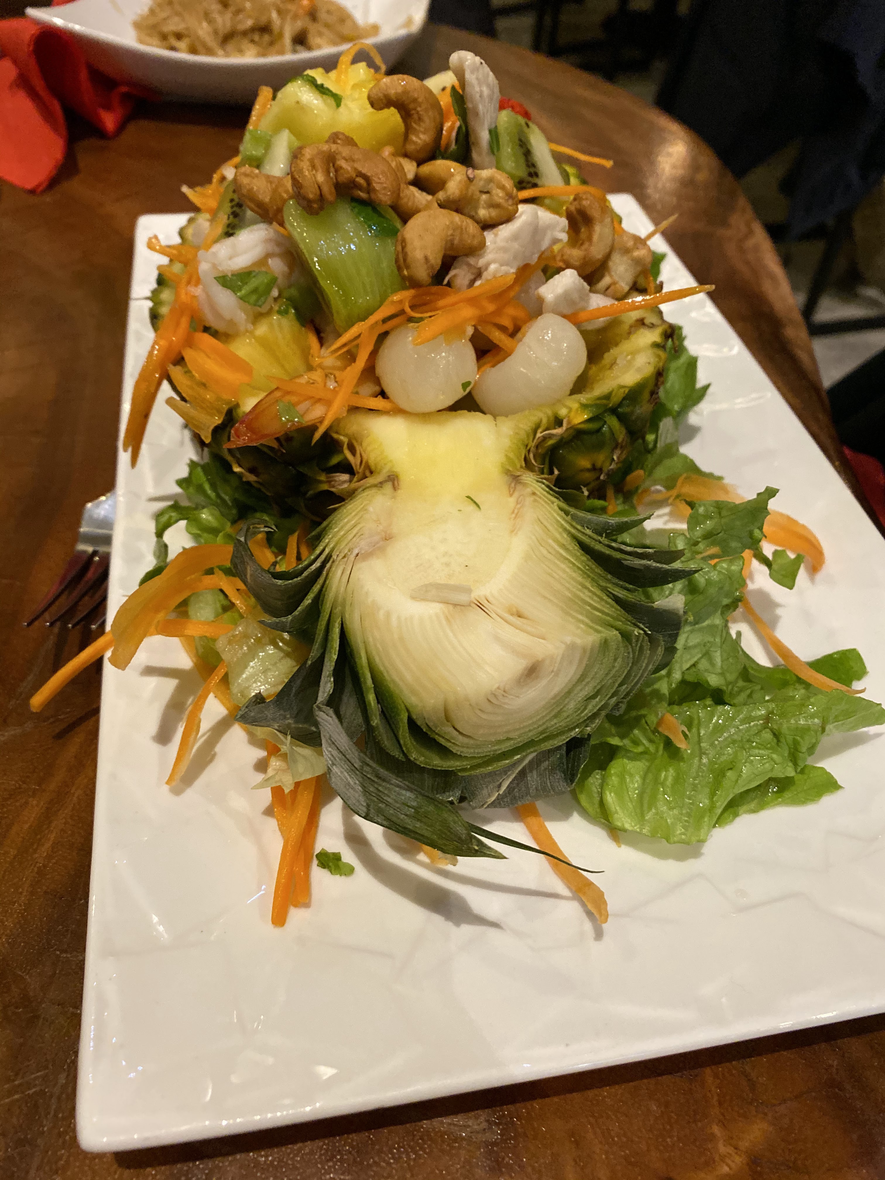 Ahhh, parfait repas, j'ai pris la salade de fruits, poulet, crevette dont je ne me souviens pas le nom, succulent