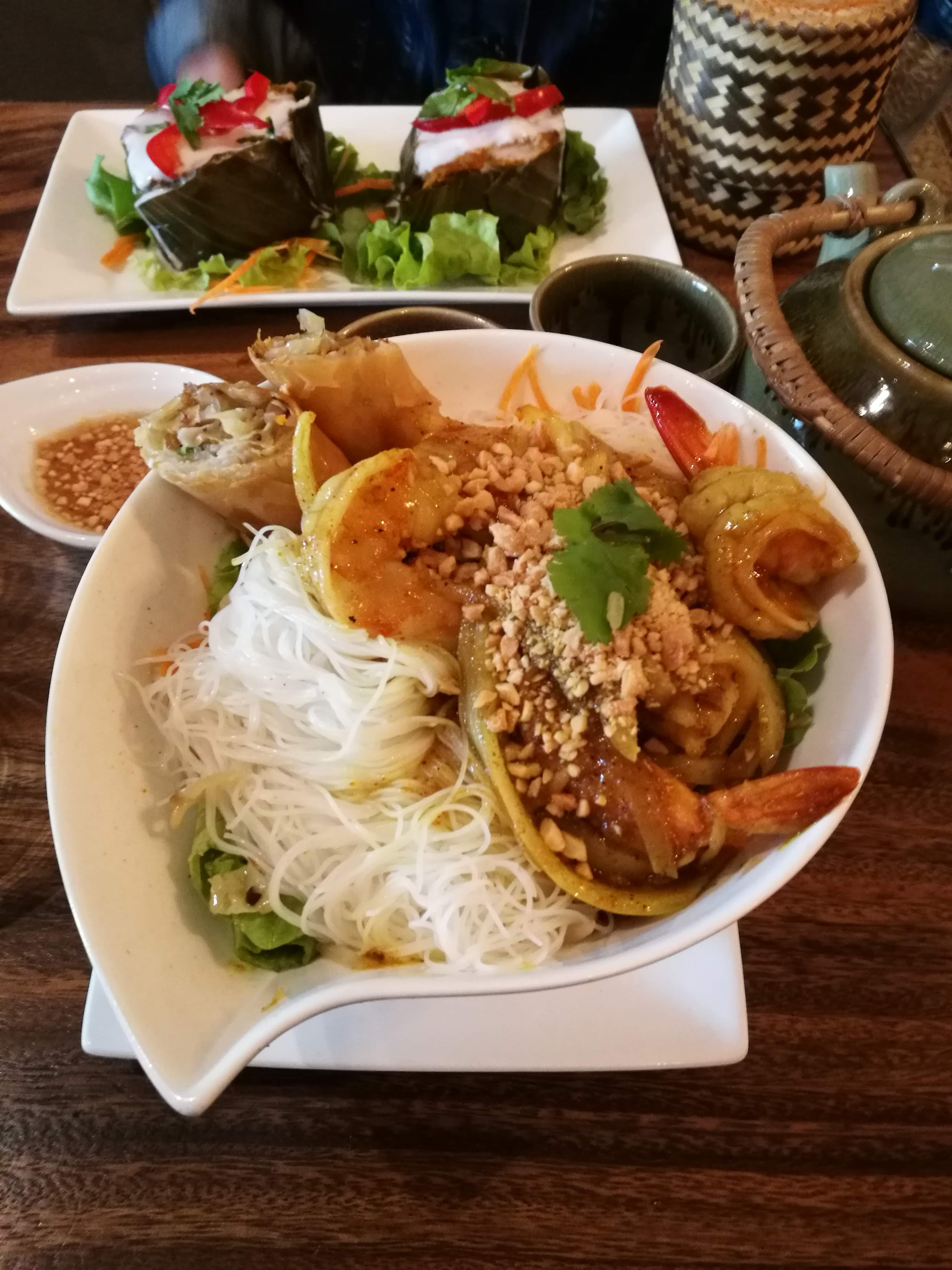 Plat délicieux, bon rapport qualité prix, contexte agreable dans le quartier animé de beaubourg, acceuil sympathique. Le bobun crevettes etait tres bon et joliment présenté, le poisson au curry rouge délicieux également.