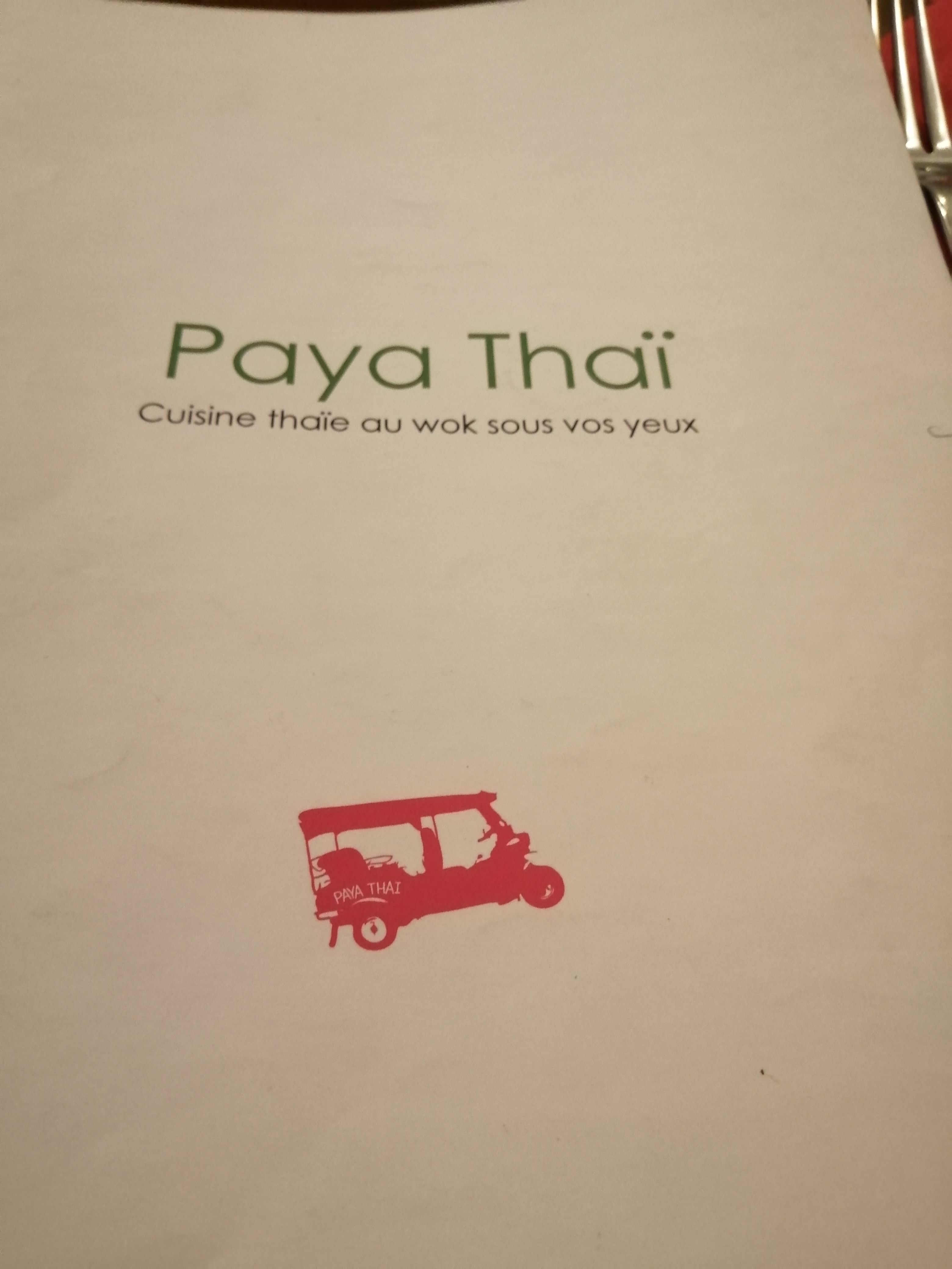Très décevant et très cher. Dîner entre amies ce soir. On nous presse pour la commande or le resto n est pas plein. Cadre moyen plutôt froid. Les entrées sont très chères 11 euros. Nous nous décidons pour plat au curry rouge a 16 euros auquel il faut ajouter un accompagnement à 4 euros qui n est pas compris (moyen et arnaque) et du coup revient à 20 euros le plat où la qualité est moyenne (déjà mangé dans meilleur resto thai dans le 13eme) mais surtout la très faible quantité servi dans un bol qui ressemble plutôt à une entrée avec 3 ou 4 crevettes et peu de légumes avec doute si courgettes fraîches... Du coup encore faim... Je prends un dessert le plus gourmand avec l assortiment de dessert où 3 petites doses donc encore déception avec leur flan thai très très sucré et tapioca au goût suspect fait remarqué et où il faut insisté a 2 fois pour le changer. Les vins sont très très chers soit 9 euros le verre de rosé et thé en sachet très moyen. Arrive l addition où nous réglons et sur le point de partir on nous rattrape pour thé oublié dans l addition. Je demande un geste commercial au vu multiples désagréments et le serveur insiste comme quoi pas possible sinon soit disant retiré sur son salaire... Je mets rarement des commentaires mais là je trouve qu on prend les gens pour des pigeons et porte-monnaie. Peut mieux faire et surtout il existe meilleur qualité et prix ailleurs. PS : pass sanitaire pas contrôlé...comme quoi il n y a que l argent qui compte chez Paya Thai.