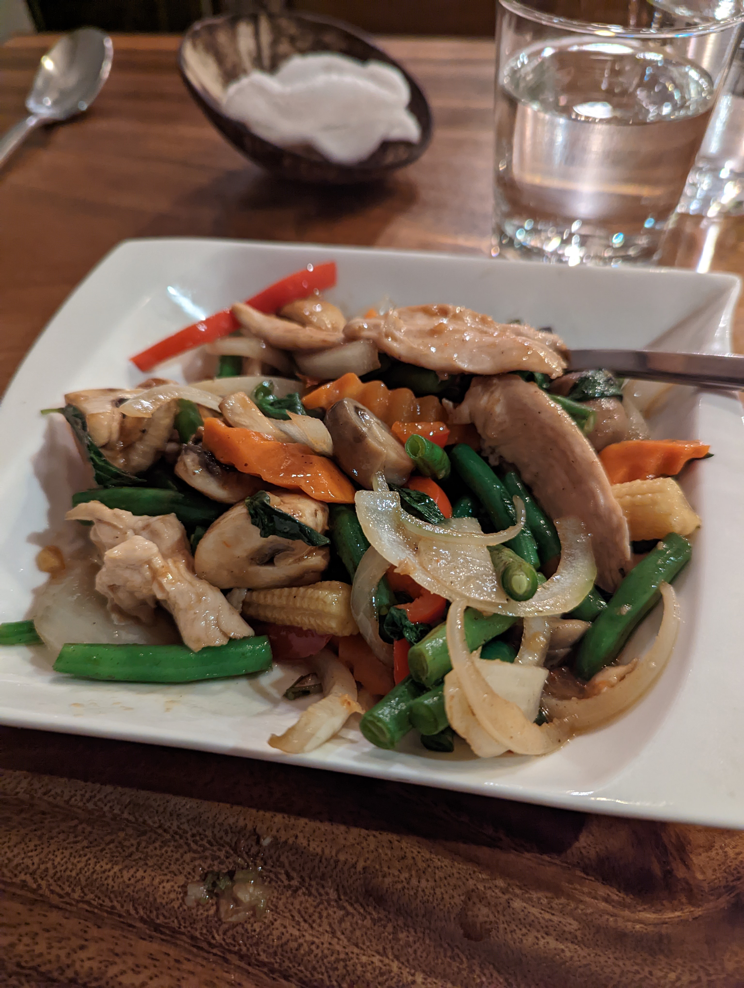 nourriture délicieuse et personnel très sympathique! nous avons commandé du pad thai et du wok avec des nouilles de riz et des légumes. tellement bon