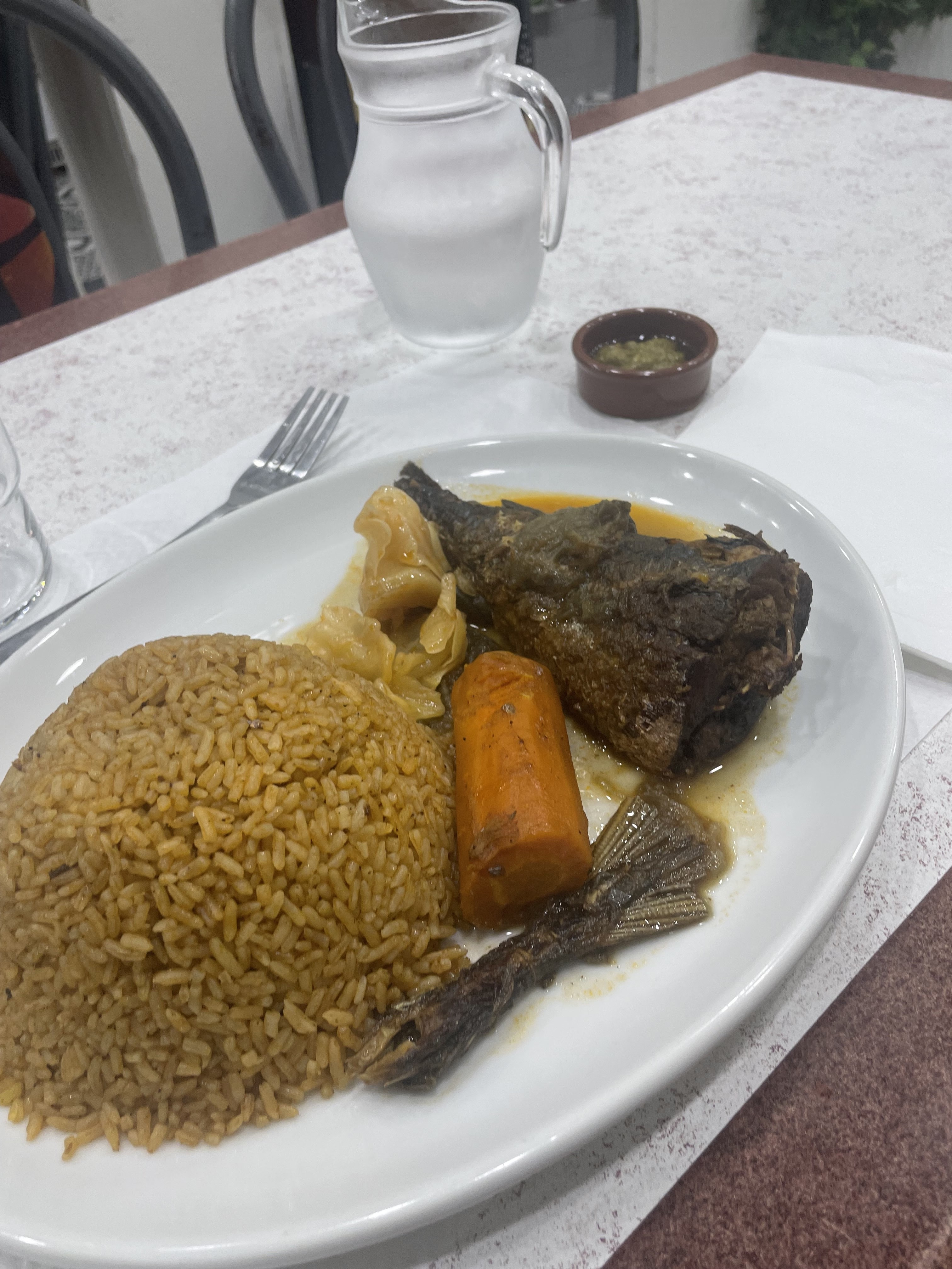 Cela fait plusieurs fois qu’on commande à emporter le Mafé poulet, qui est incroyable, et hier nous sommes allés manger sur place pour manger le plat le Capitaine (fris cette fois-ci), un délice ! De plus tout le monde est très gentil, cela donne envie de revenir plus souvent ! A essayer sans plus tarder ☺️