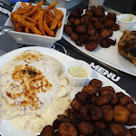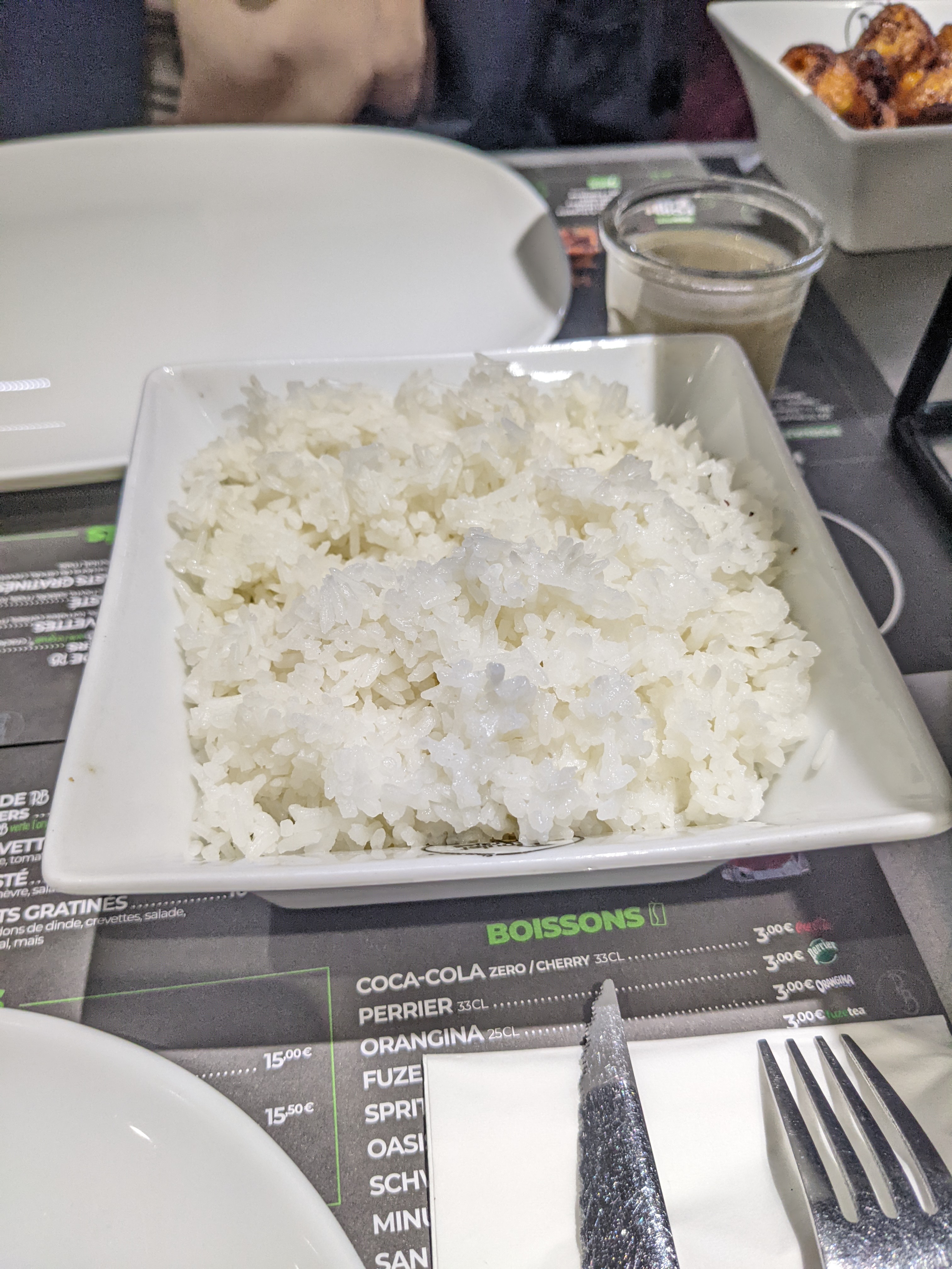 Poulet excellent mais la portion de riz a très diminué (ils sont passé d'une barquette normal a une moitié de barquette) pour le même prix. Ce qui fait que pour un menu DUO, nous sommes obligé de rajouter une portion de riz (inadmissible). De plus, la cuisson du riz laisse à désirer. Bref, ce n'est plus ce que c'était helas...