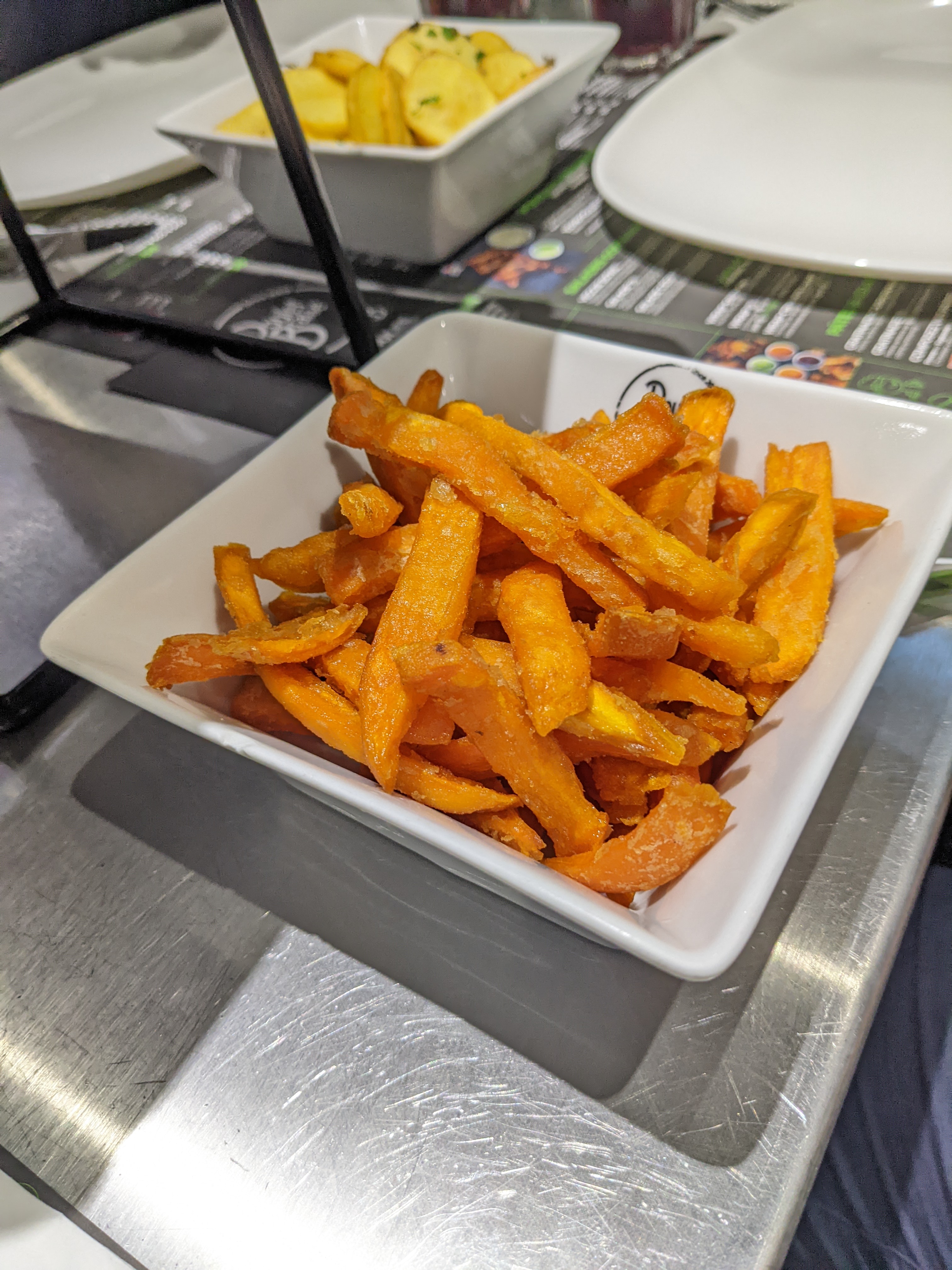 Déçue pour la troisième fois par les frites de patates douces. Ayant appelé précédemment à ce sujet, je suis au regret de constater que les frites de patates douces sont comme de coutumes, (ces derniers temps) inmangeables et c’est d’autant plus regrettable lorsque j’appelle et qu’une personne me confirme que le changement de fournisseur à eu lieu. D’autre part le riz est arrivé froid et compact (trop cuit), Ça mérite une étoile!