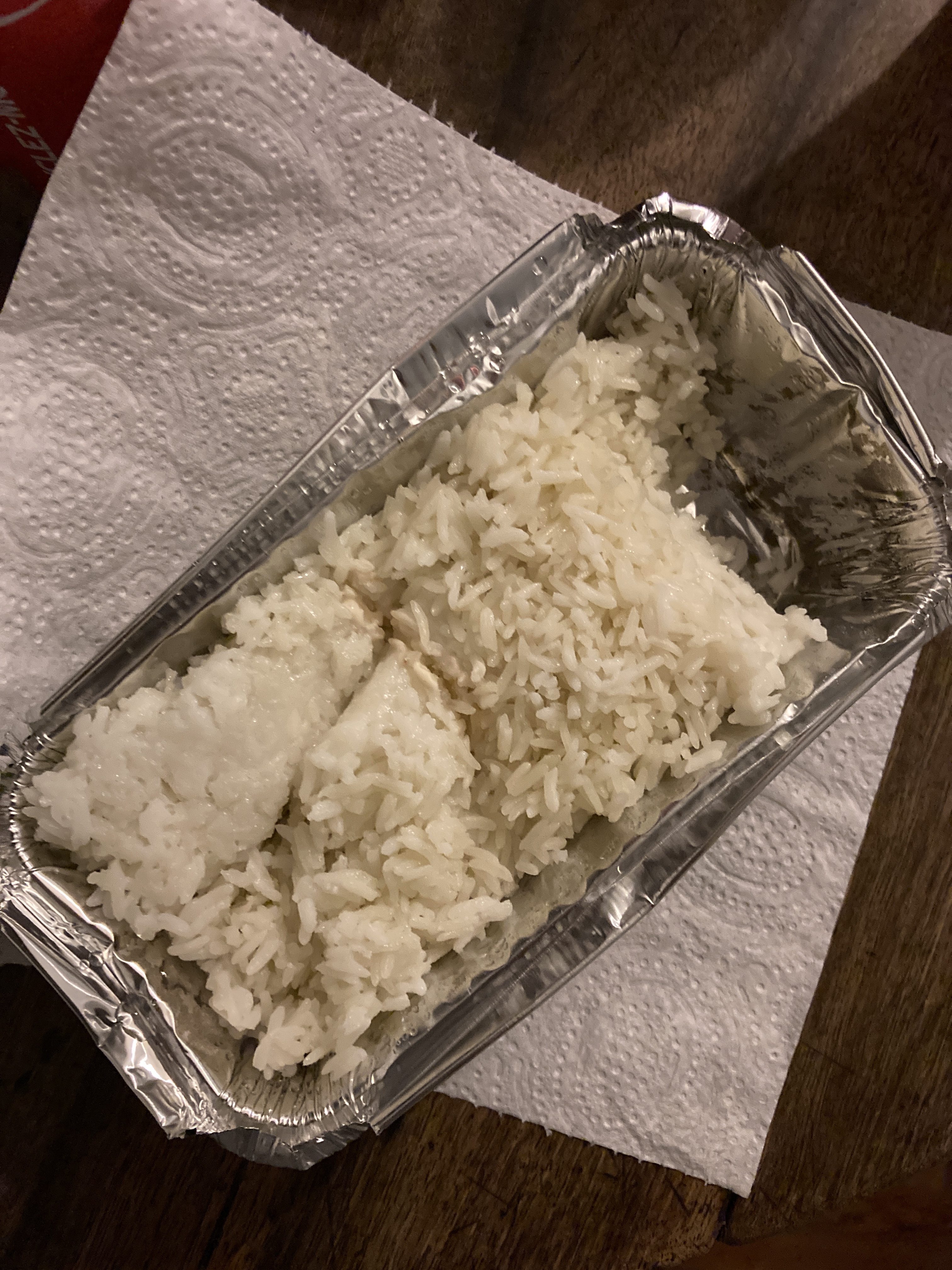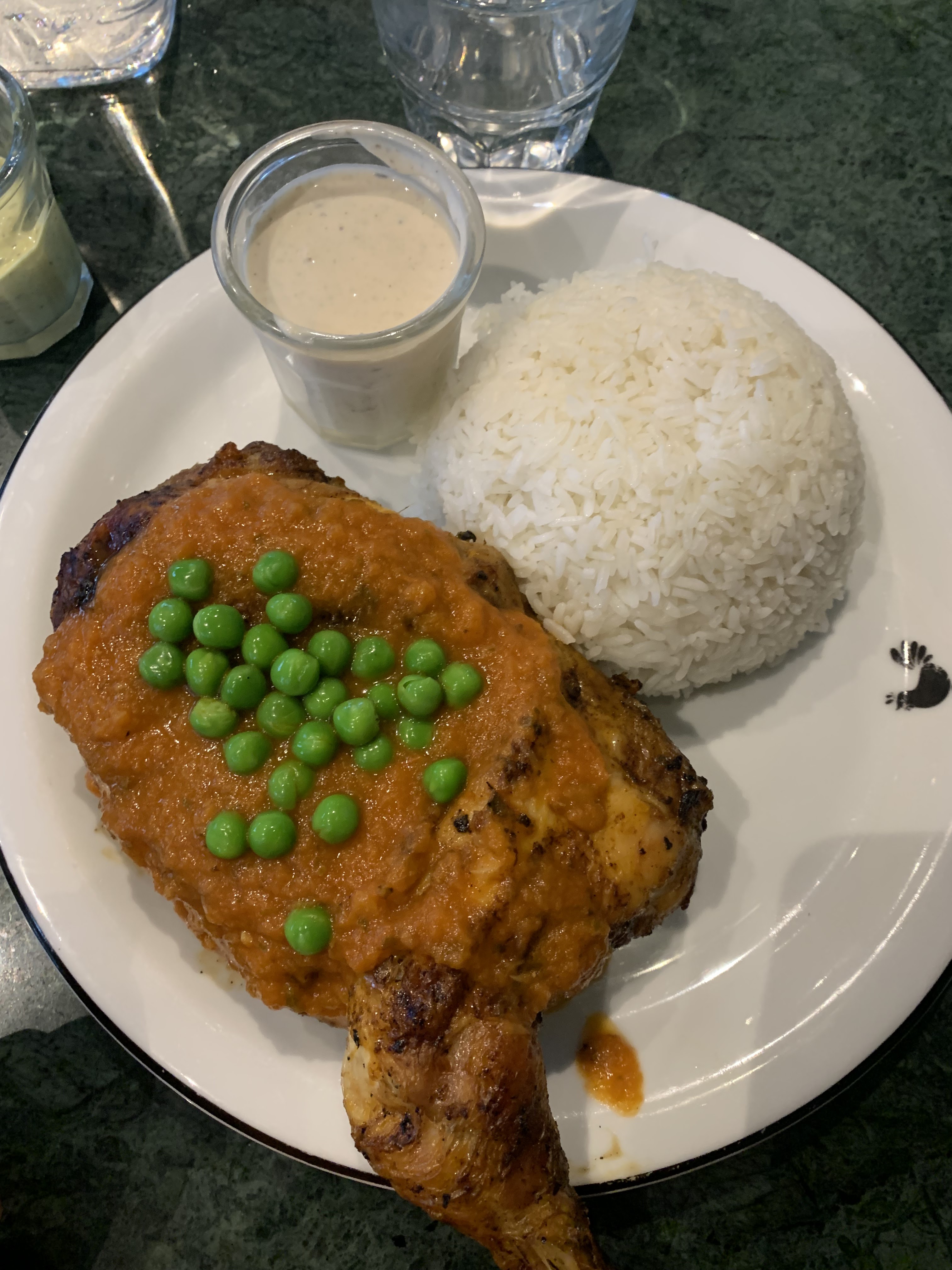 Poulet fade, riz trop cuit, sauce soit disant piri piri alors qu’elle est blanche..? Et ne pique absolument pas. J’aurai mieux fait d’aller acheter un poulet rôti à la rôtisserie.