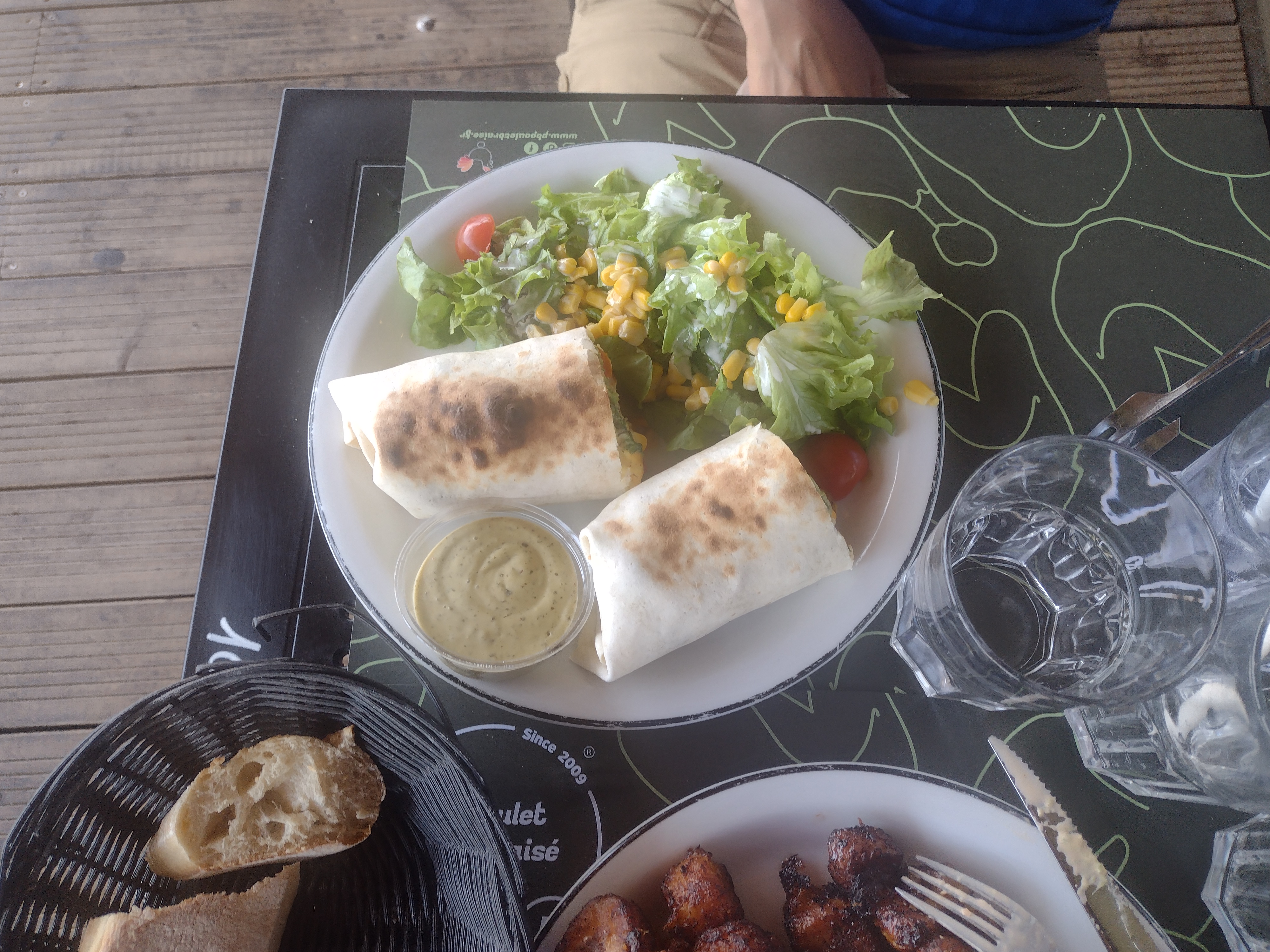 Super bon! Nous sommes passés par hasard et l'odeur nous à attirée 😊 la formule du midi est très bonne et c est un superbe rapport qualité prix ! Le poulet et délicieux et quantité généreuse. Seul petit bémol des petites guêpes nous ont tournées autour pendant le repas en terrasse.