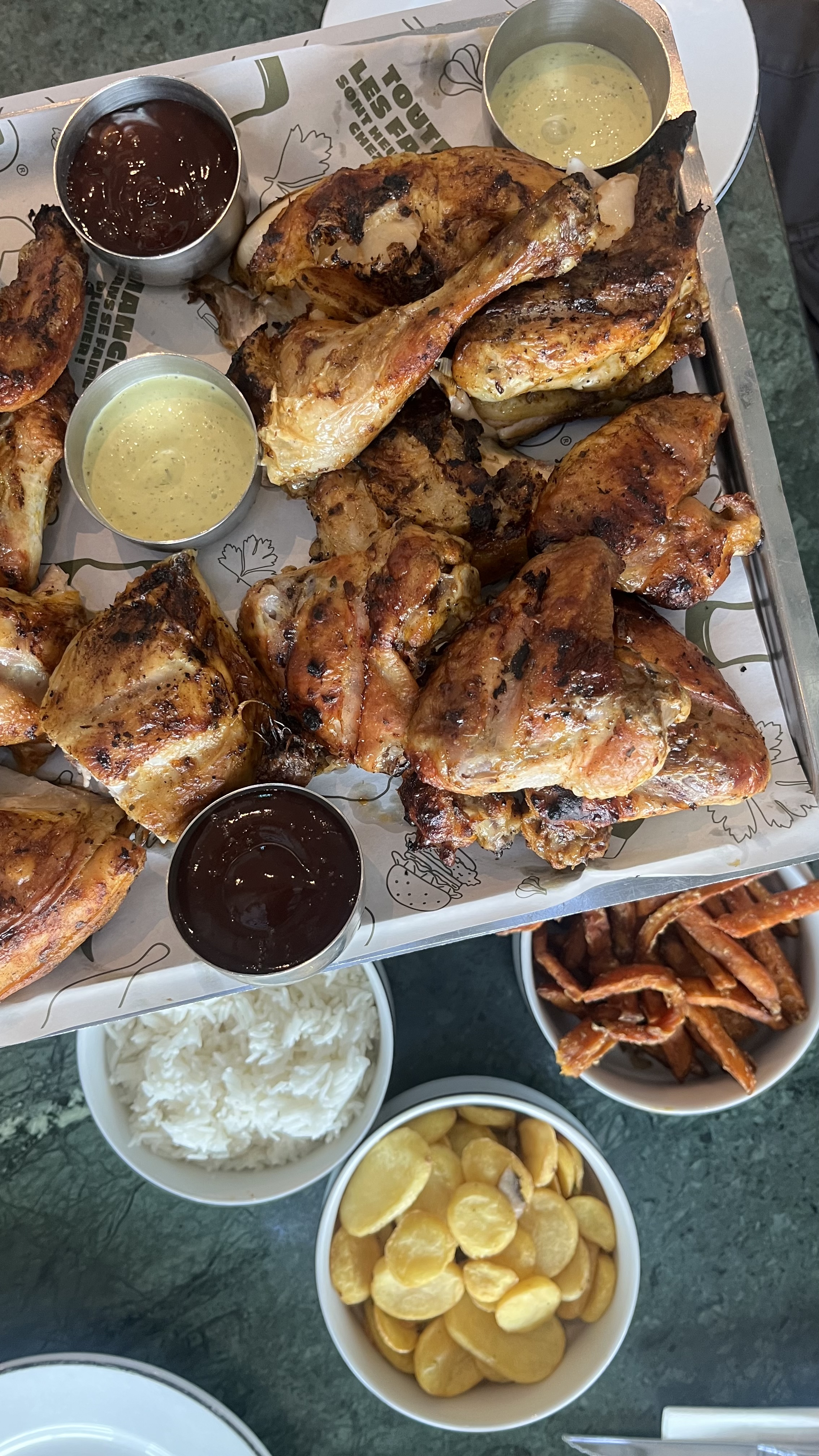 Servir du poulet cru dans un restaurant qui ne sert que du poulet, c’est impardonnable. Et après avoir signalé le soucis, on nous ramène les mêmes morceaux, cuits mais secs. 🙄 Dommage, parce que les sauces étaient très bonnes et notre première serveuse, Emma, très attentive.