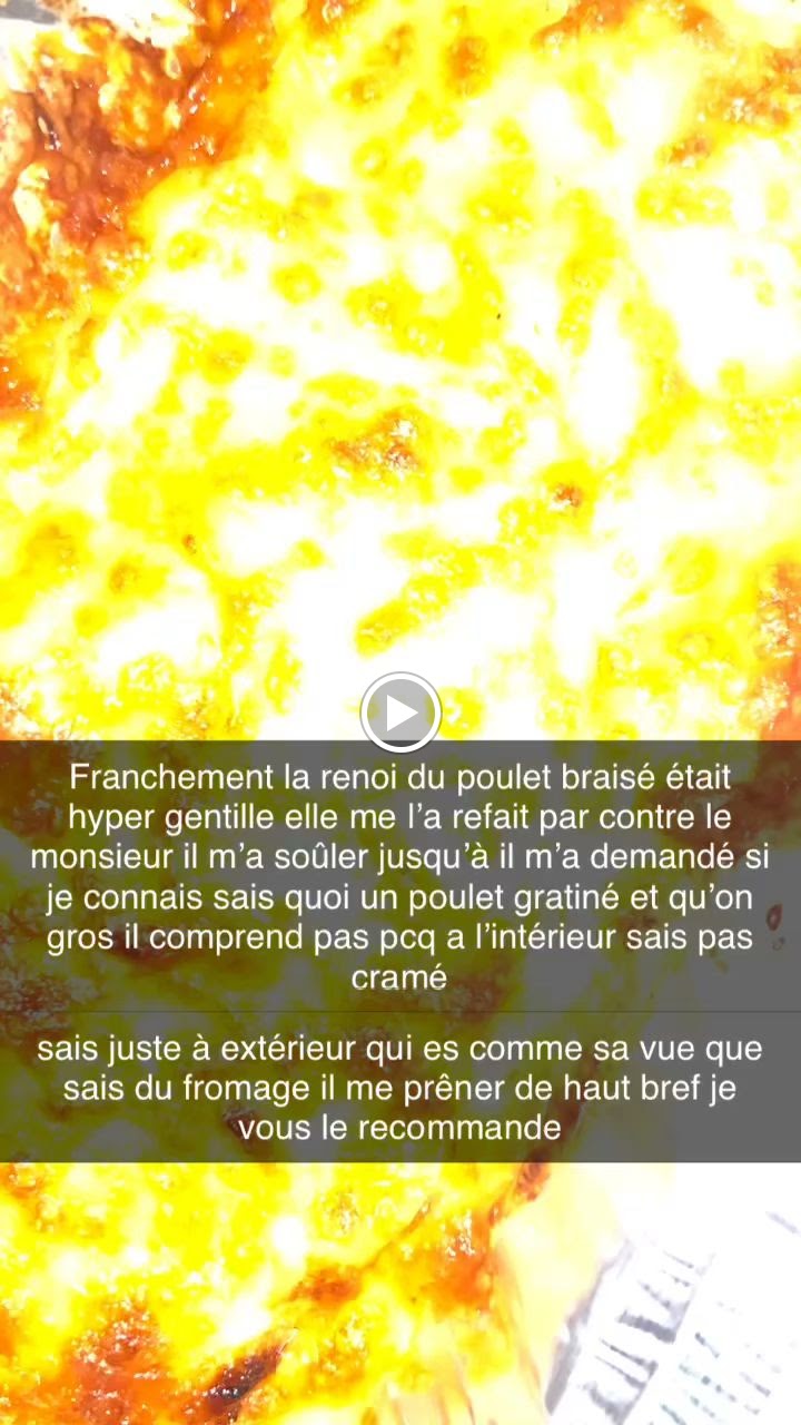 Bref après mon commentaire je suis parti là-bas aujourd’hui pour qu’il refasse mon plat et la DEMOISELLE A ACCEPTÉ DE ME LA REFAIRE ET ELLE ÉTAIT super agréable par à port à son collègue qui m’a prise de haut en me demandant si je savais c’était quoi un gratiné car pour lui a l’intérieur sais mangeable il y’a qu’à l’extérieur qui es comme sa.je mes 4 étoile au lieux de 5 juste à cause de son collègue il m’a soûler bref je tien juste à féliciter sa collègue qui m’a bien accueilli ♥️