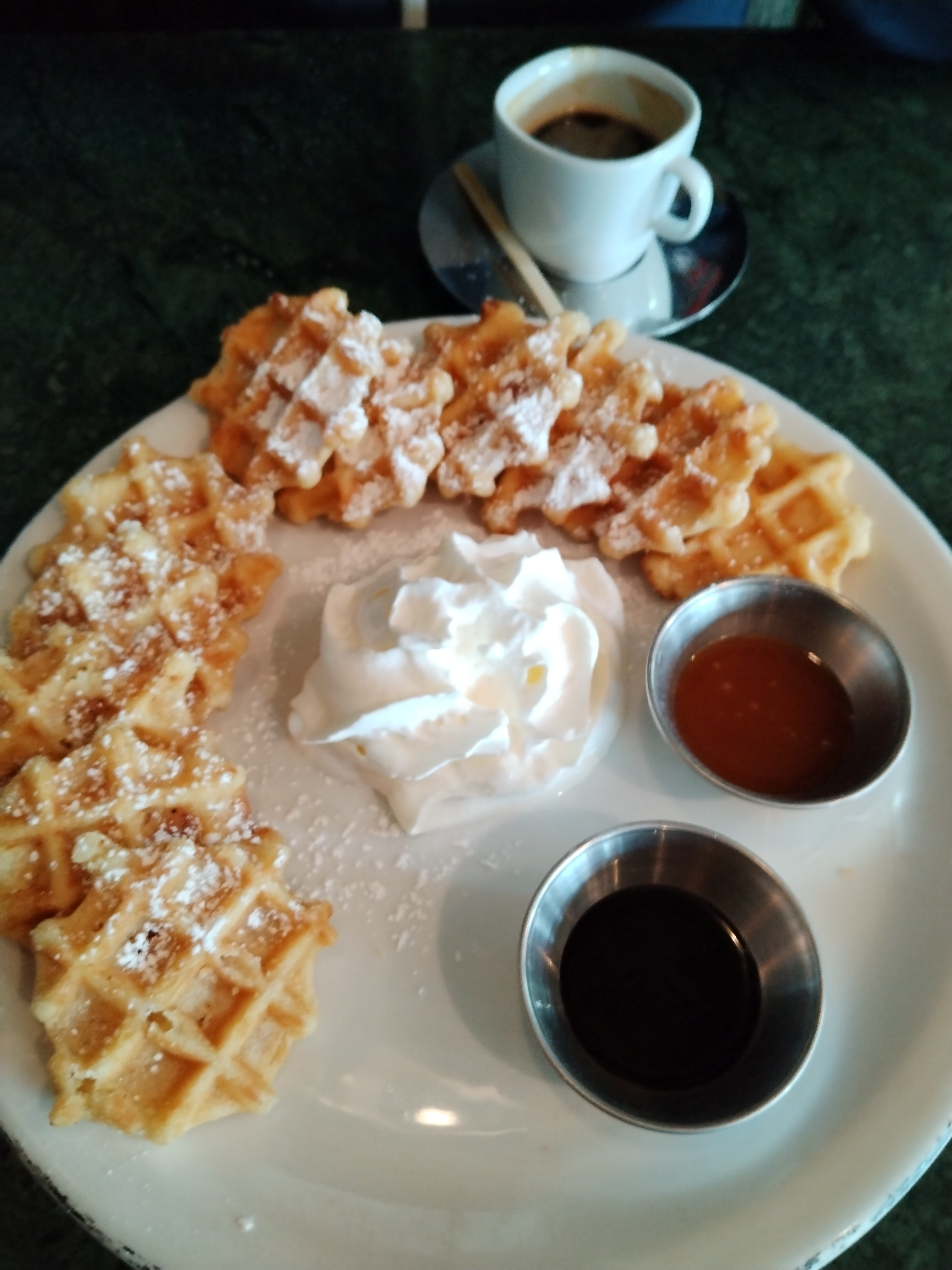 A éviter si vous avez quelques choses d’autres à faire après ou vous êtes pressés. Arrivée: 21h30 22h00: aucun serveur à l’horizon. Photo jointe : gaufre party sur la carte 12€5 Bref c’était la dernière fois.