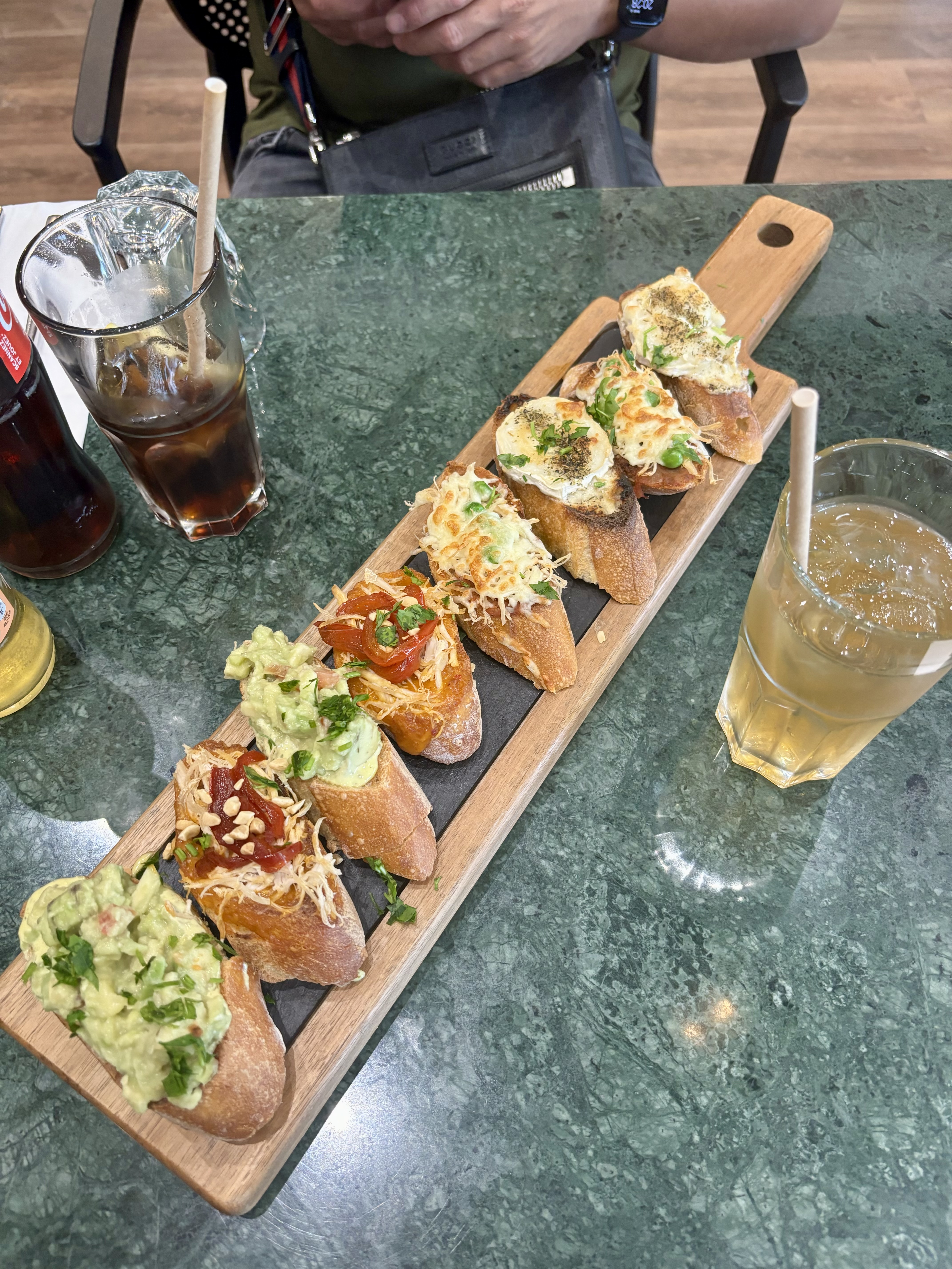 Attente très longue malgré que le restaurant ne soit pas rempli . Nous avions commandé 3 planches apéritives et n'en avons eu que 2... Un peu cher Service à améliorer