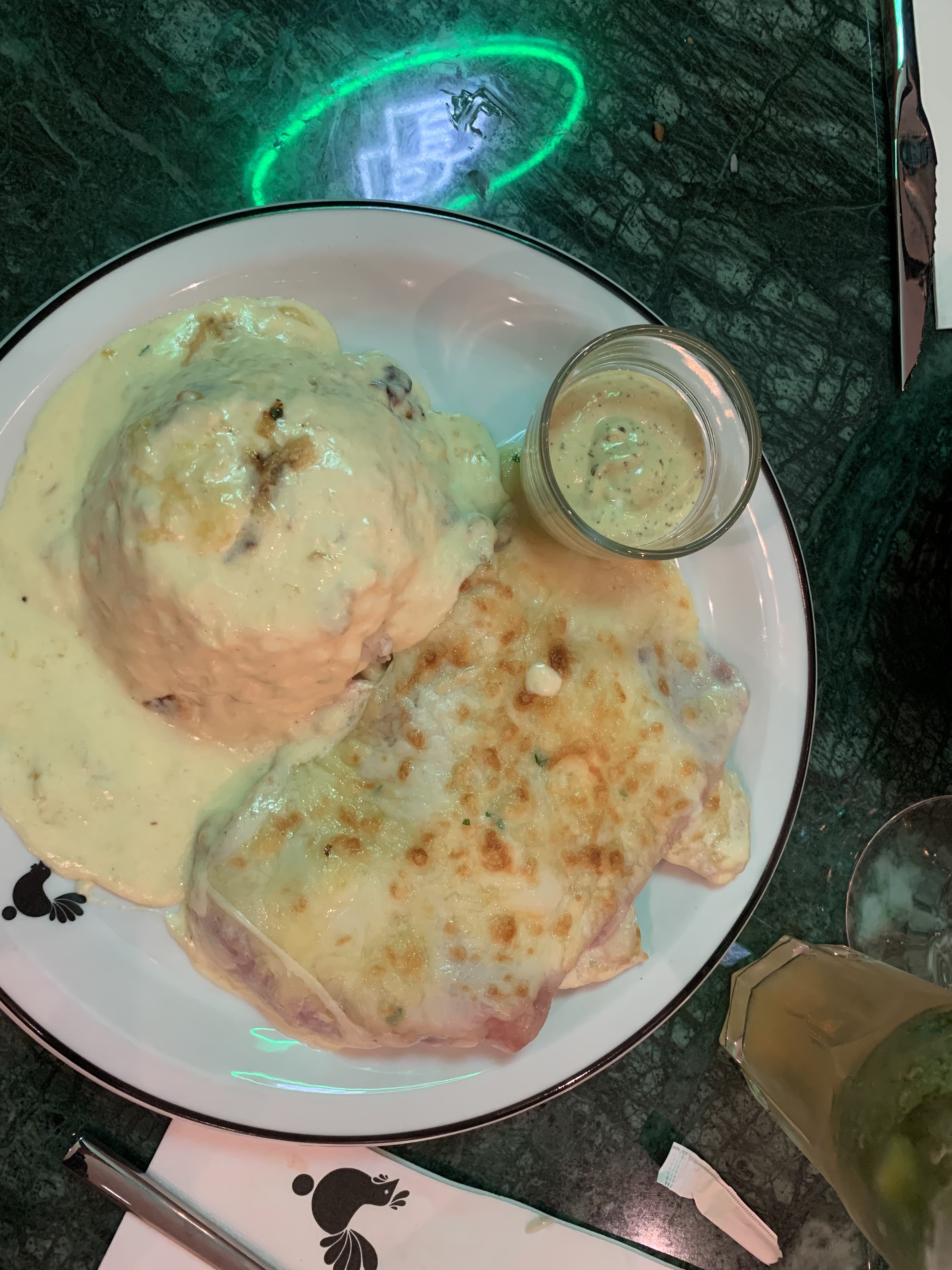 Ça avait l'air bon mais c'était tiède voir froid un peu déçu et pendant tout le repas j'avais vu sur le bar il y avait un barman qui bossait et un serveur qui n'a pas bougé pendant 1h30 alors que ses collègues couraient partout il était sur son téléphone. A l'entrée il recherche un serveur je veux bien postuler pour ne rien faire. La serveuse nous a bien renseigné et très pro.