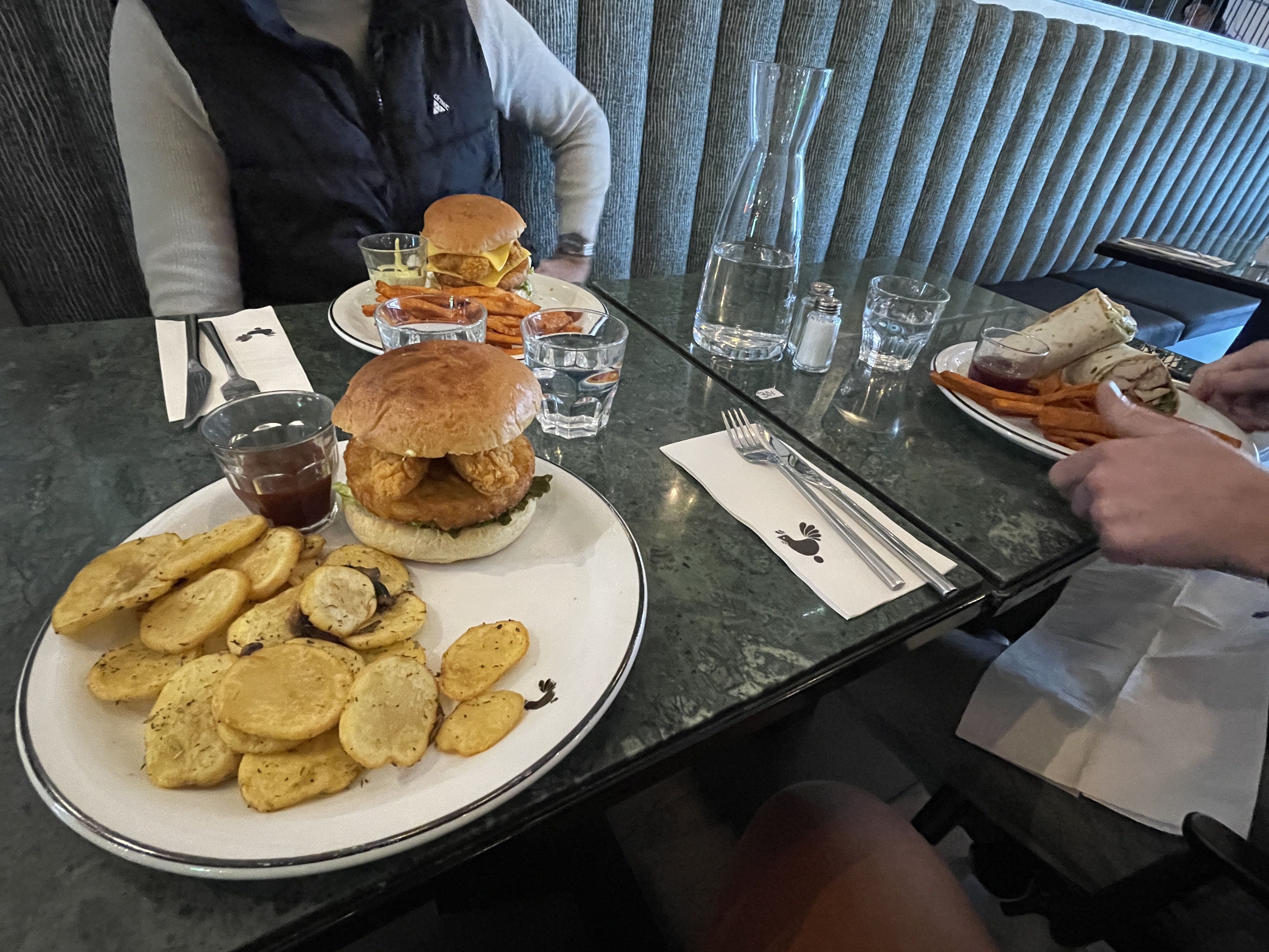 Plutôt cher pour un burger et des pommes des terres servis froid... Renvoyé en cuisine pour réchauffer mais de nouveau froid 🙄 Très déçu. Rapport qualité prix pas au niveau.