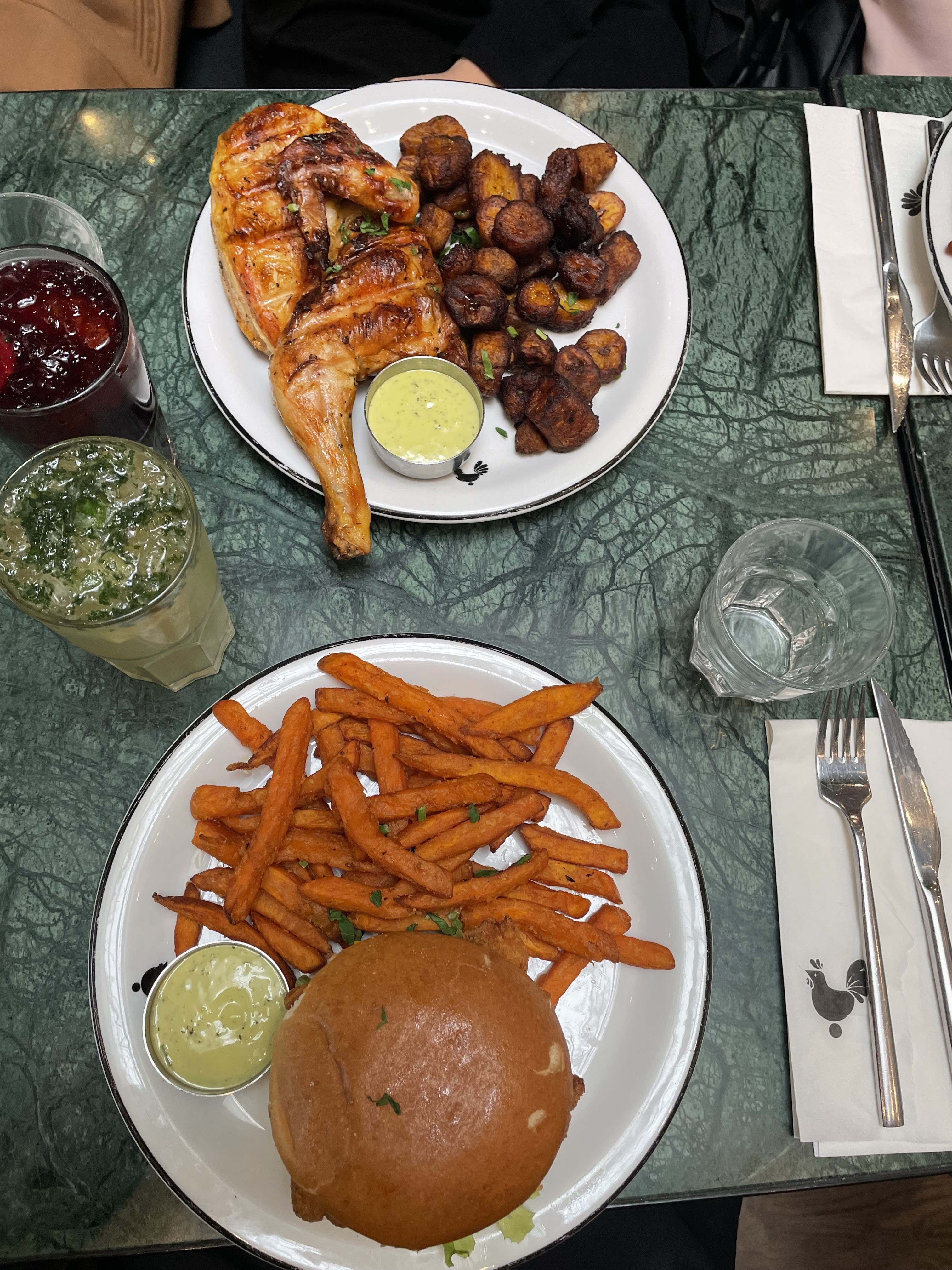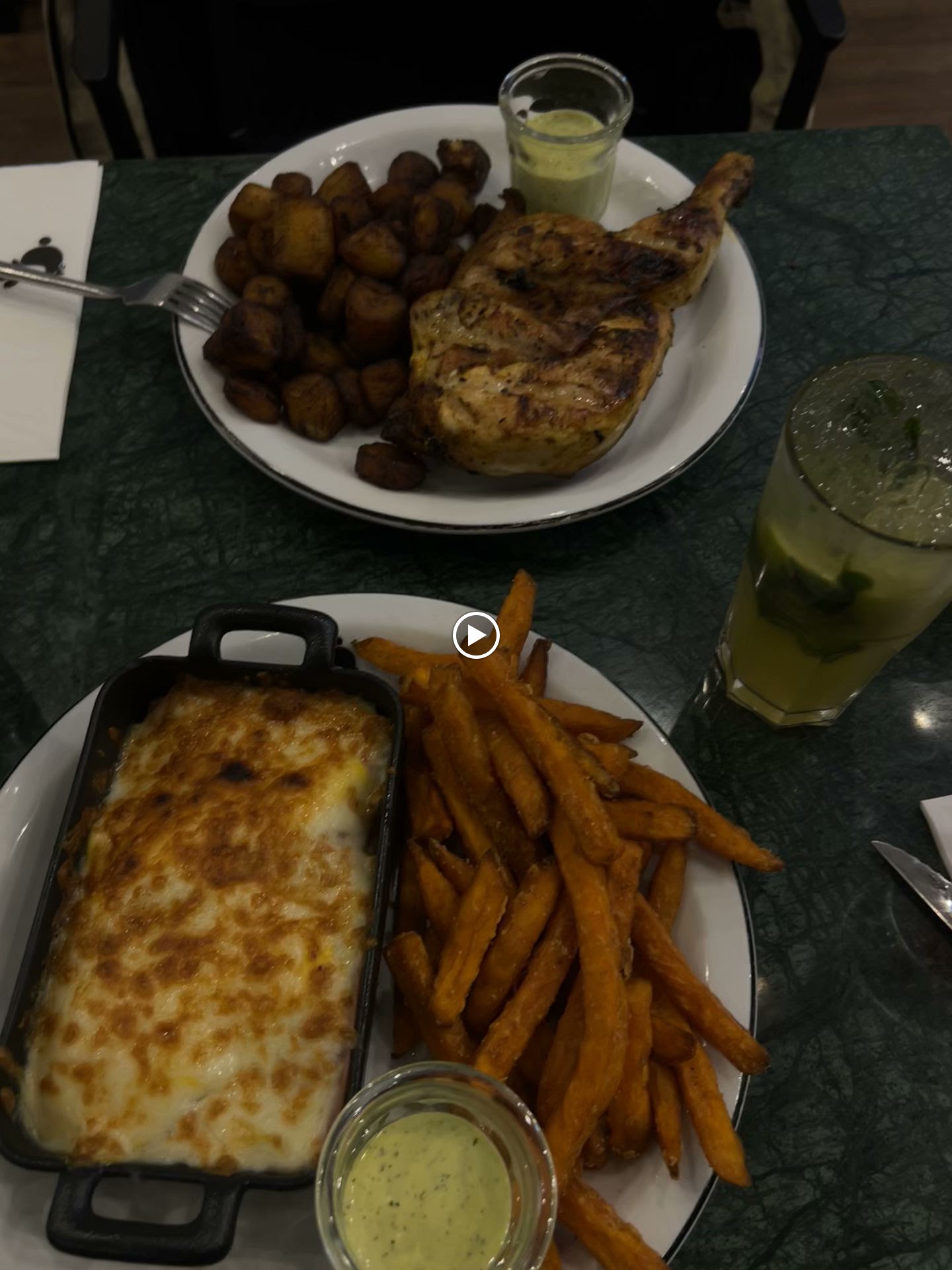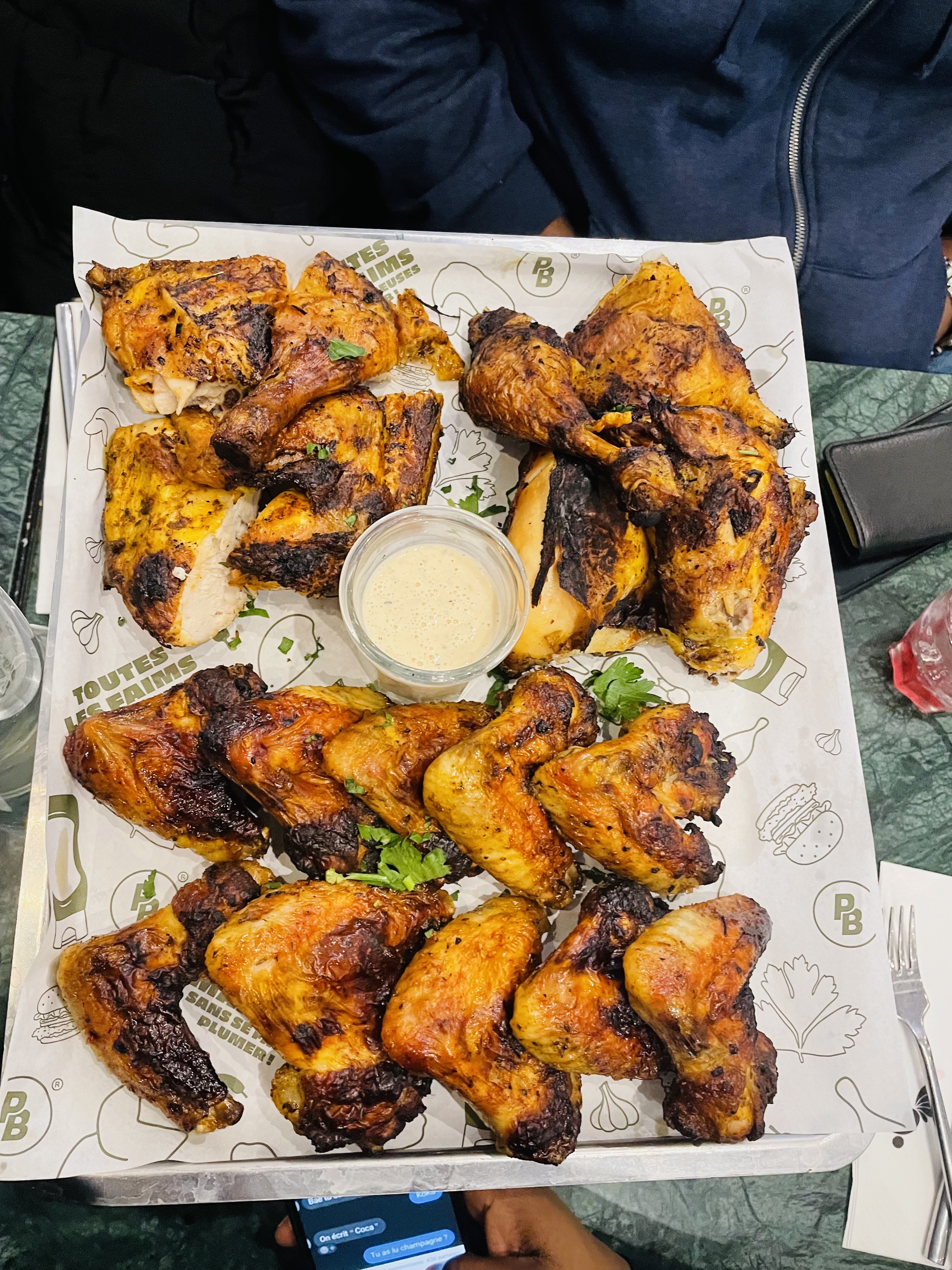 Le poulet était un peu sec mais la sauce très bonne dommage qu’il y en ait pas assez. Les serveurs étaient super gentils et agréables.