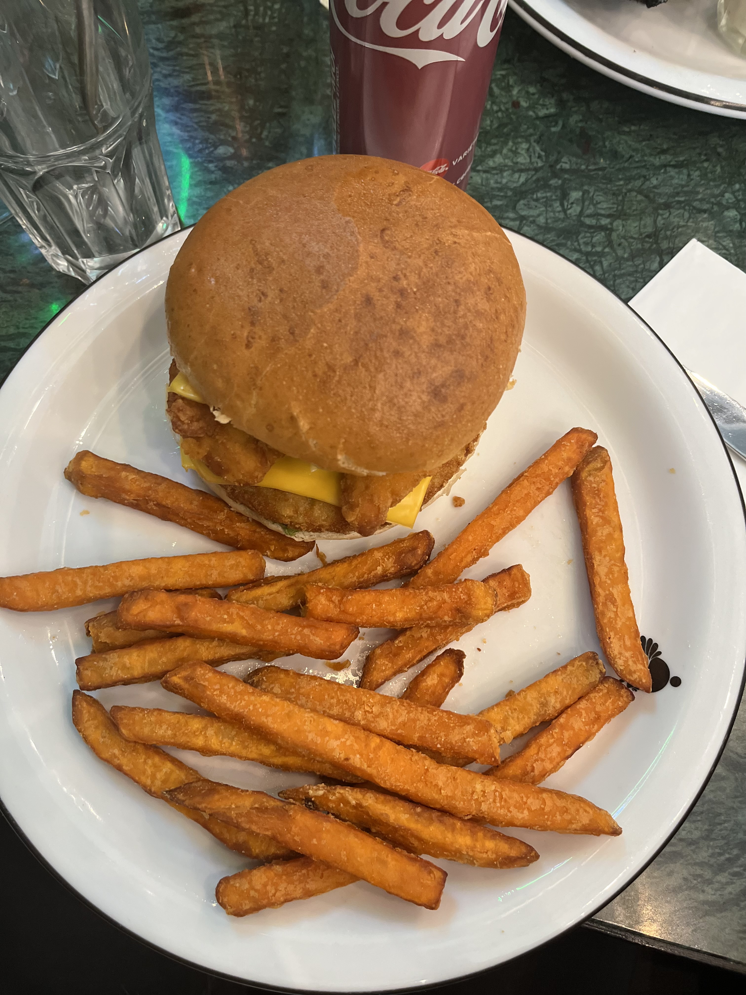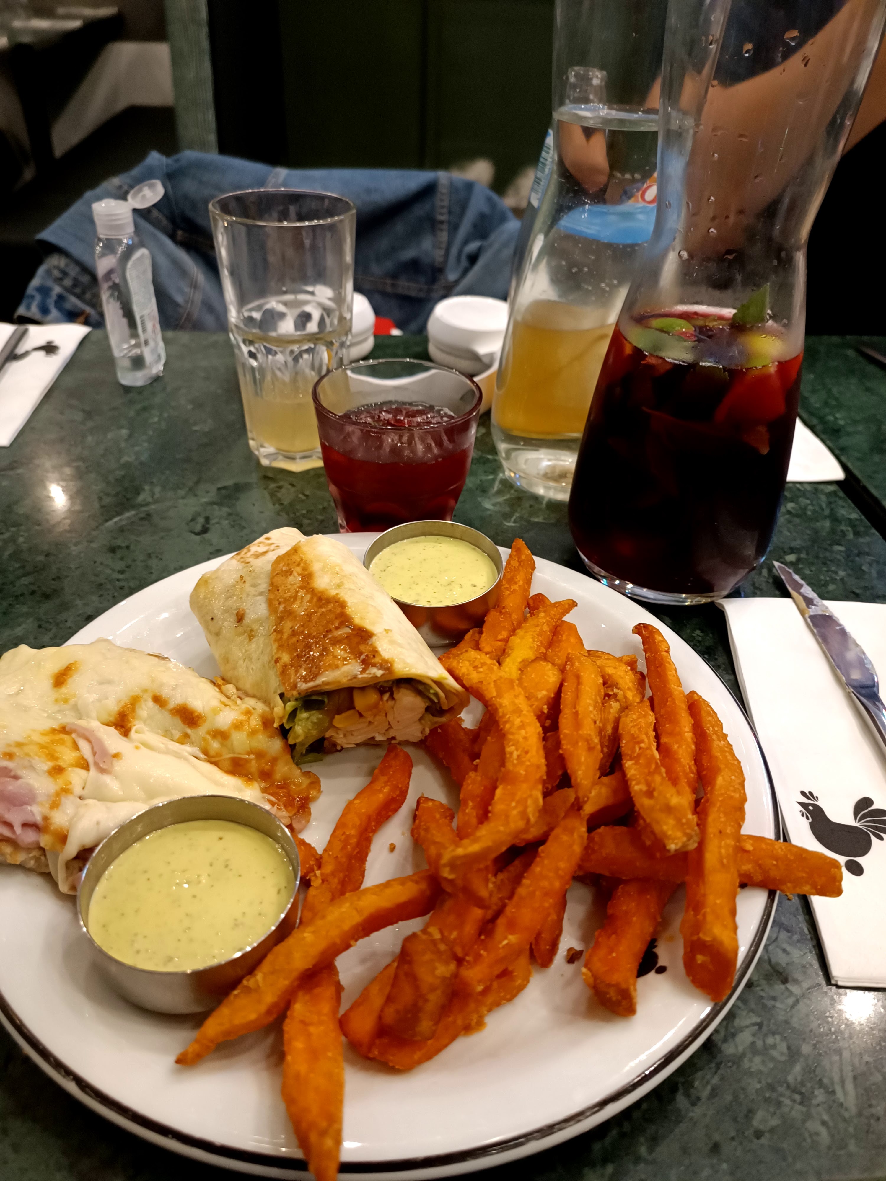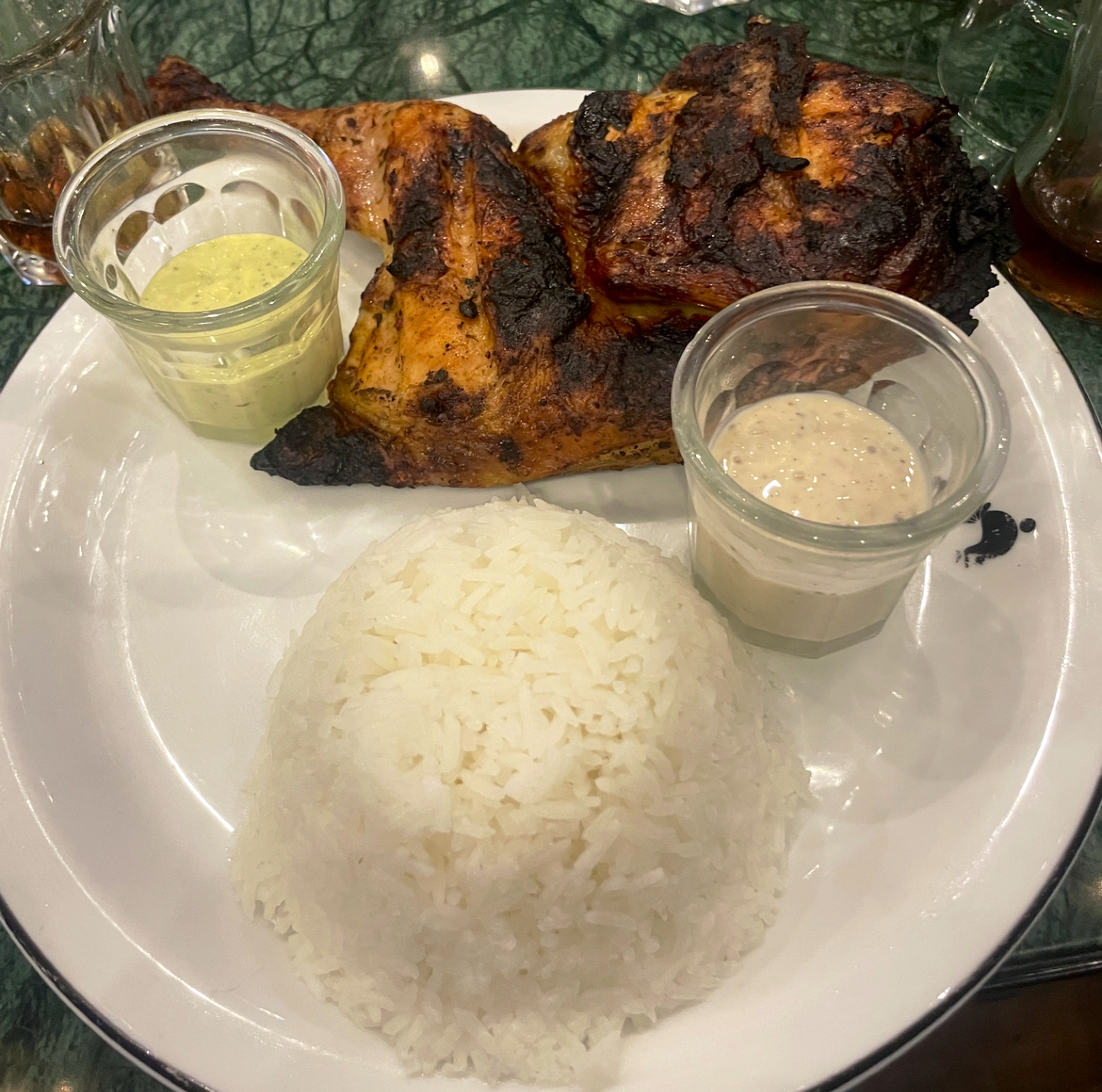 Le poulet était un peu sec mais la sauce très bonne dommage qu’il y en ait pas assez. Les serveurs étaient super gentils et agréables.