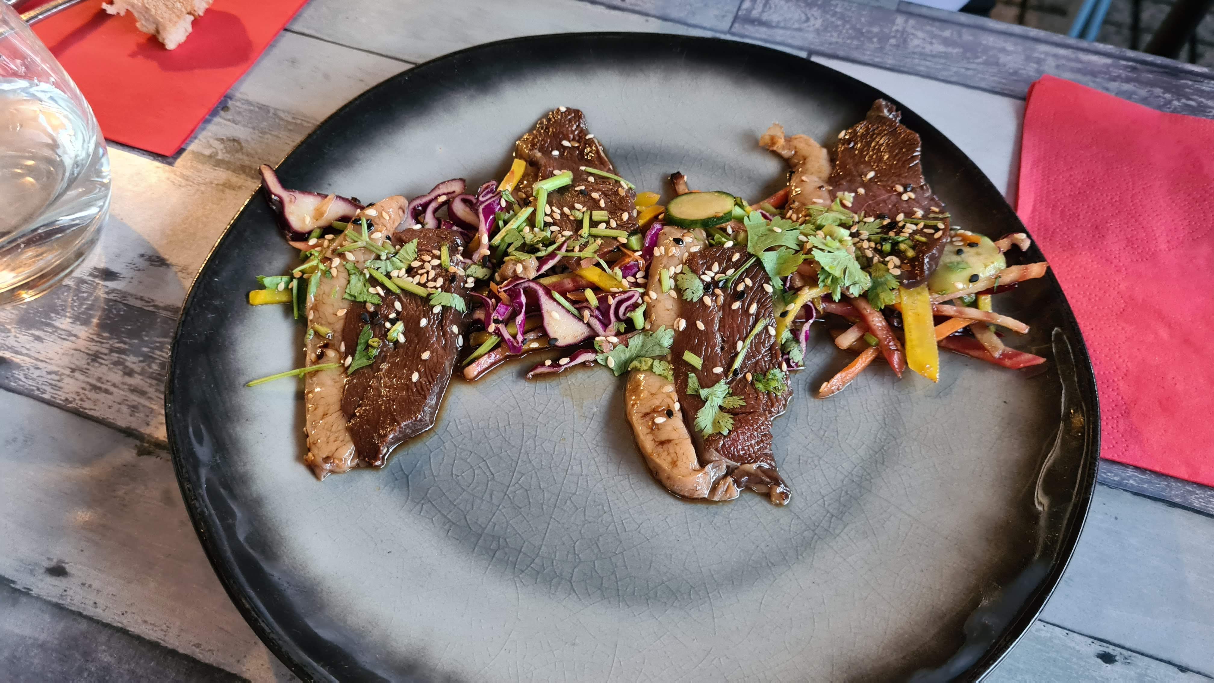 Agréable de pouvoir manger des plats qui sortent du terroir habituel. Le wok était délicieux ! En revanche les nems un peu léger pour le prix.