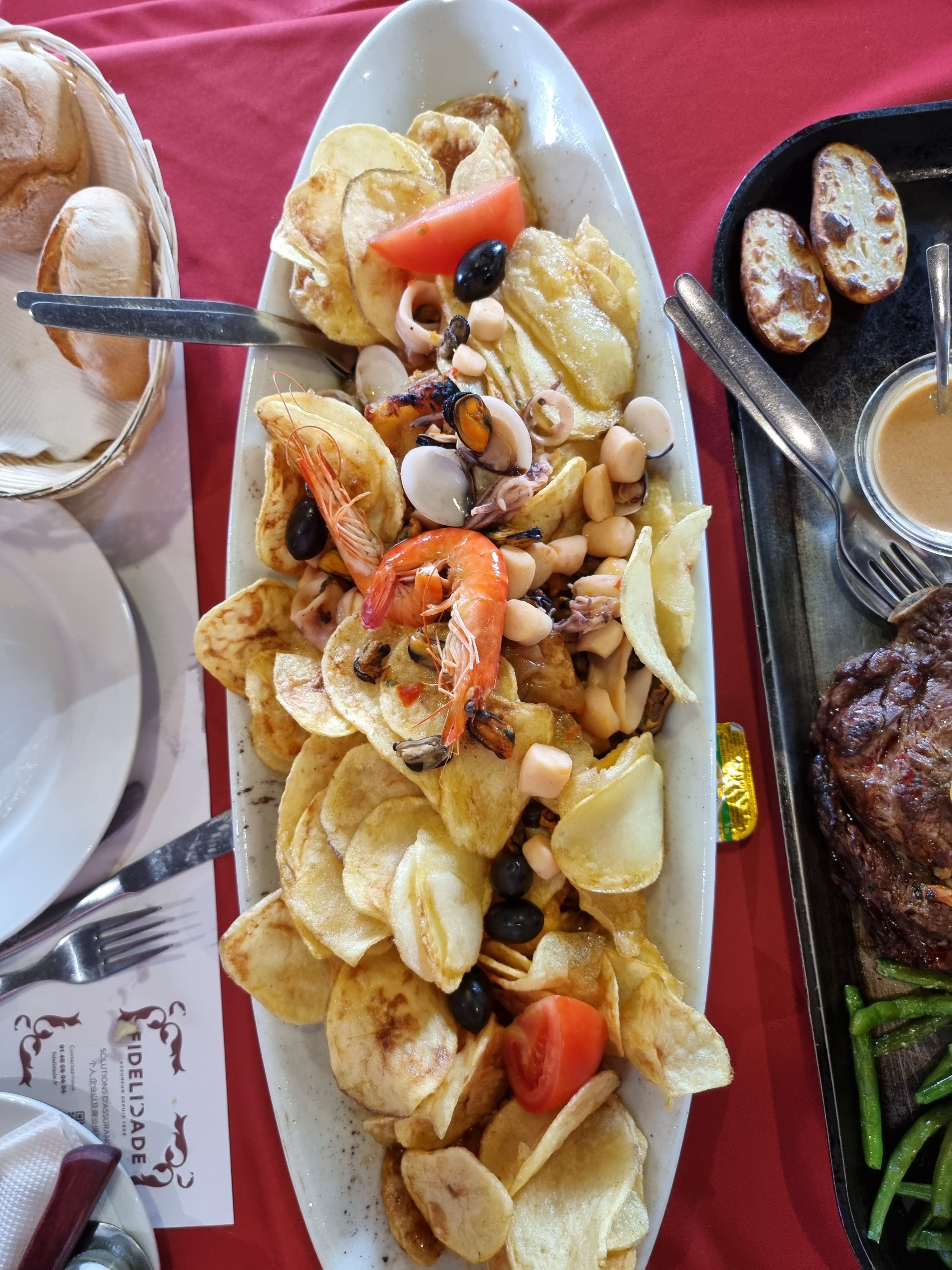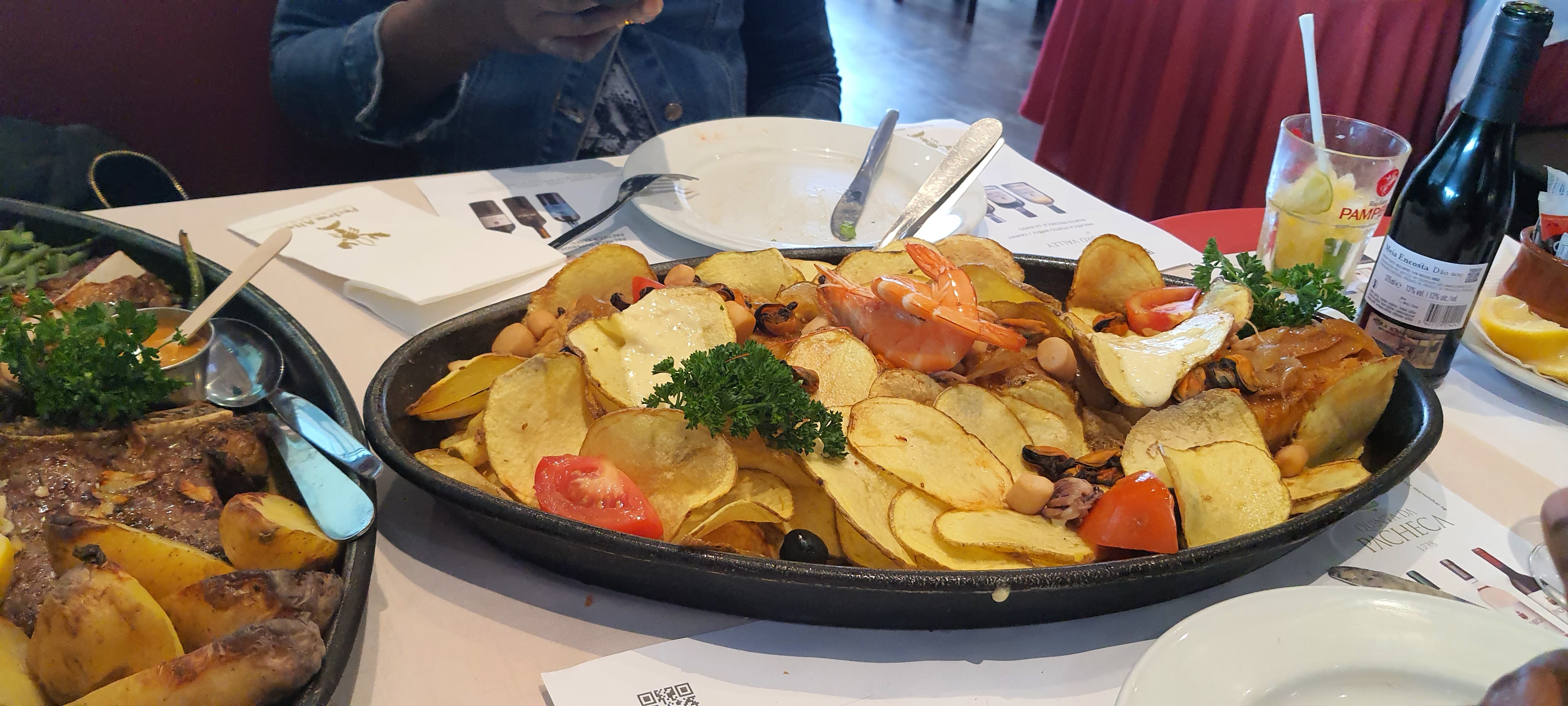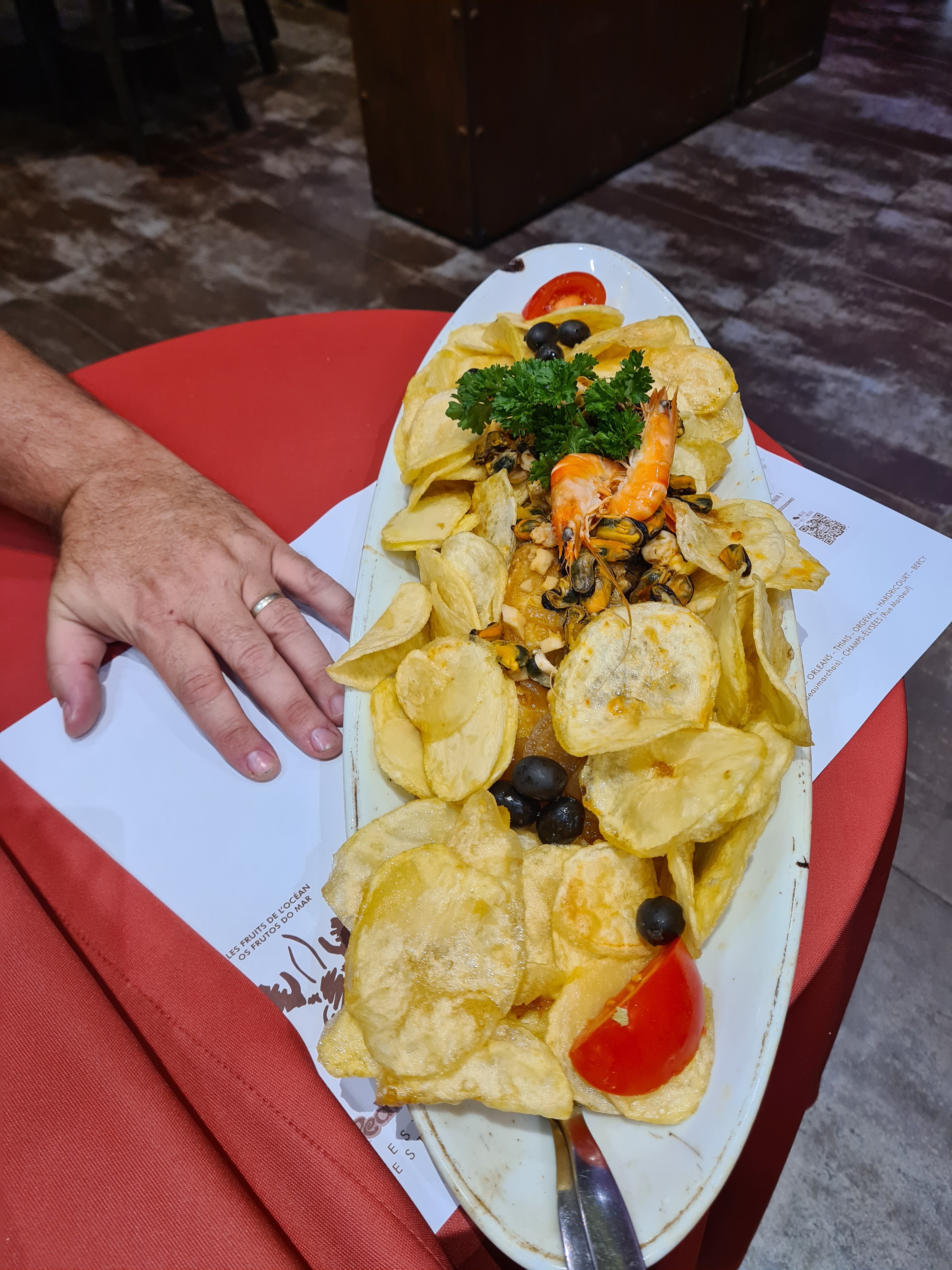 La cuisine était satisfaisante. Fruit de mer au top sauf pour les moules, pour ma part, pas très fraîche. La présentation des plats est très bien et très copieuses. Peut être 1 étoile Michelin si ce n'est trop demandé. Très bon service, personnel à l'attention du client, proposition diverses, la culture portugaise est à son apogée. Attente devant l'entrée par manque de places (2h40 d'attente dans le froid) . Salle d'attente pas très chauffé et SAS entrée sensible. Bonne ambiance générale, anniversaire convivial, peu mieux faire en animation. Sinon très bien dans l'ensemble.