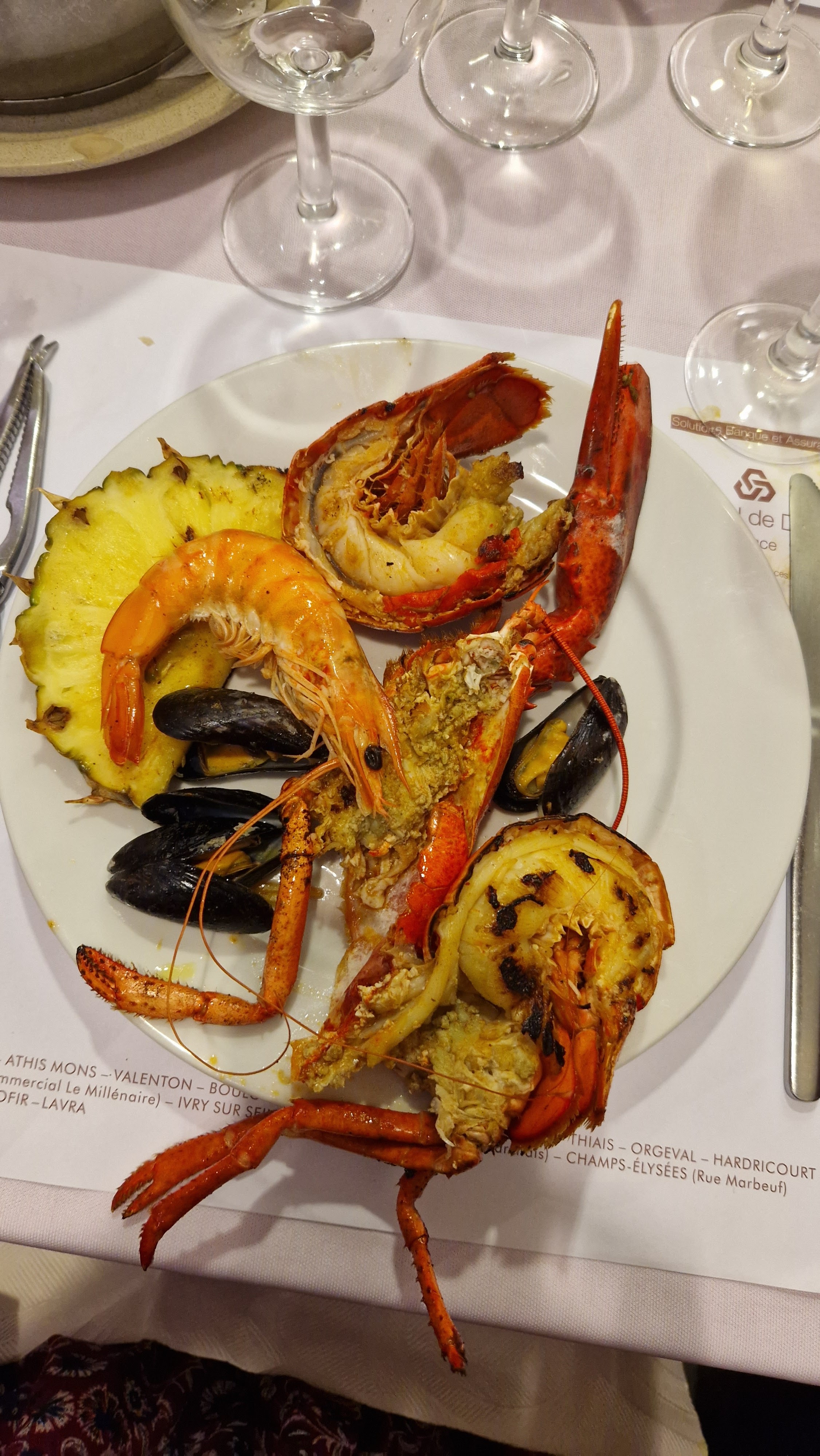 Personnel à la limite de l amabilité Entrecôtes assez fermees frites au four (du jamais vu pour moi ds un restaurant, vraiment pas bonnes) Crustacés corrects La cerise sur le gâteau nous étions 8 il y avait beaucoup de restes dans nos plats avons demandé un doggy bag Surprise en rentrant aucun morceaux de brochettes n étaient ds la boîte juste les os, crustacés idem environ la moitié de ce qu il restait. Tampis pour les gens qui viennent aujourd'hui ils vont avoir notre bœuf sûrement bien cuit. En espérant que c est le personnel qui en profite et ce n est pas remis en vente. Ps : notre addition 700,00 € à 8 Nous n y retournerons pas car bien en dessous de la réputation qu ils ont.