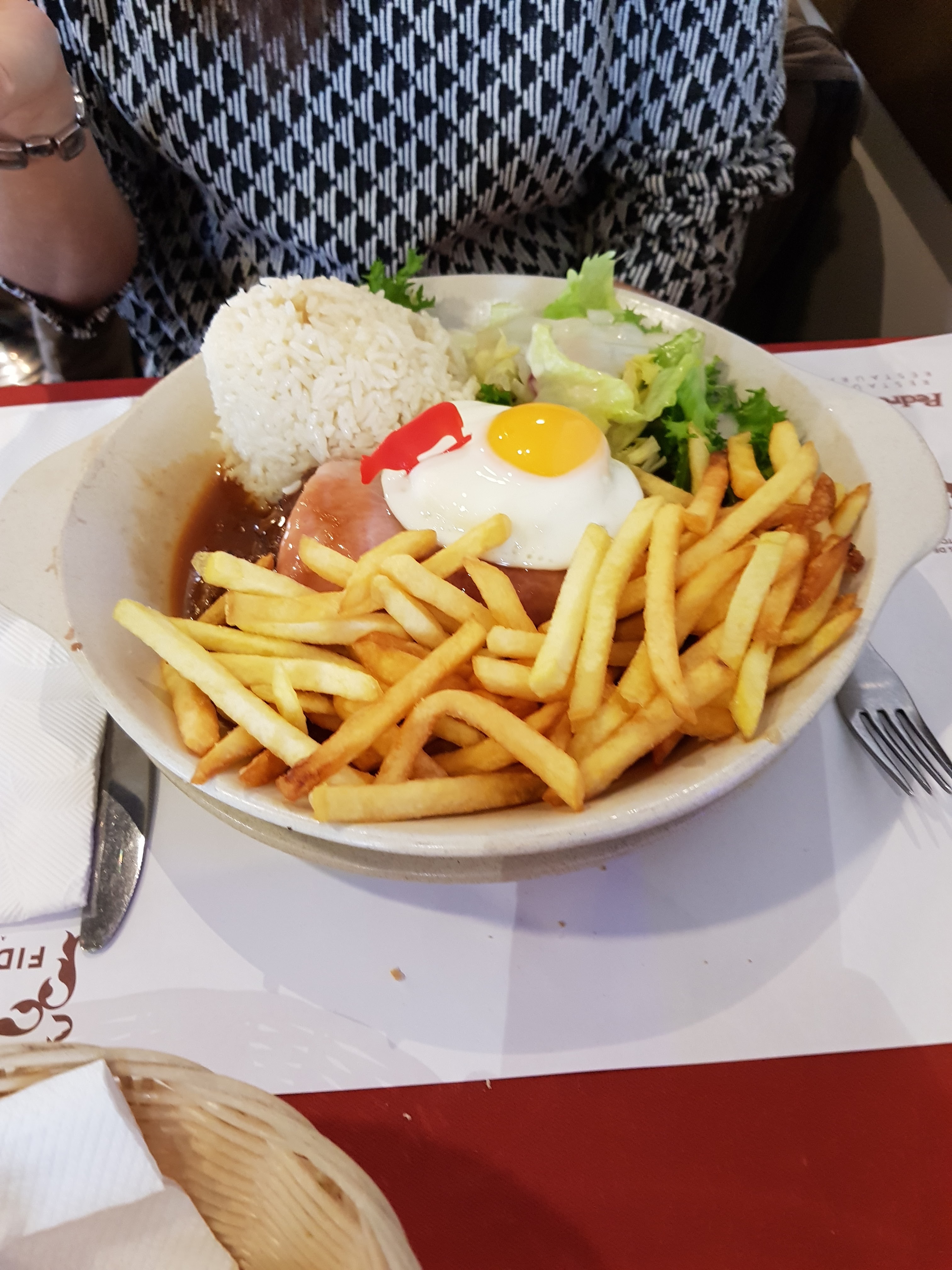 Très bon, mais beaucoup trop grands ces plats......on est obligé de repartir avec la moitié....Au top on en mange encore chez soi...
