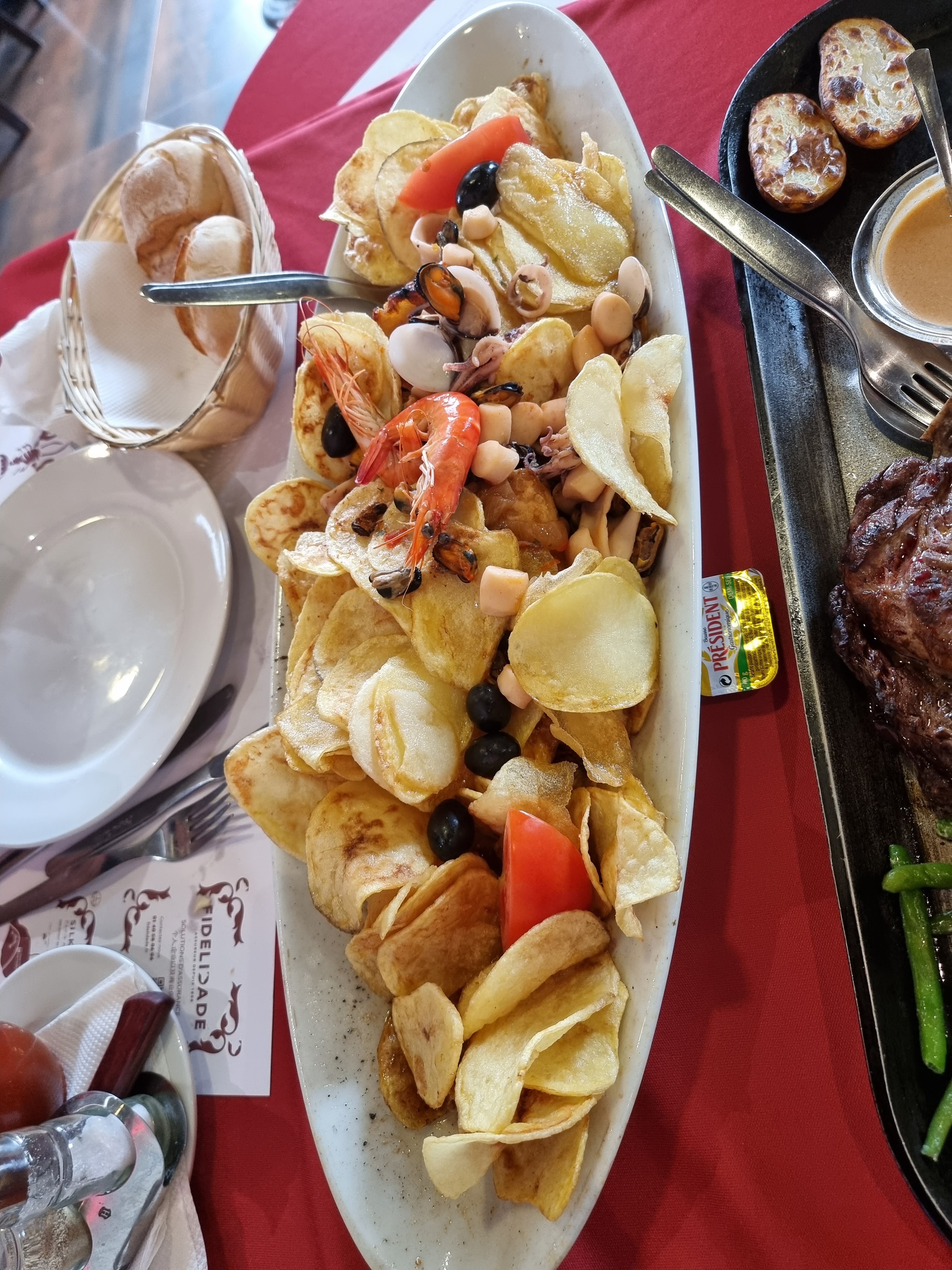 Bon restaurant la viande est très bonne comme les crustacés. La quantité est là Juste déçu par les frites surgelés....
