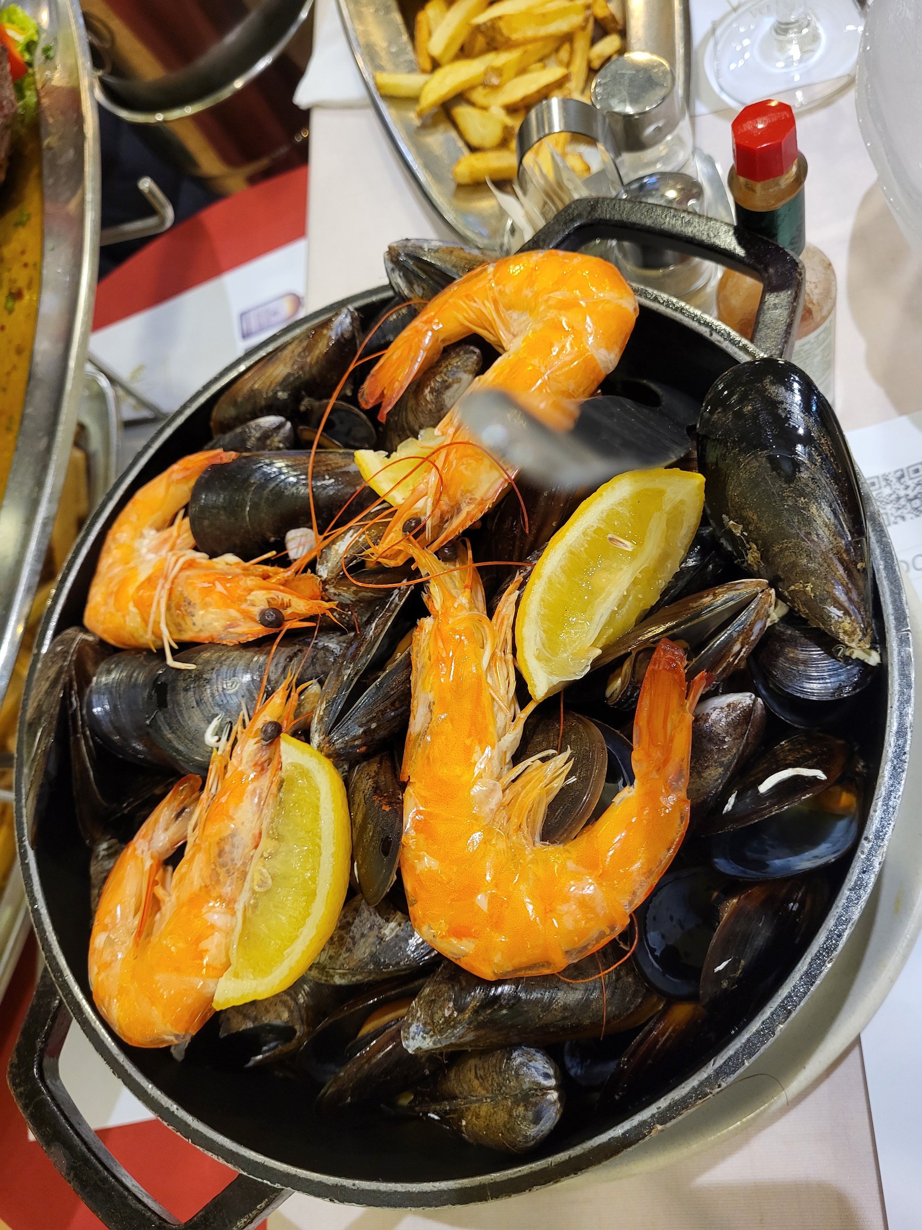 Sincèrement le meilleur plat c’est les crevettes et l’ail. Le reste du menu est relativement cher car beaucoup de fruits de mer nobles mais le goût n’est pas à la hauteur.
