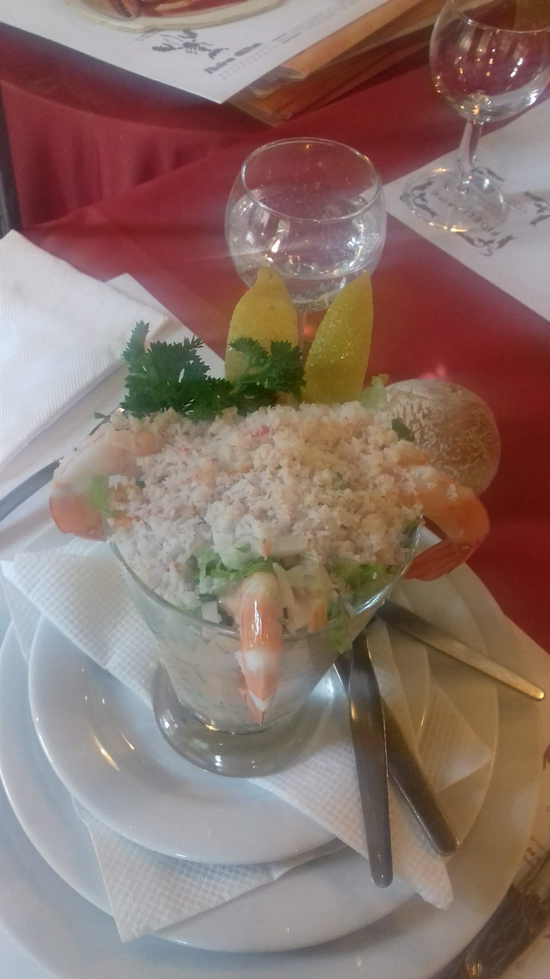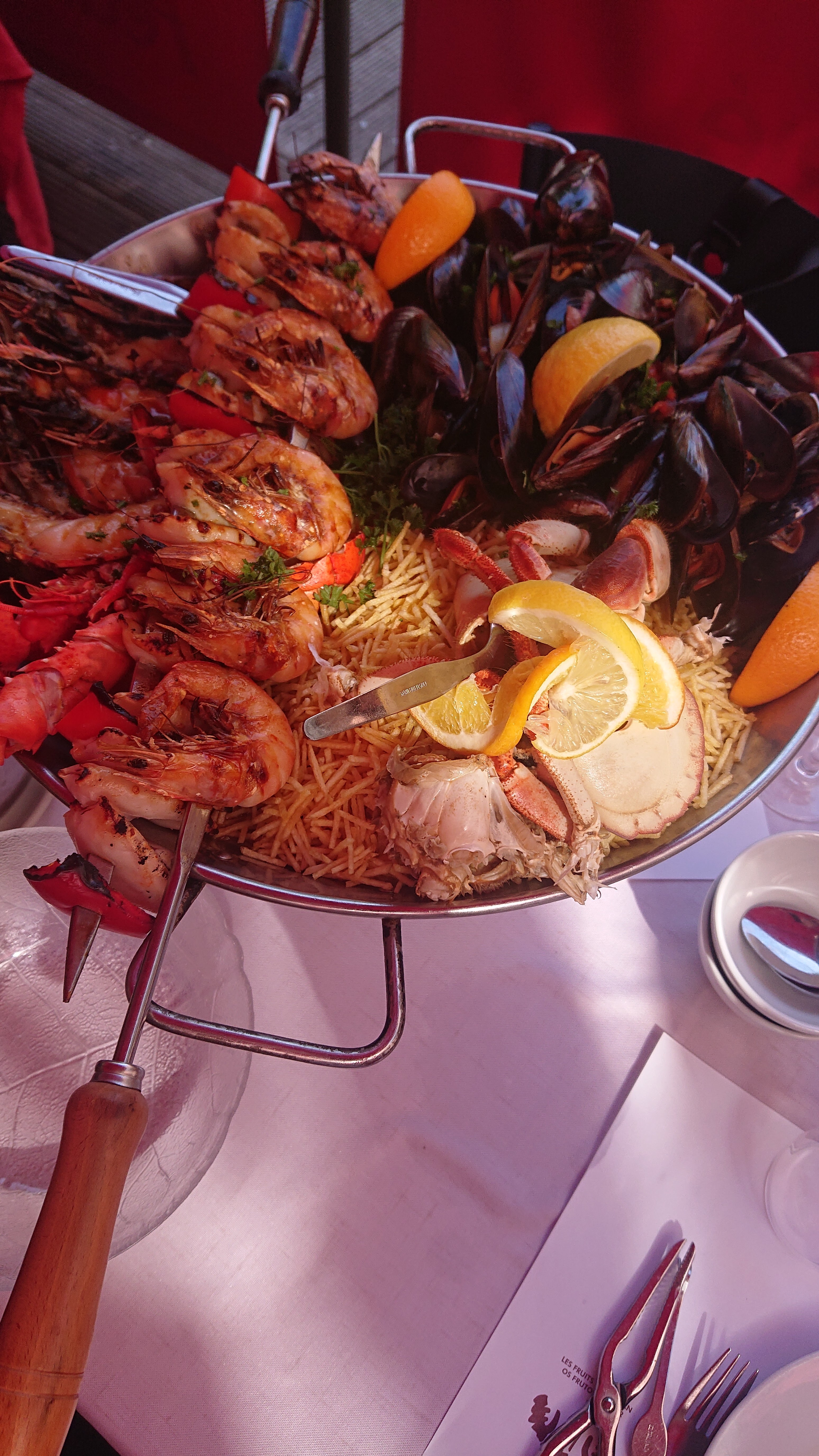 J'ai commandé un plat avec de la gambas dedans ils m'ont servi des crevettes j'ai demandé si il n'y a pas une erreur ils m'ont dit que les crevettes et gambas c'est la meme chose pour eux qu'il n'y avait aucune différence. Que l'on me dise qu'il n'y a plus de gambas y'a aucun soucis ce n'est pas grave, mais que l'on me prenne pour un idiot je ne peux l'accepter... Les produits n'était pas frais, le homard était gorgé de jus de cuisson. Les serveurs ont vite voulut nous débarrasser pour nous dire de partir, j'avais encore de la nourriture dans mon assiette je n'avais pas encore terminé que la serveuse est venue me demander si on voudrait prendre le reste a emporter. Le service et les serveurs sont désagréables et impoli. À fuir.