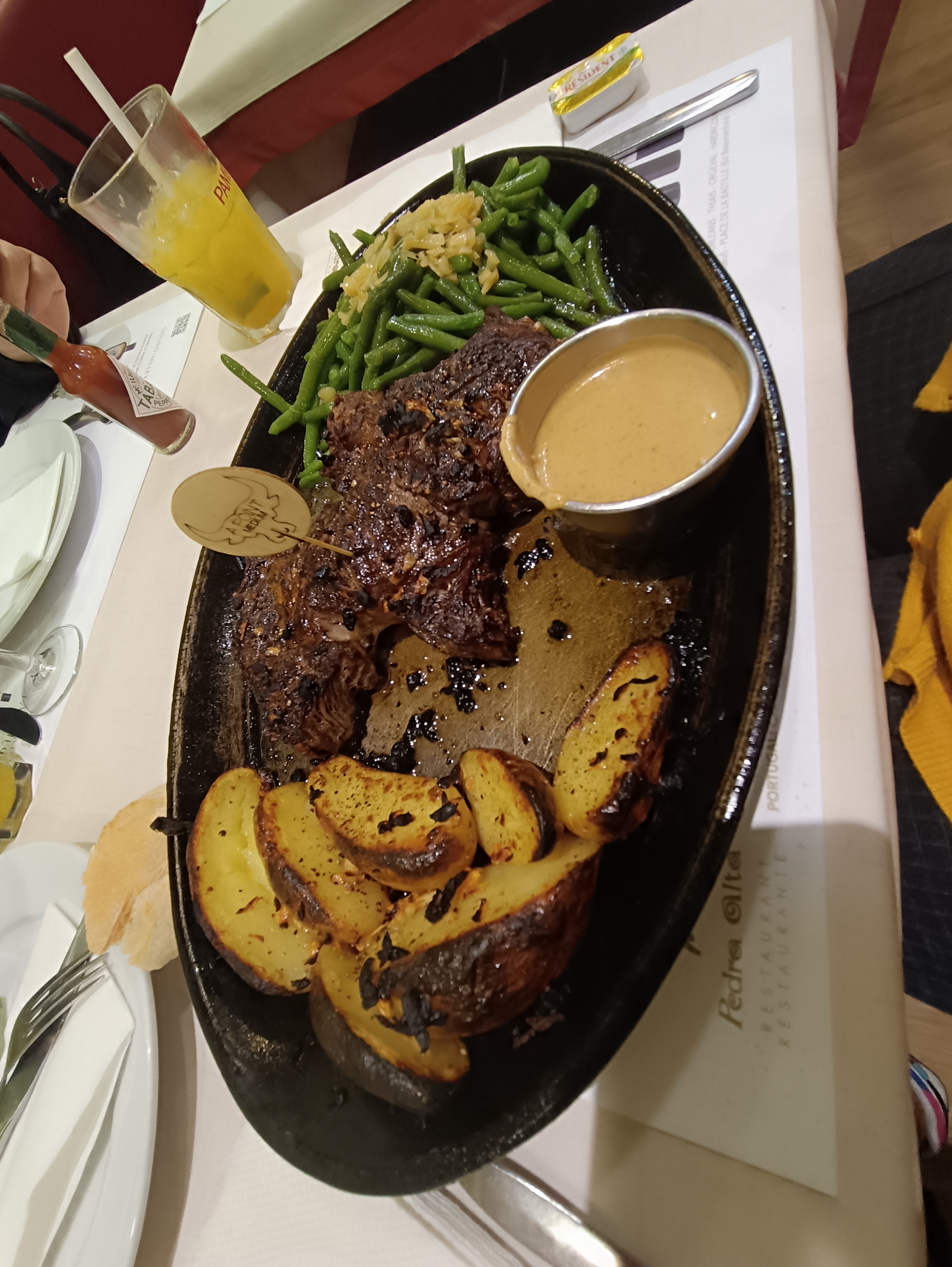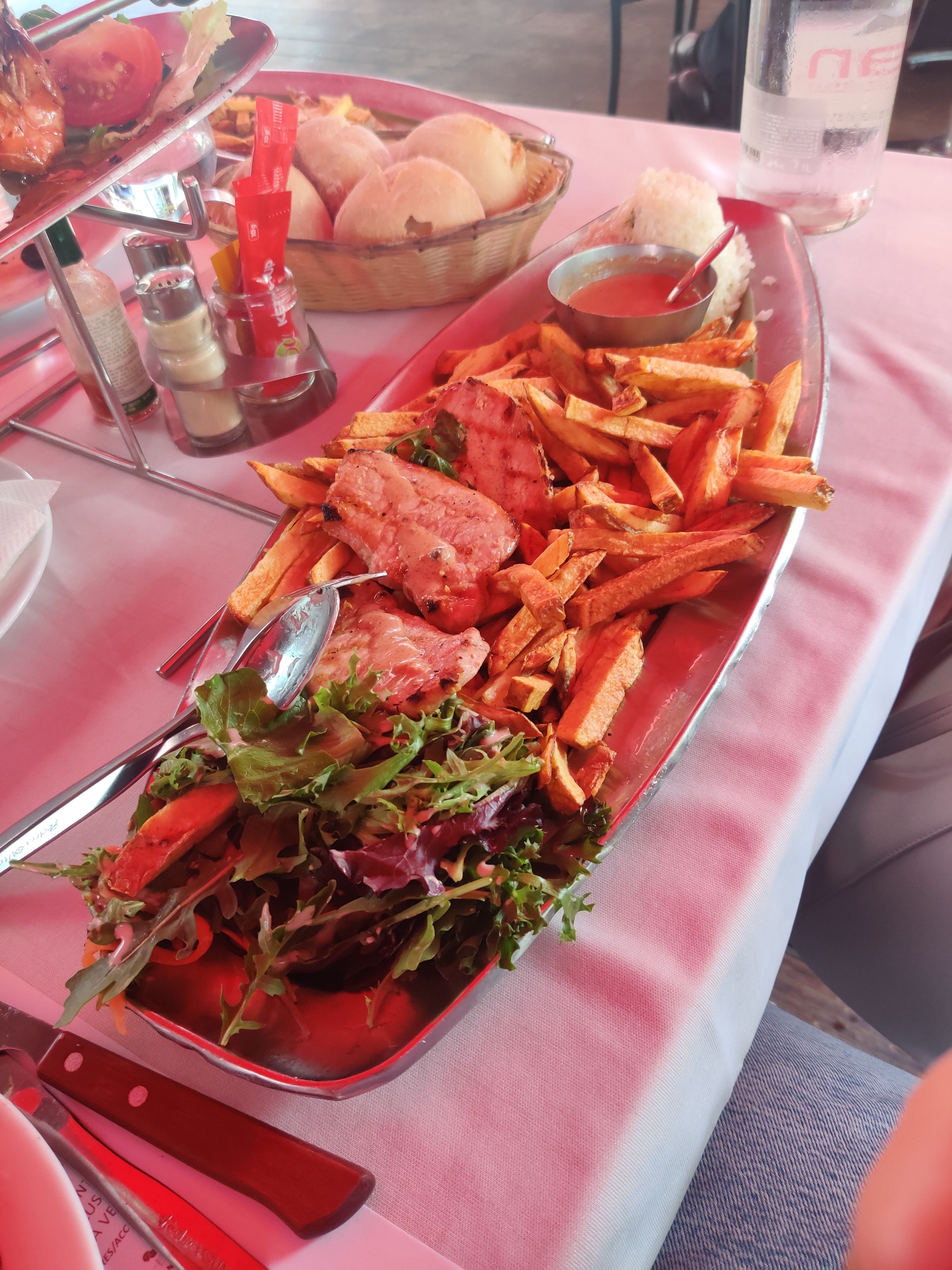 Pas la première fois dans un restaurant Pedra alta frite maison et le riz était très bon mais malheureusement le porc était trop sec. Mon frère avait pris un loup de mer grillé je vous le recommande 👌